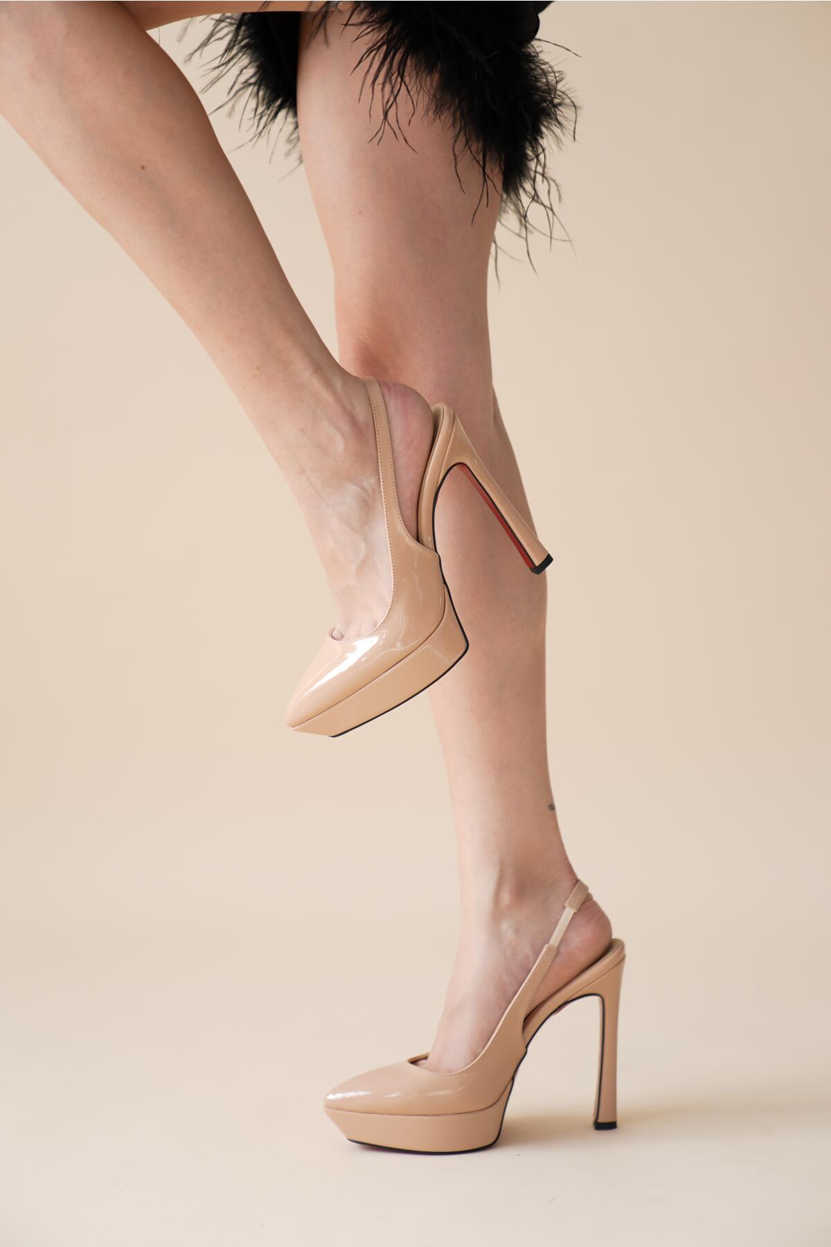 Kadın Platform Topuklu Ayakkabı Tinevi Nude Rugan