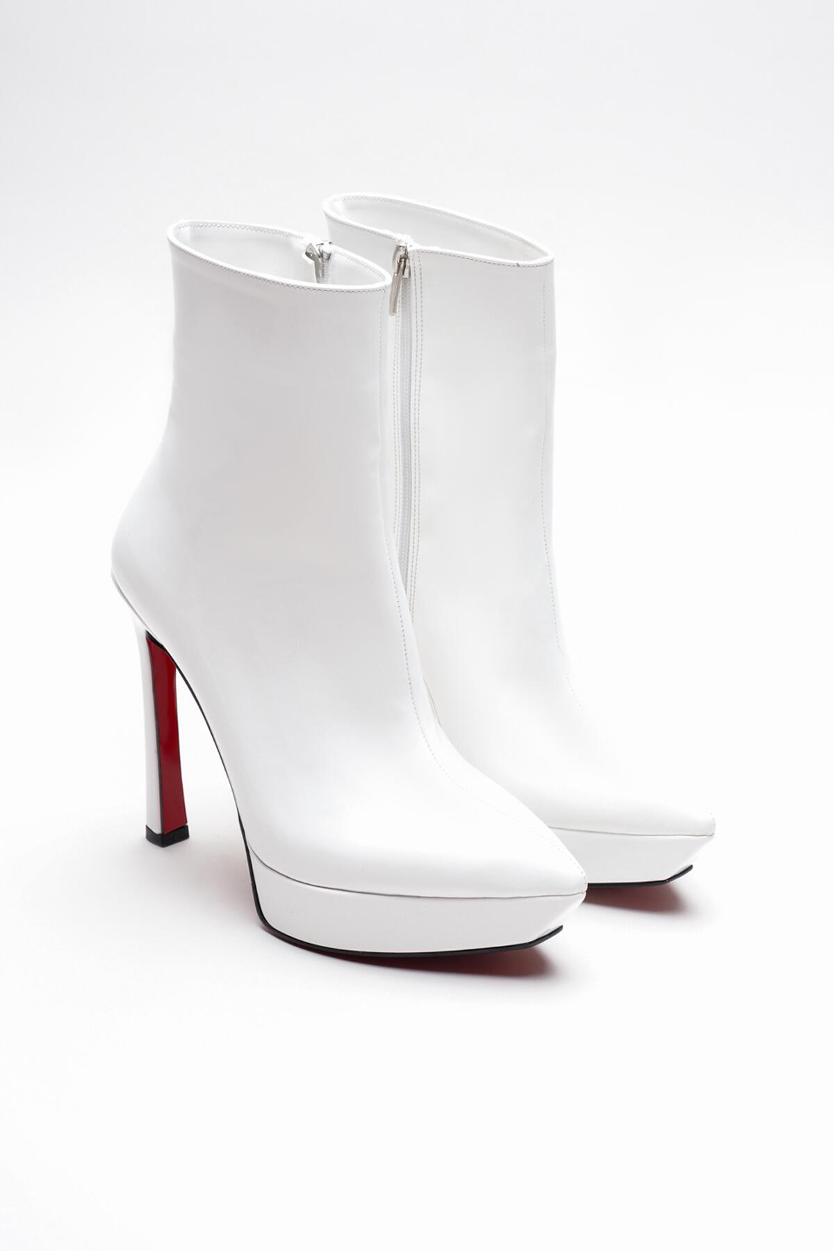 Kadın Platform Topuklu Bot Pilera Beyaz Rugan