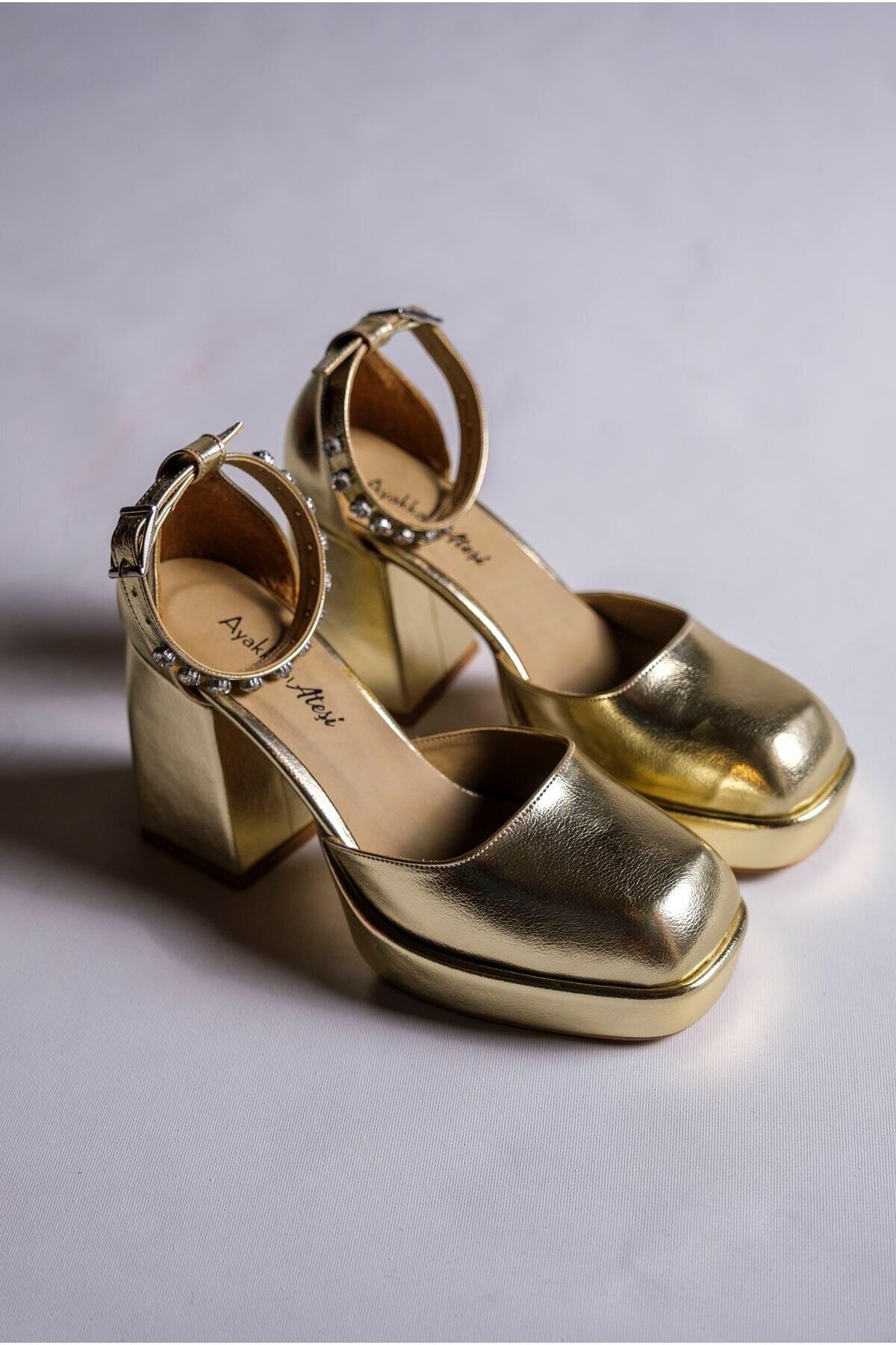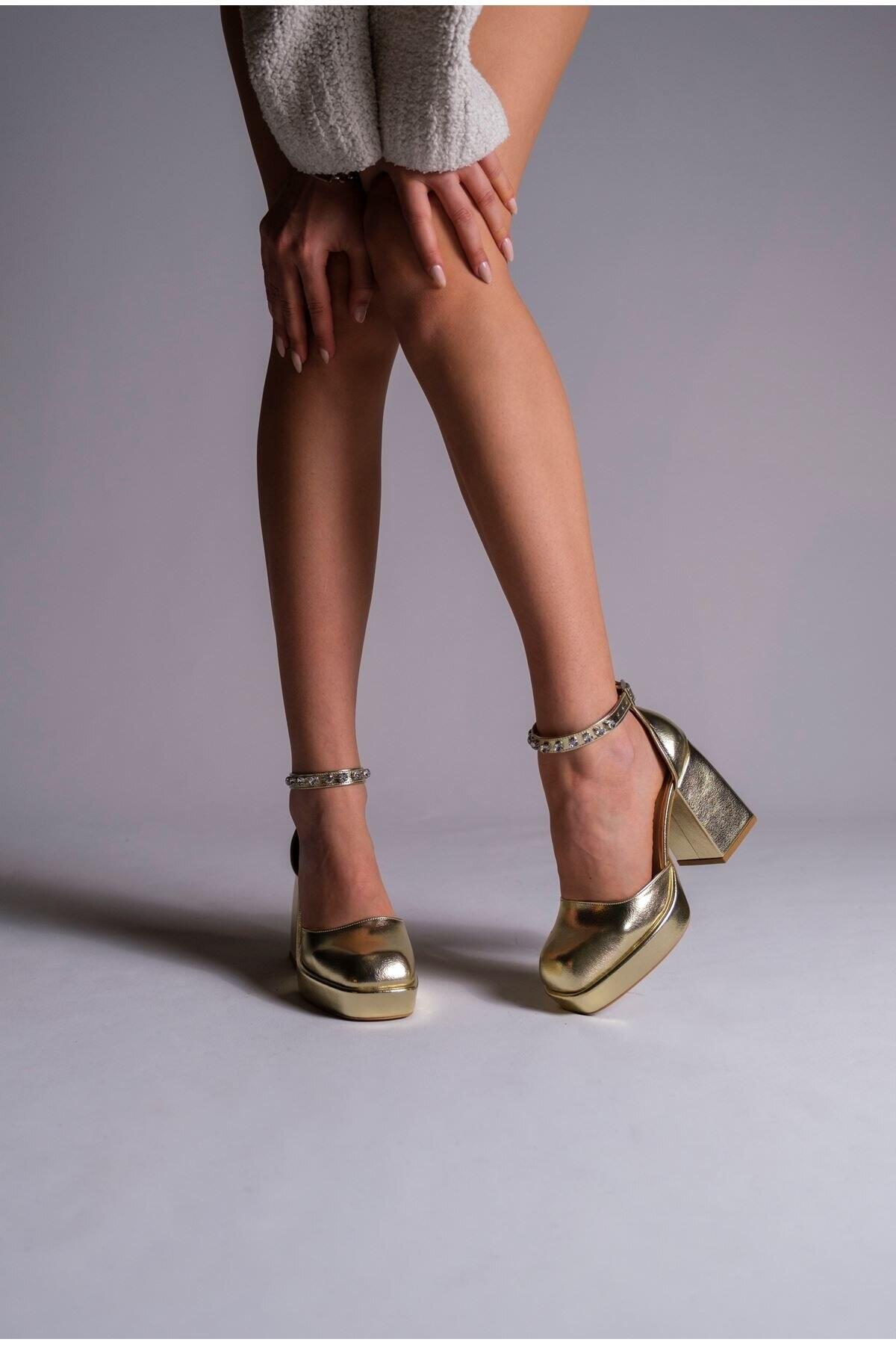 Kadın Taş Detaylı Özel Tasarım Alçak Topuklu Ayakkabısı Sandy Altın