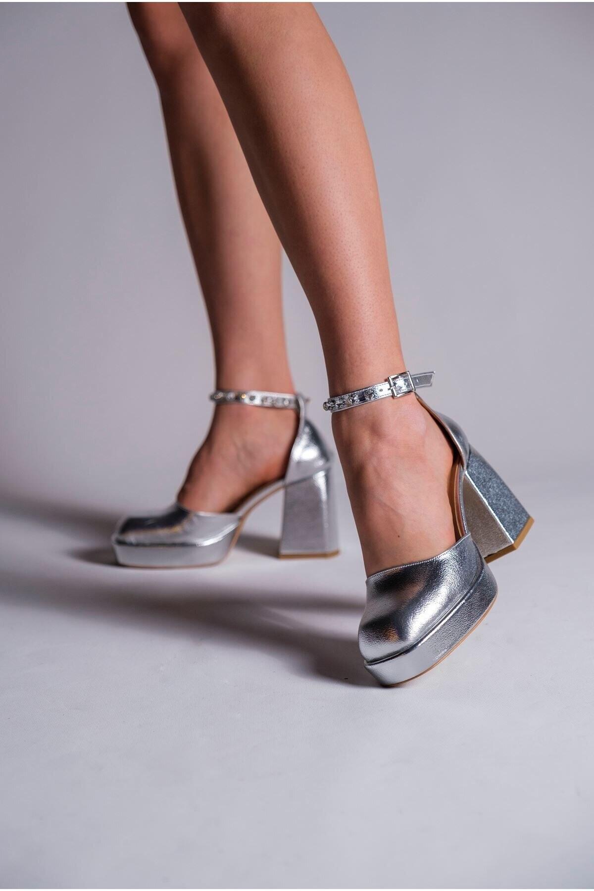 Kadın Taş Detaylı Özel Tasarım Alçak Topuklu Ayakkabısı Sandy Gümüş