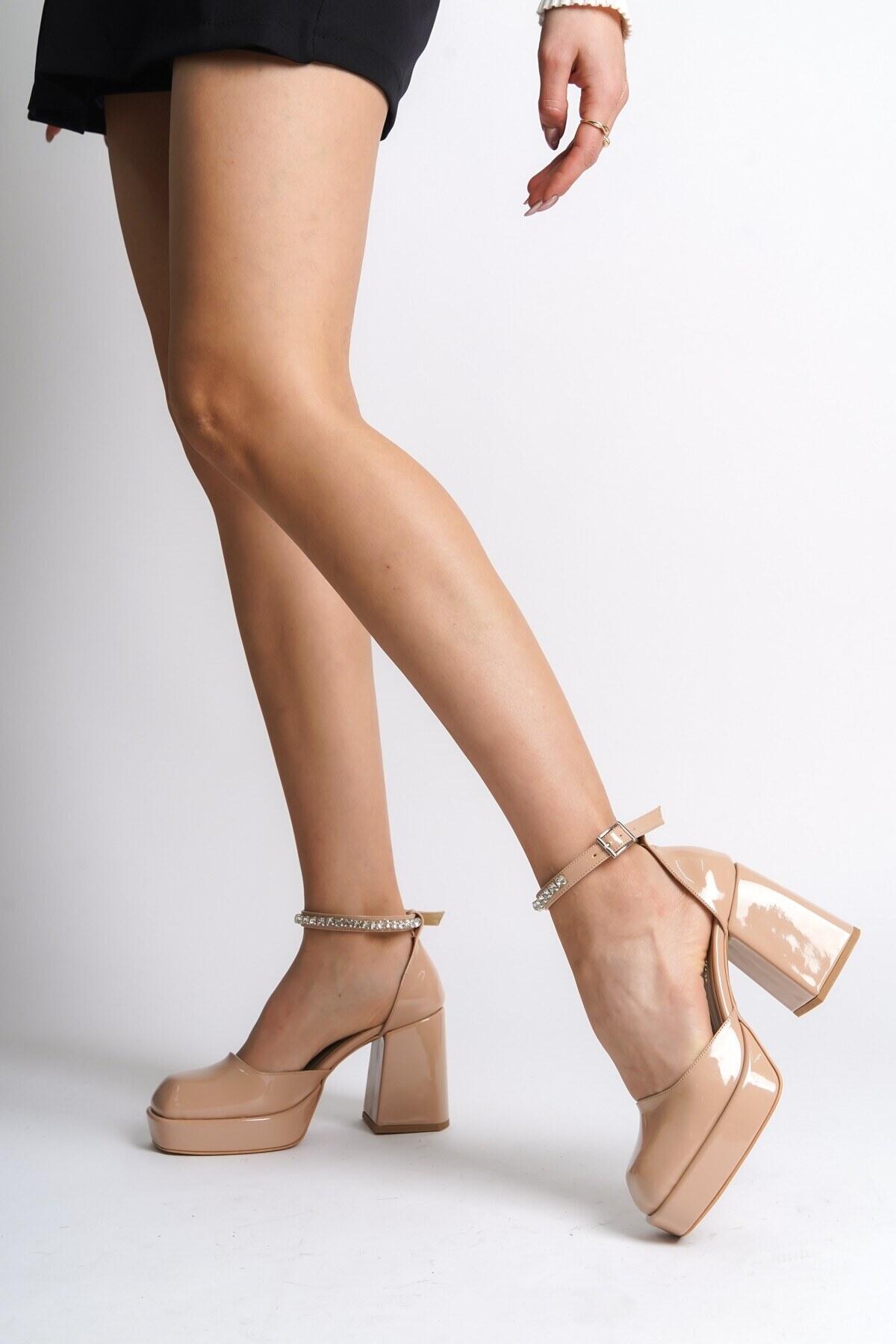 Kadın Taş Detaylı Özel Tasarım Alçak Topuklu Ayakkabısı Sandy Nude Rugan