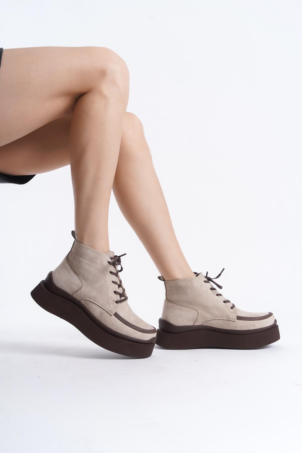Kadın Bağcıklı Tasarım Kadın Düz Bot Bacika Bej