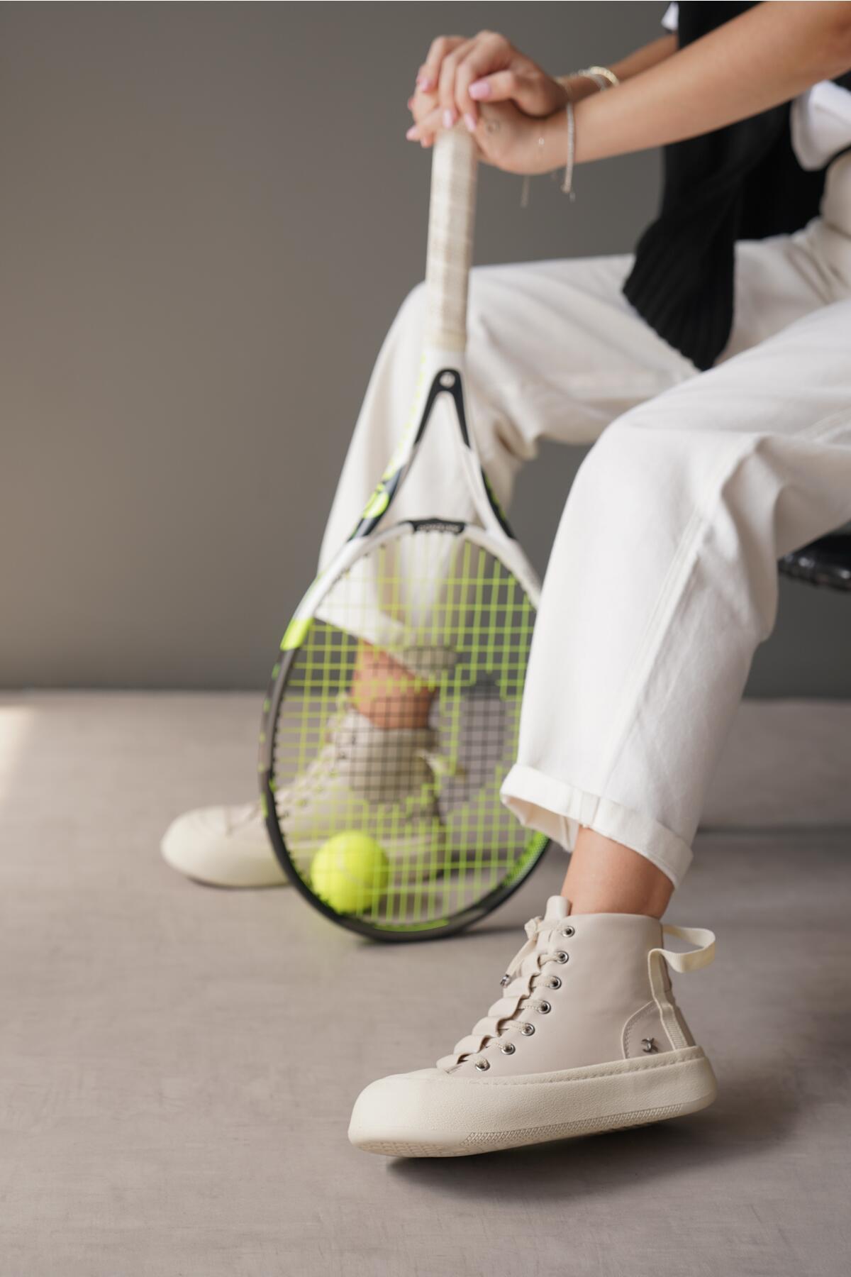 Kadın Bağcıklı Tasarım Taban Spor Bot Campe Bej
