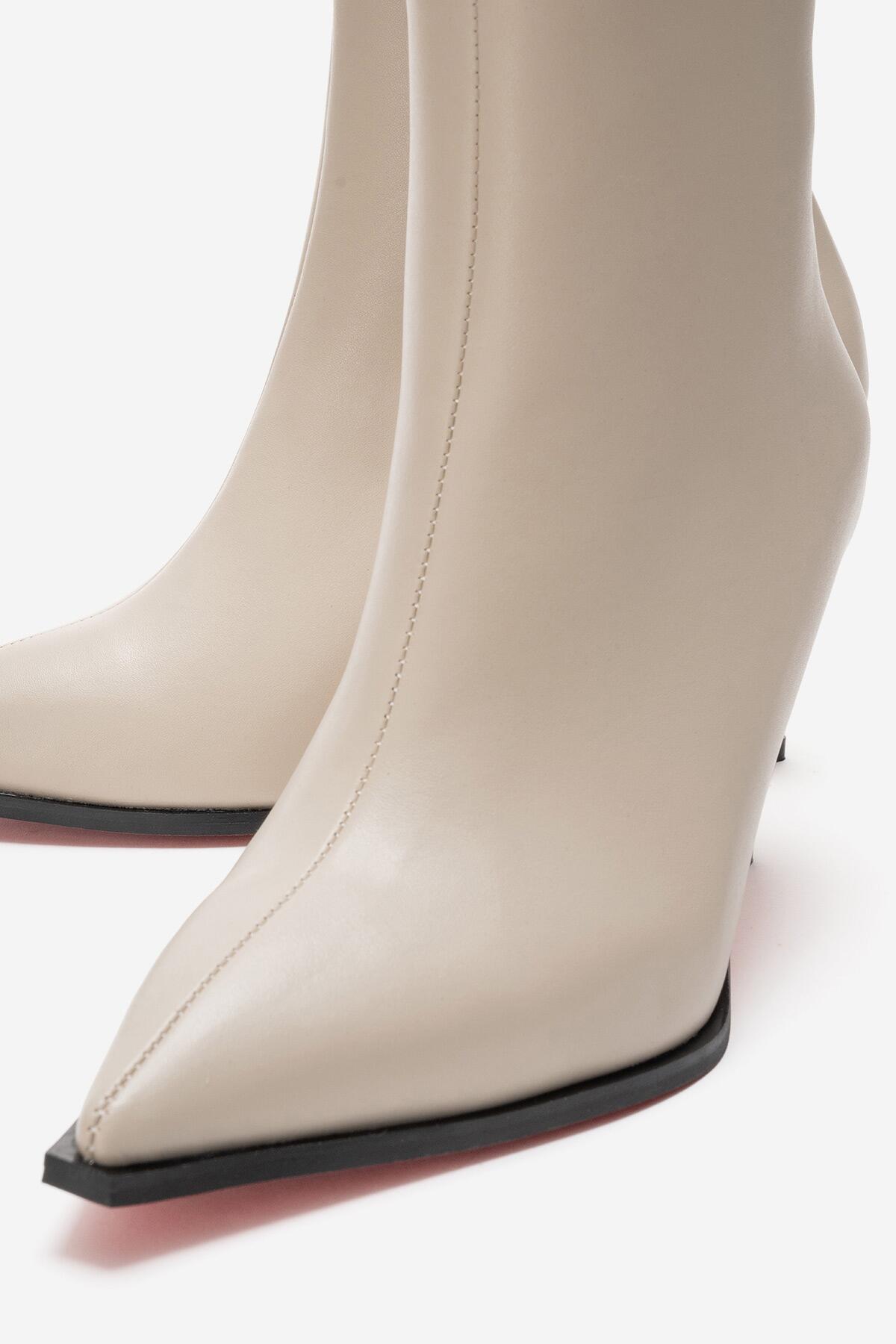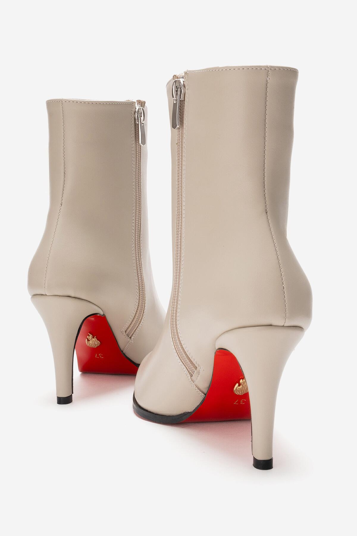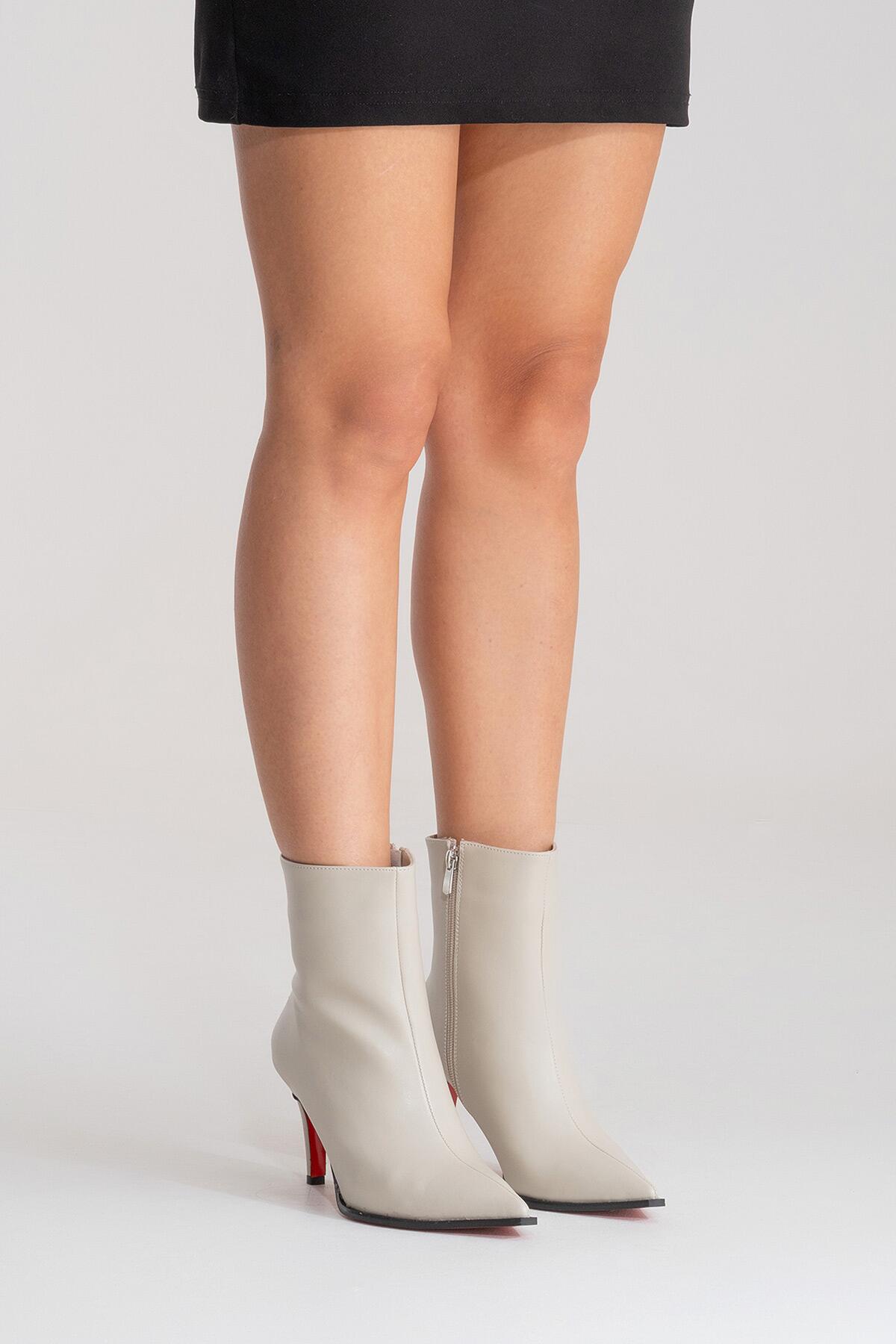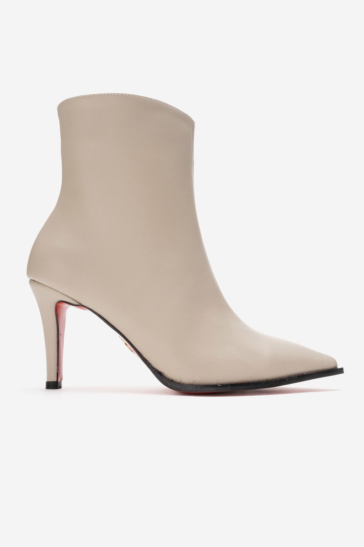 Kadın Bilek Boy Kısa İnce Topuklu Bot Torina Bej