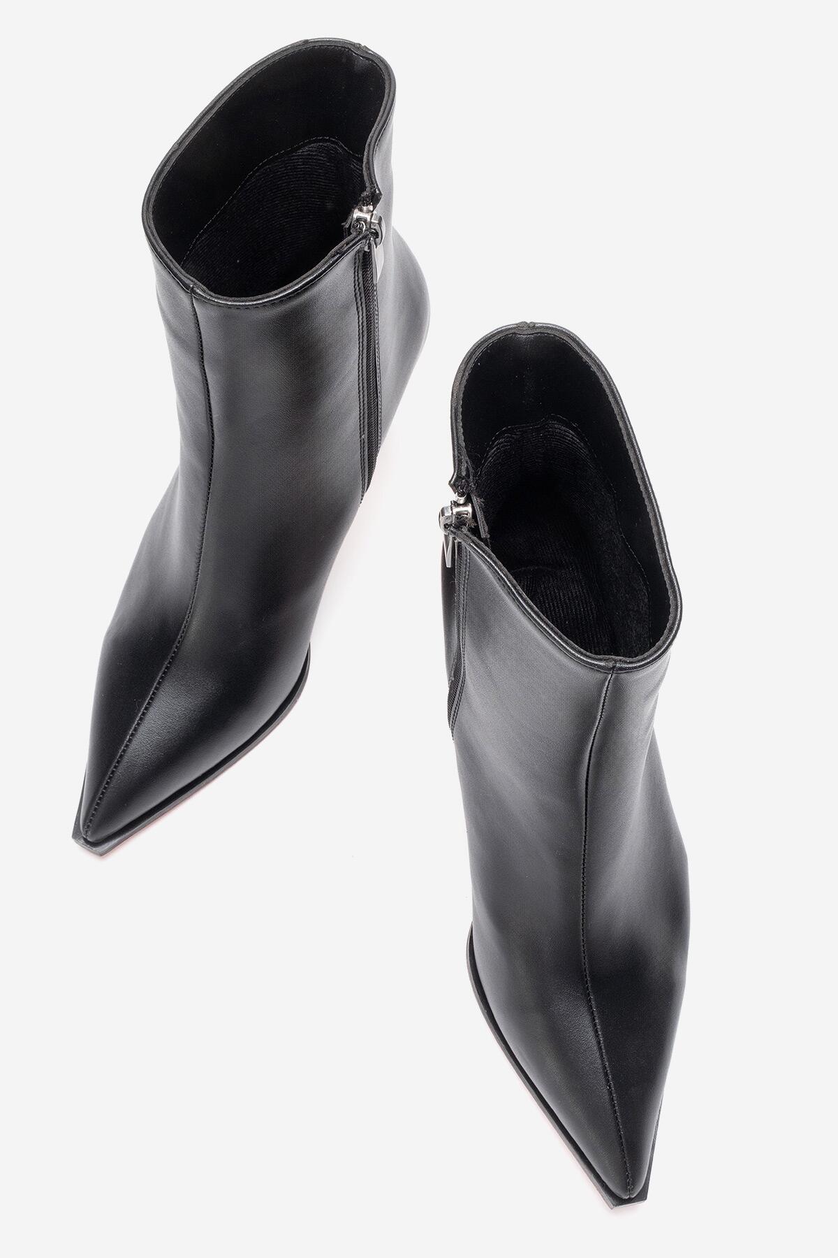 Kadın Bilek Boy Kısa İnce Topuklu Bot Torina Siyah Cilt