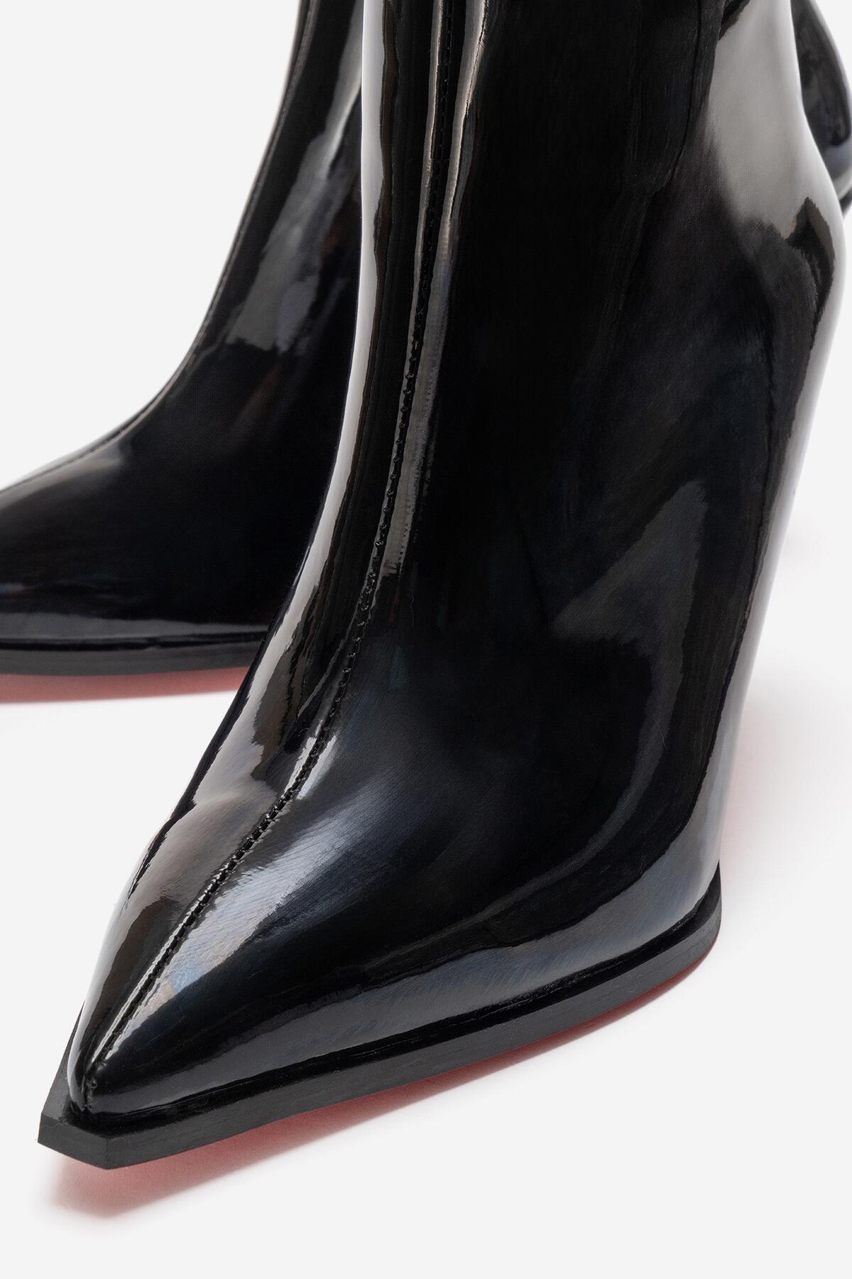 Kadın Bilek Boy Kısa İnce Topuklu Bot Torina Siyah Rugan