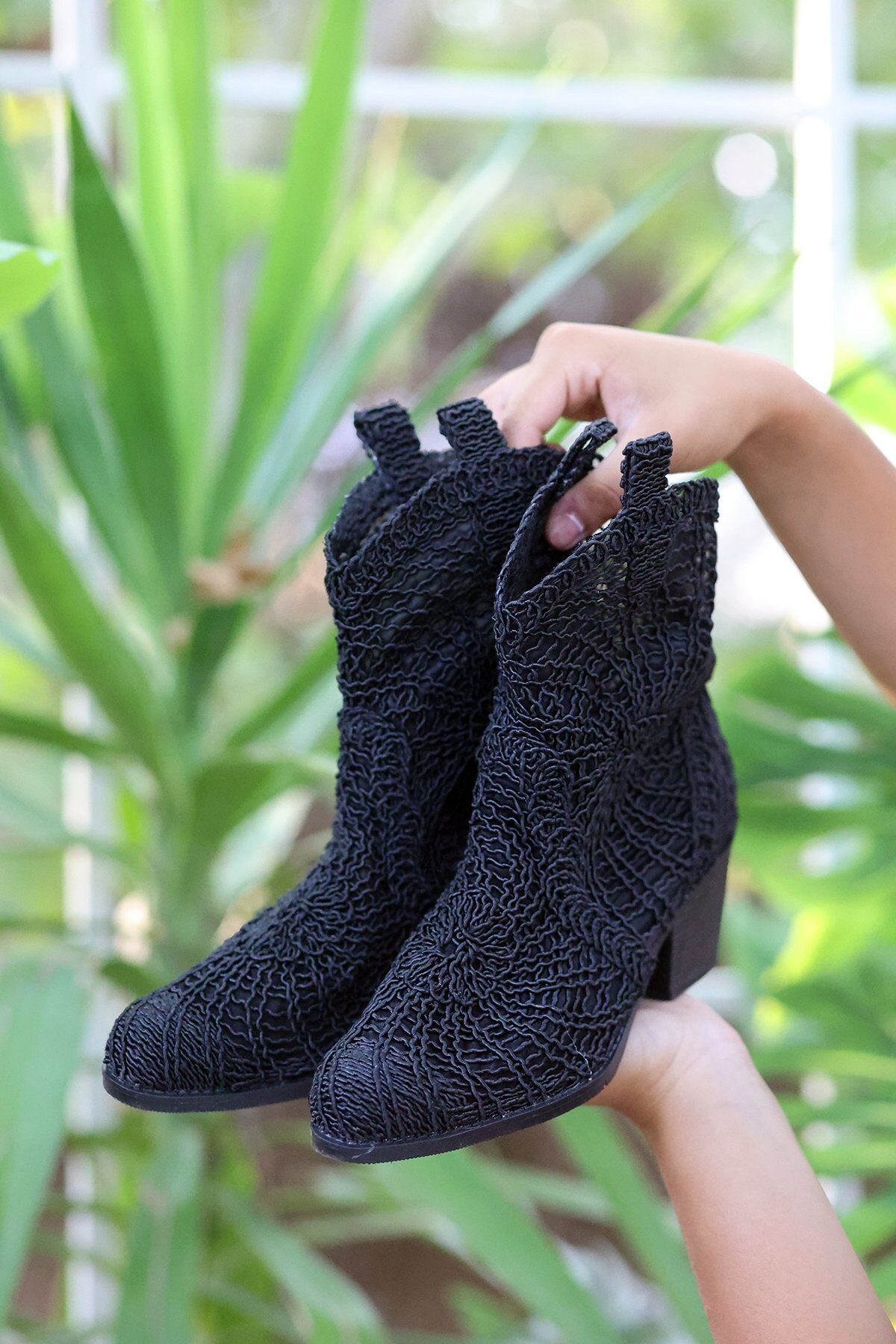 Kadın Dantelli Topuklu Yazlık Bot Hipari Siyah