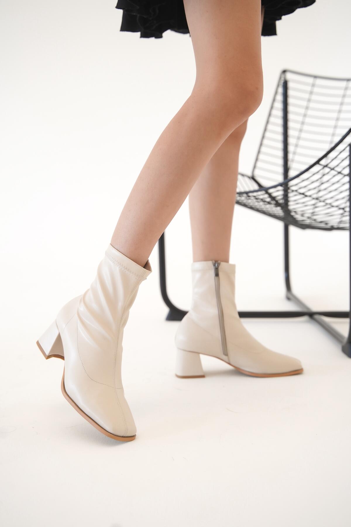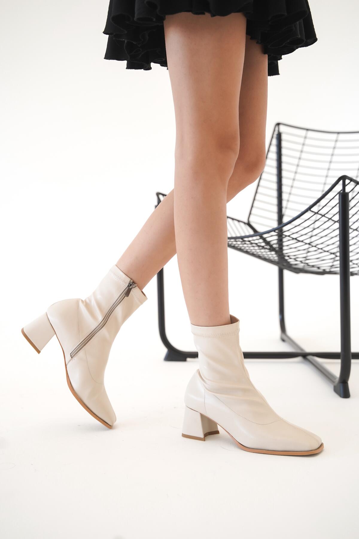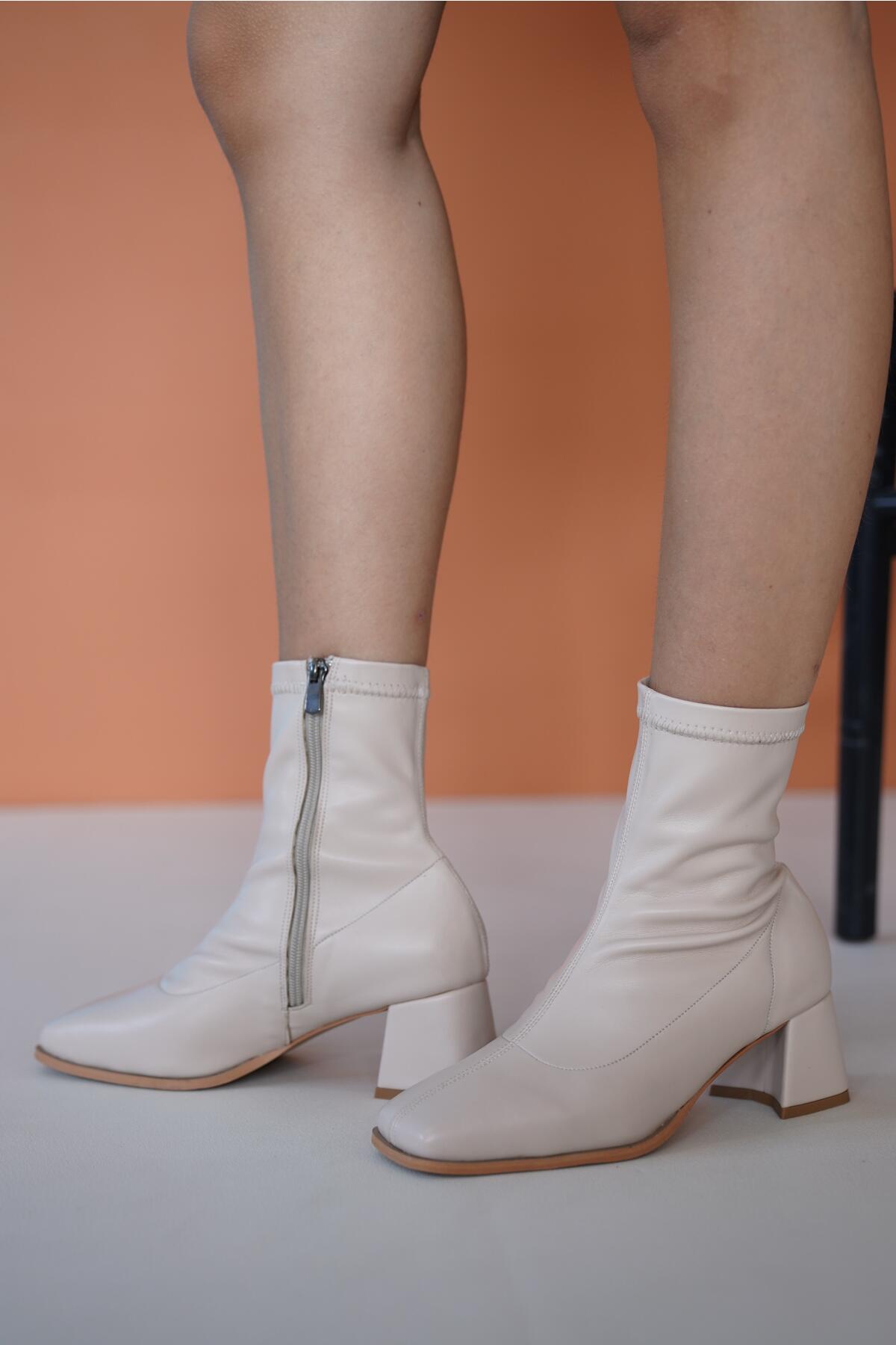 Kadın Fermuarlı Esnek Kısa Topuklu Bot Goya Bej