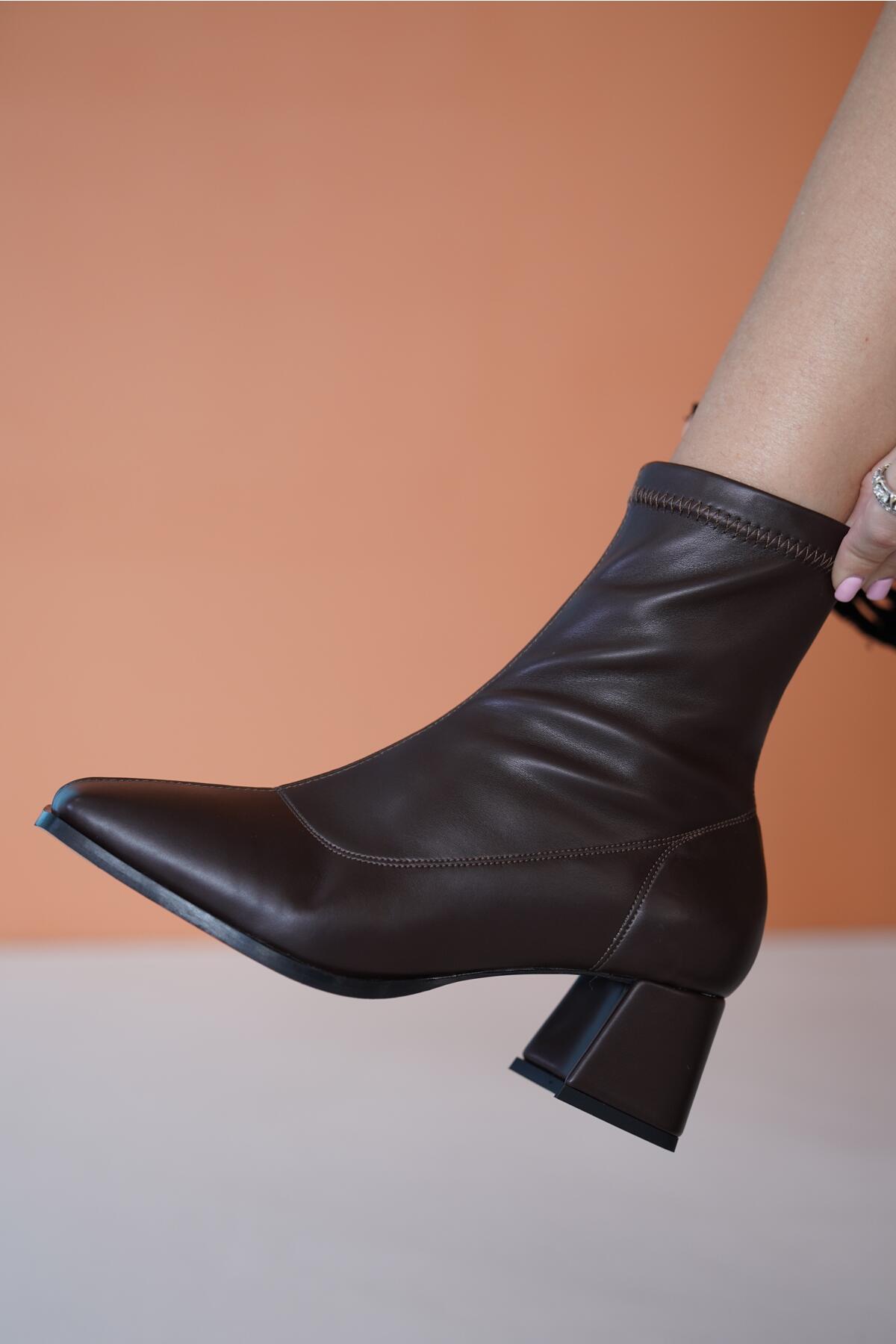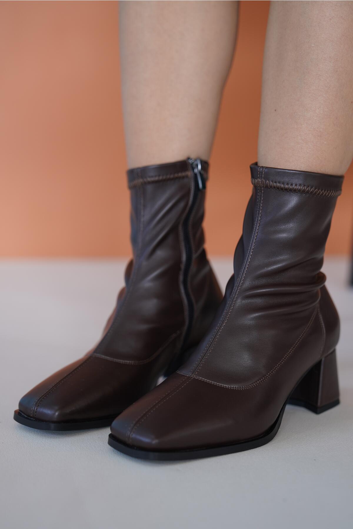 Kadın Fermuarlı Esnek Kısa Topuklu Bot Goya Kahverengi