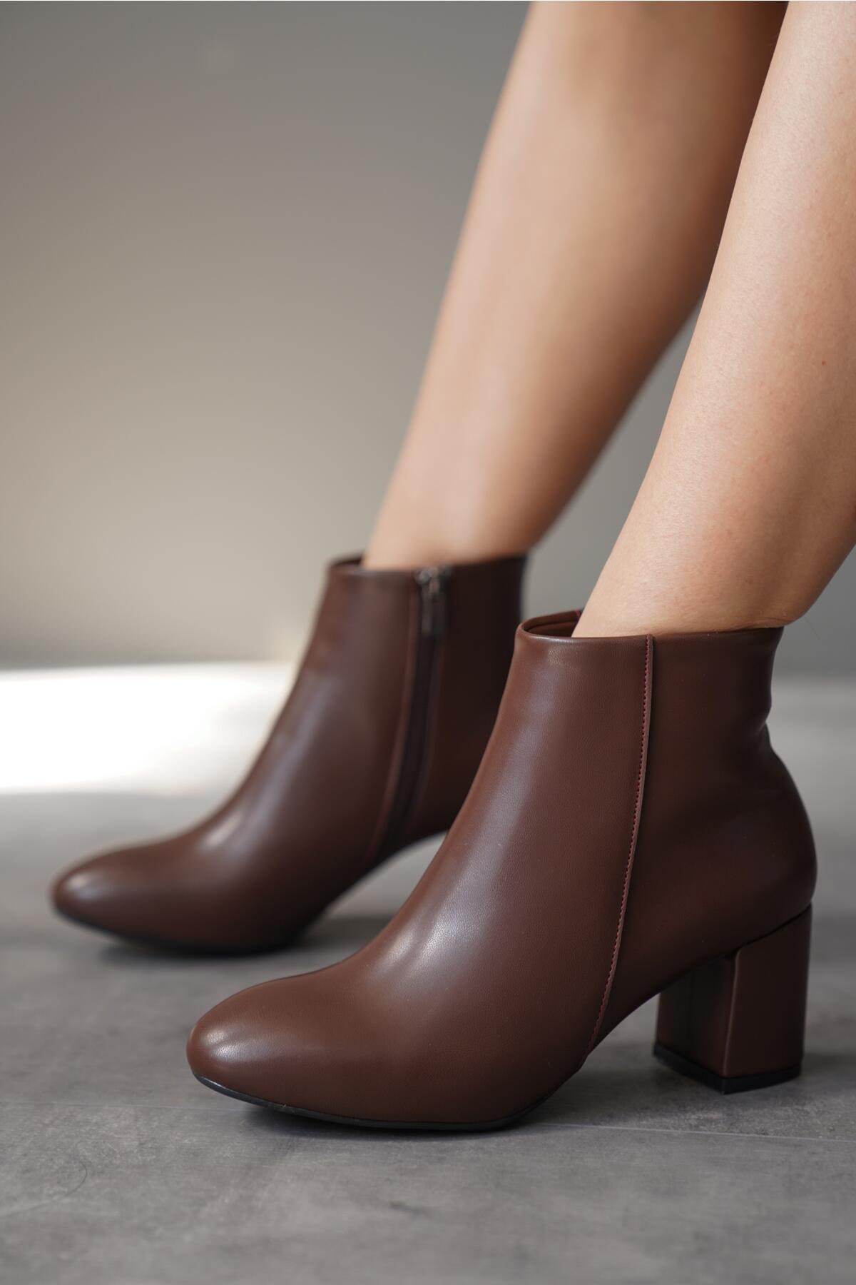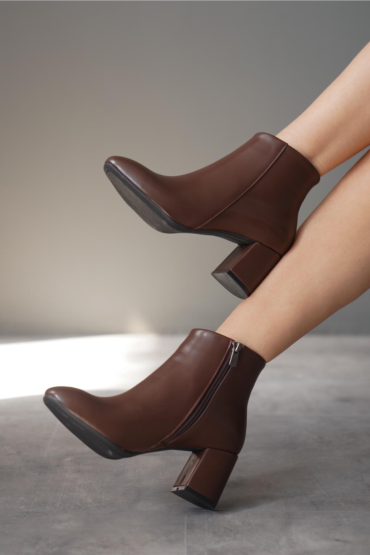 Kadın Fermuarlı Kısa Topuklu Bot Froya Kahverengi