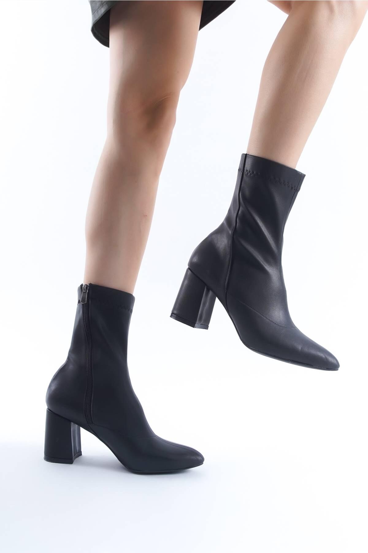 Kadın Fermuarlı Streç Kısa Topuklu Bot Botim Siyah Cilt