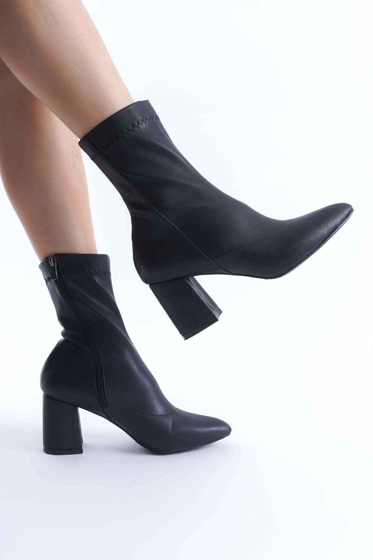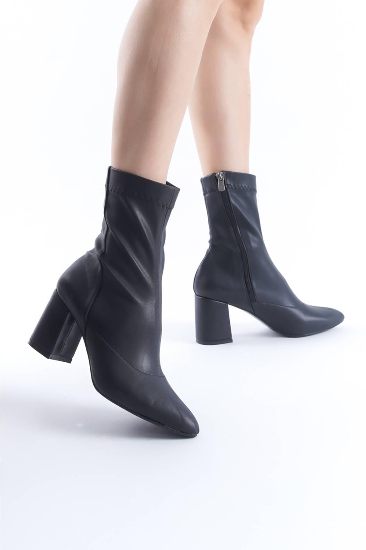 Kadın Fermuarlı Streç Kısa Topuklu Bot Botim Siyah Cilt