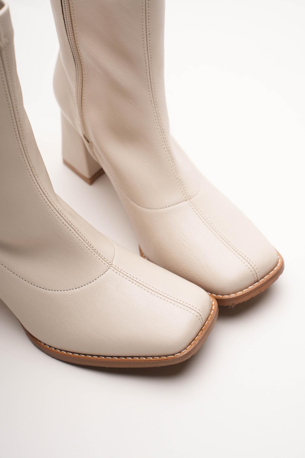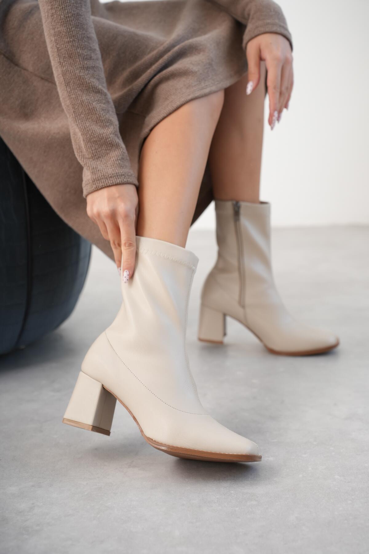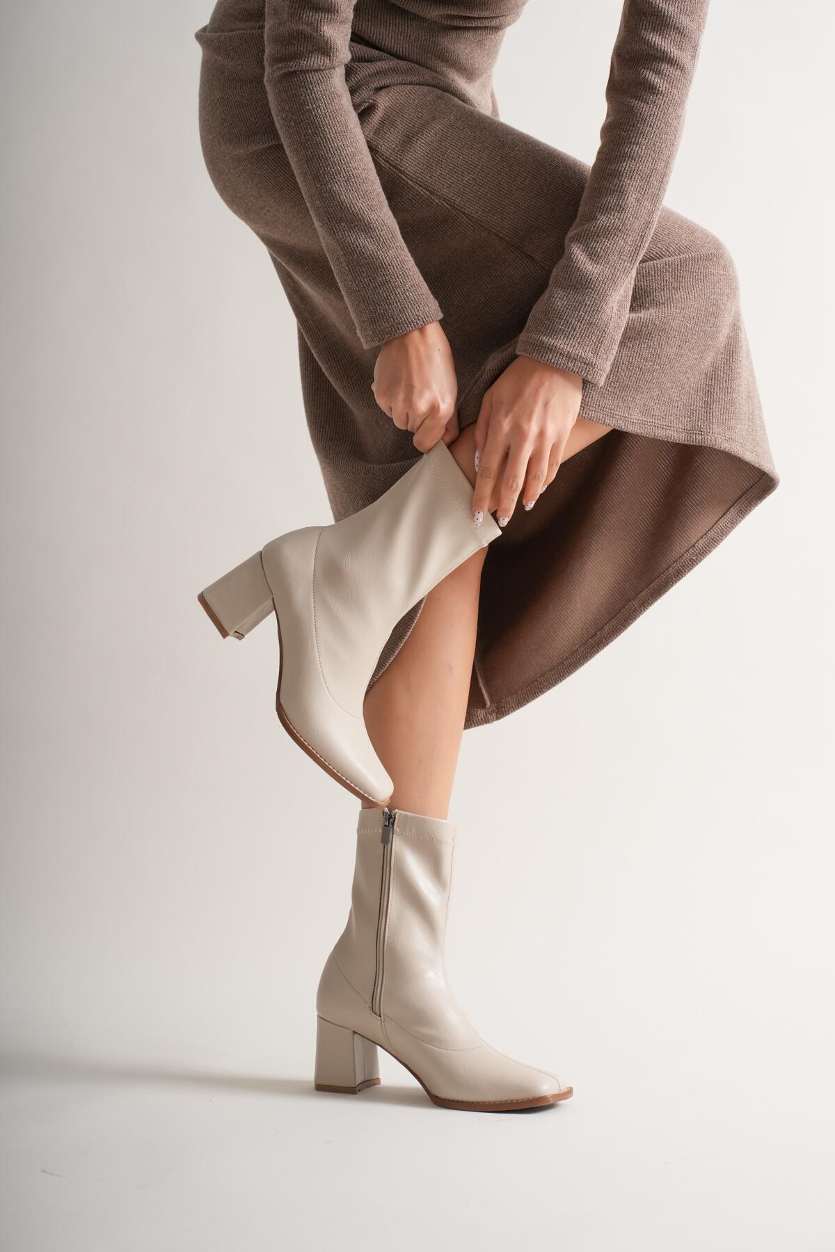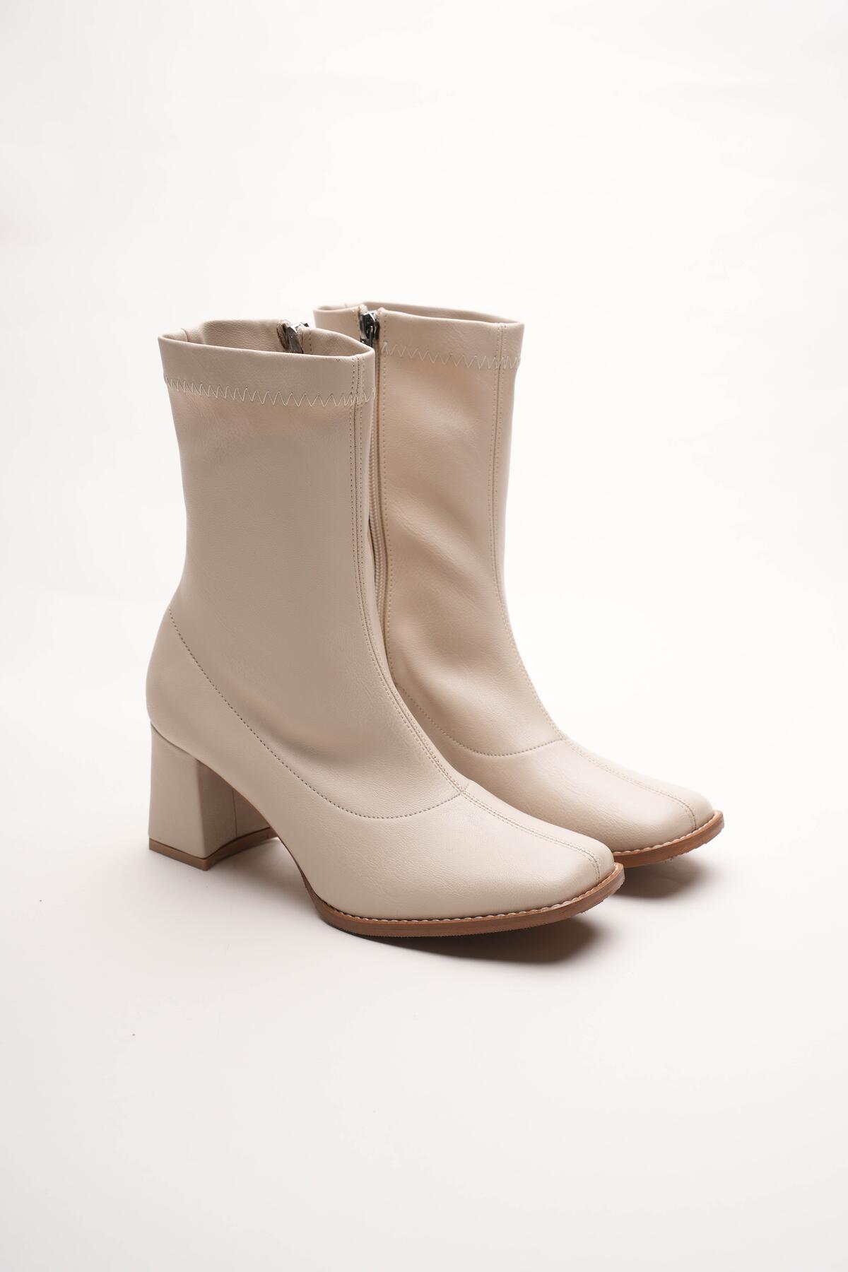 Kadın Fermuarlı Streç Topuklu Bot Cosele Bej