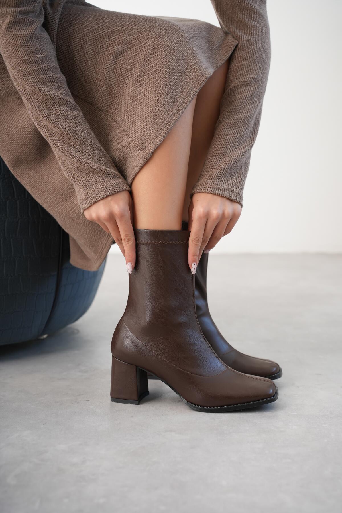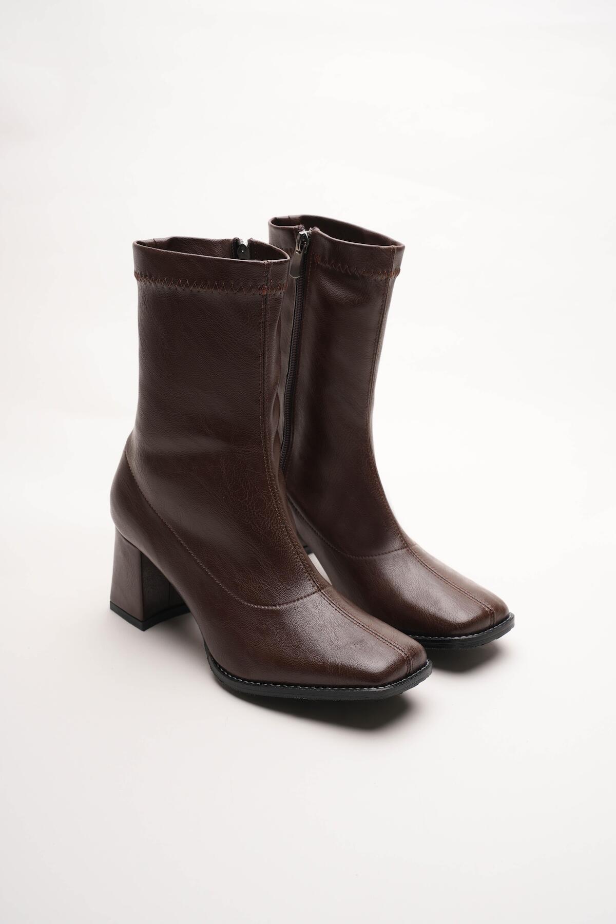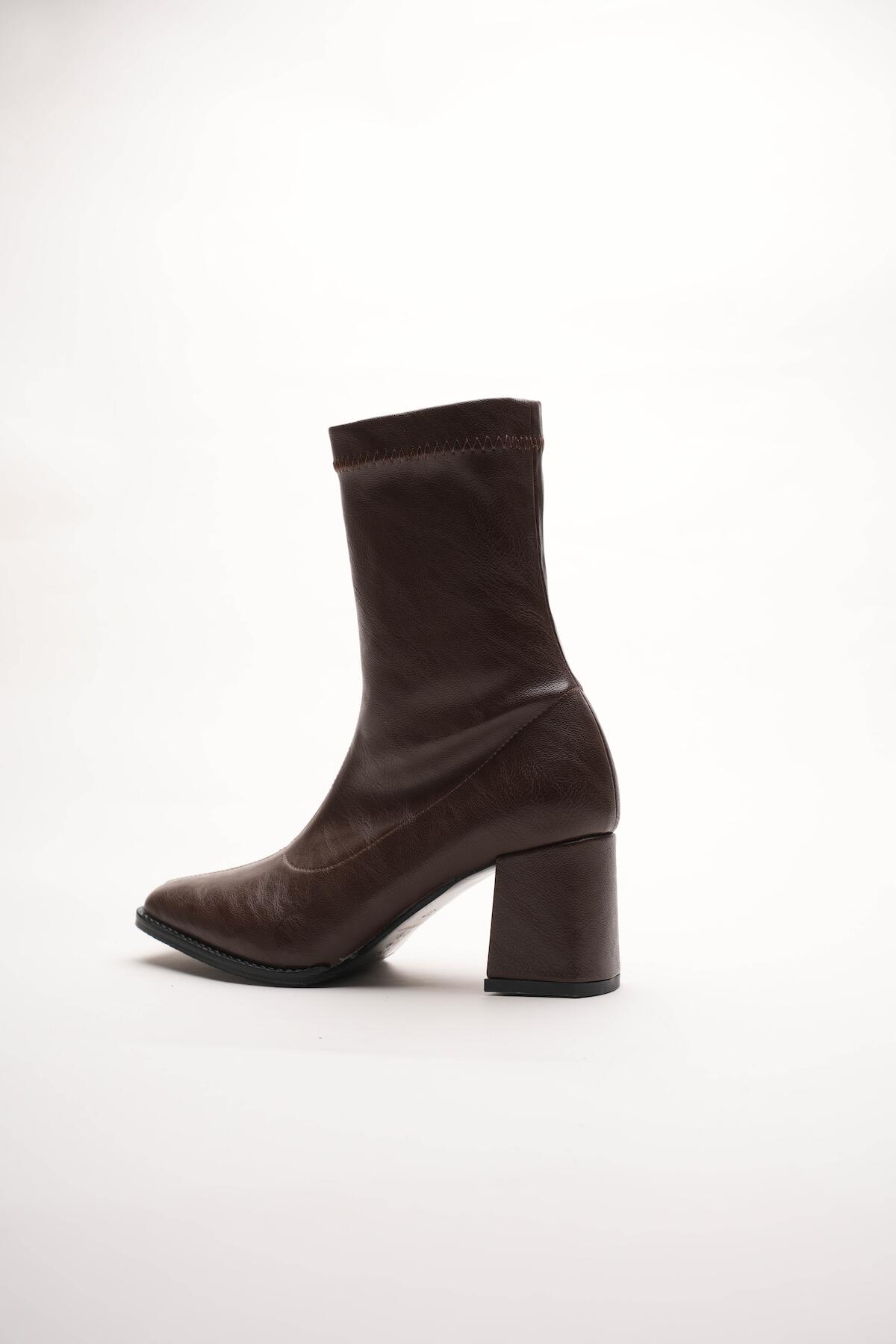 Kadın Fermuarlı Streç Topuklu Bot Cosele Kahverengi