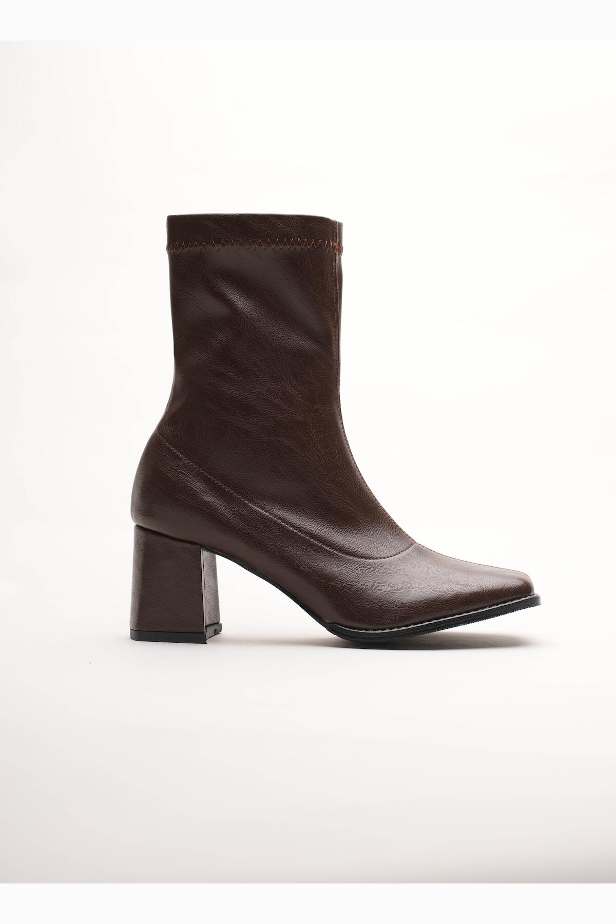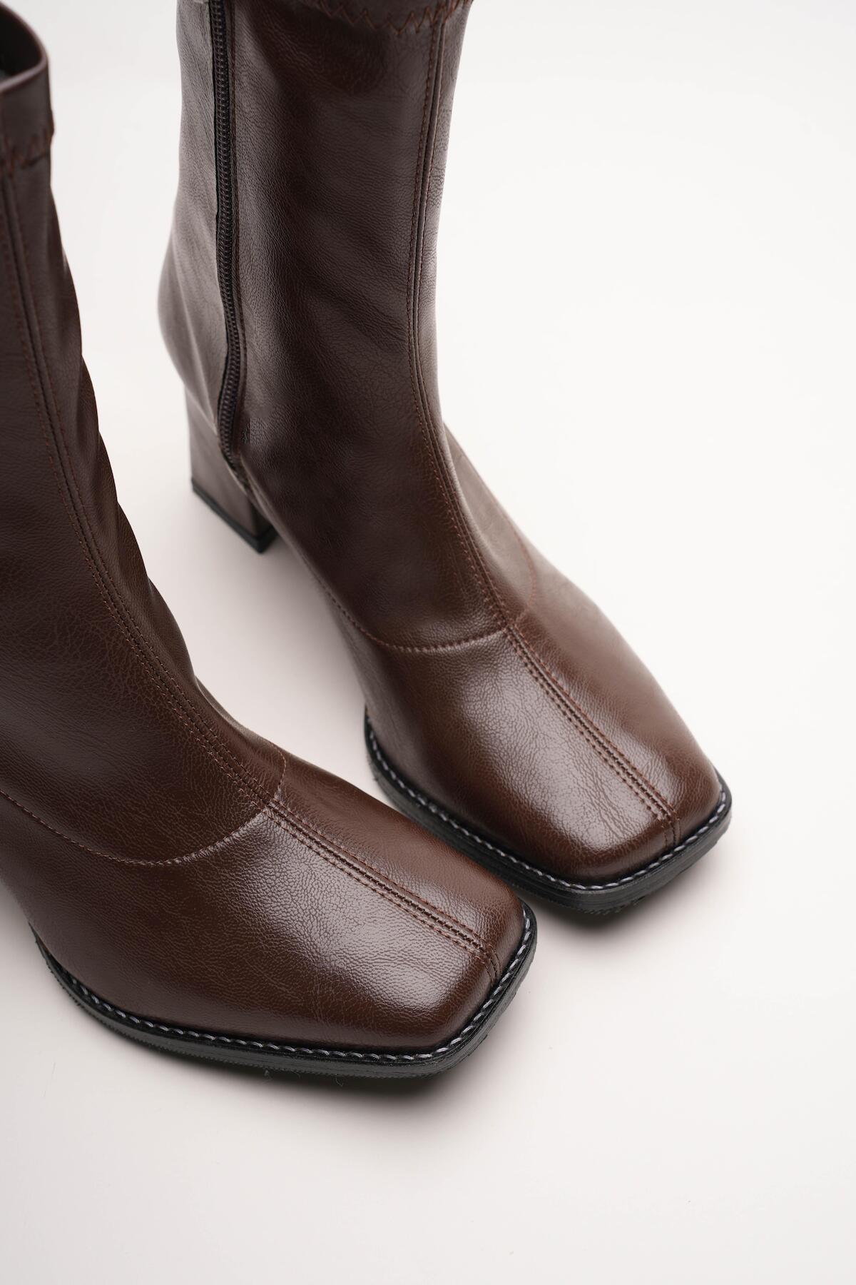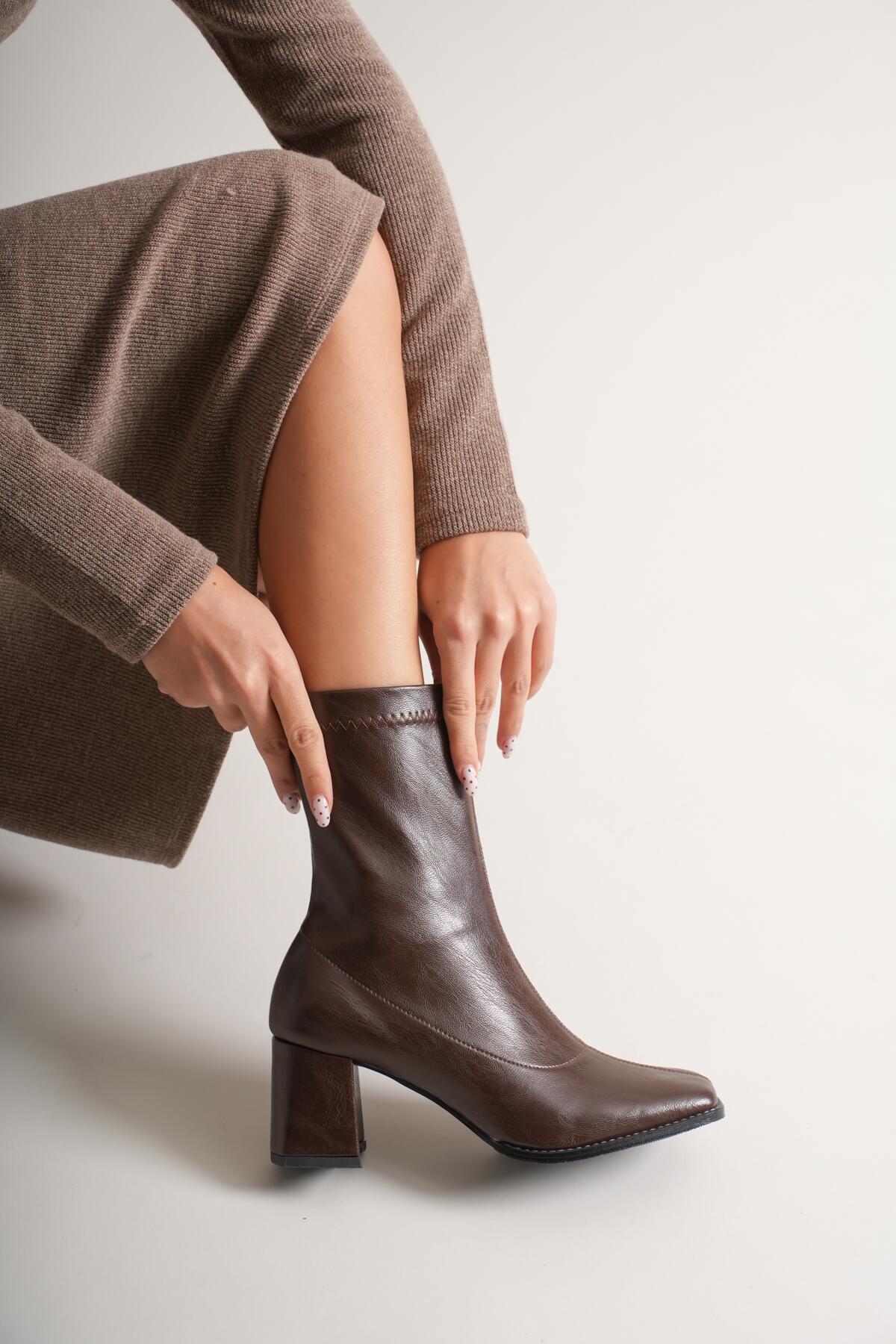 Kadın Fermuarlı Streç Topuklu Bot Cosele Kahverengi