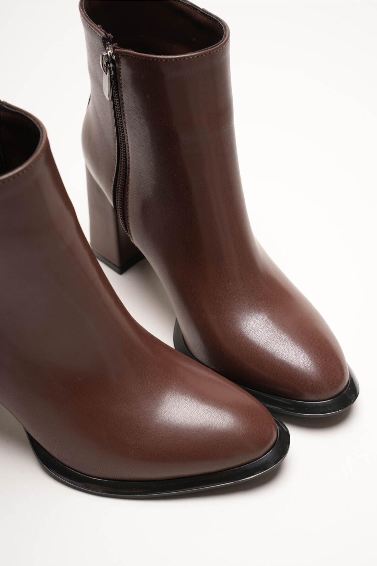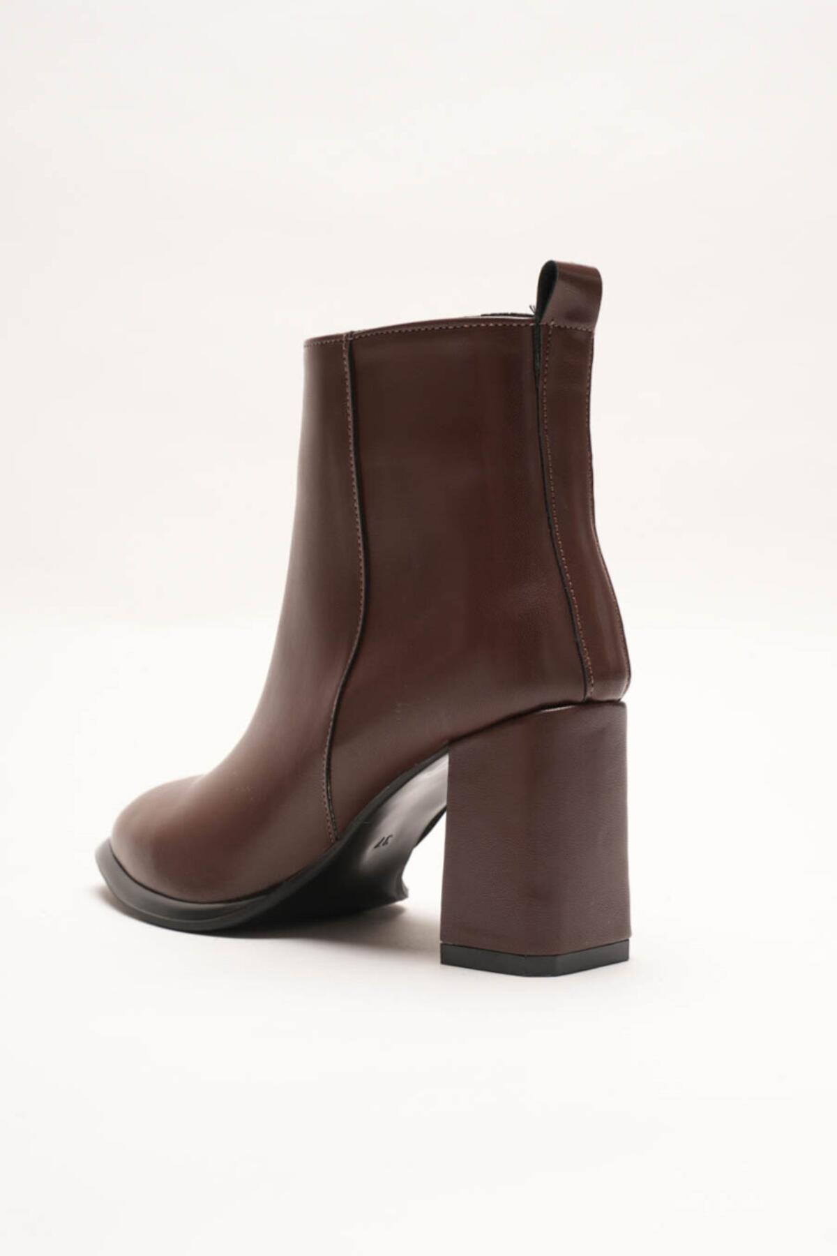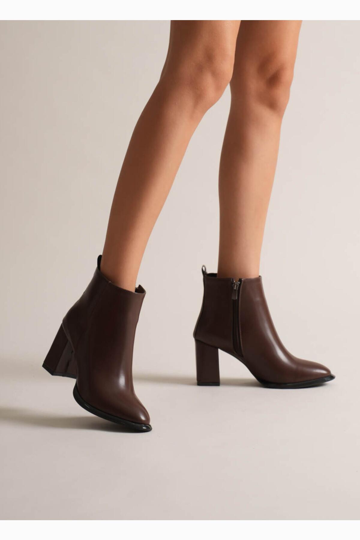 Kadın Kahverengi Kalın Topuklu Fermuarlı Kışlık Bot & Suni Deri Bilek Boy Bootie Julian Kahverengi
