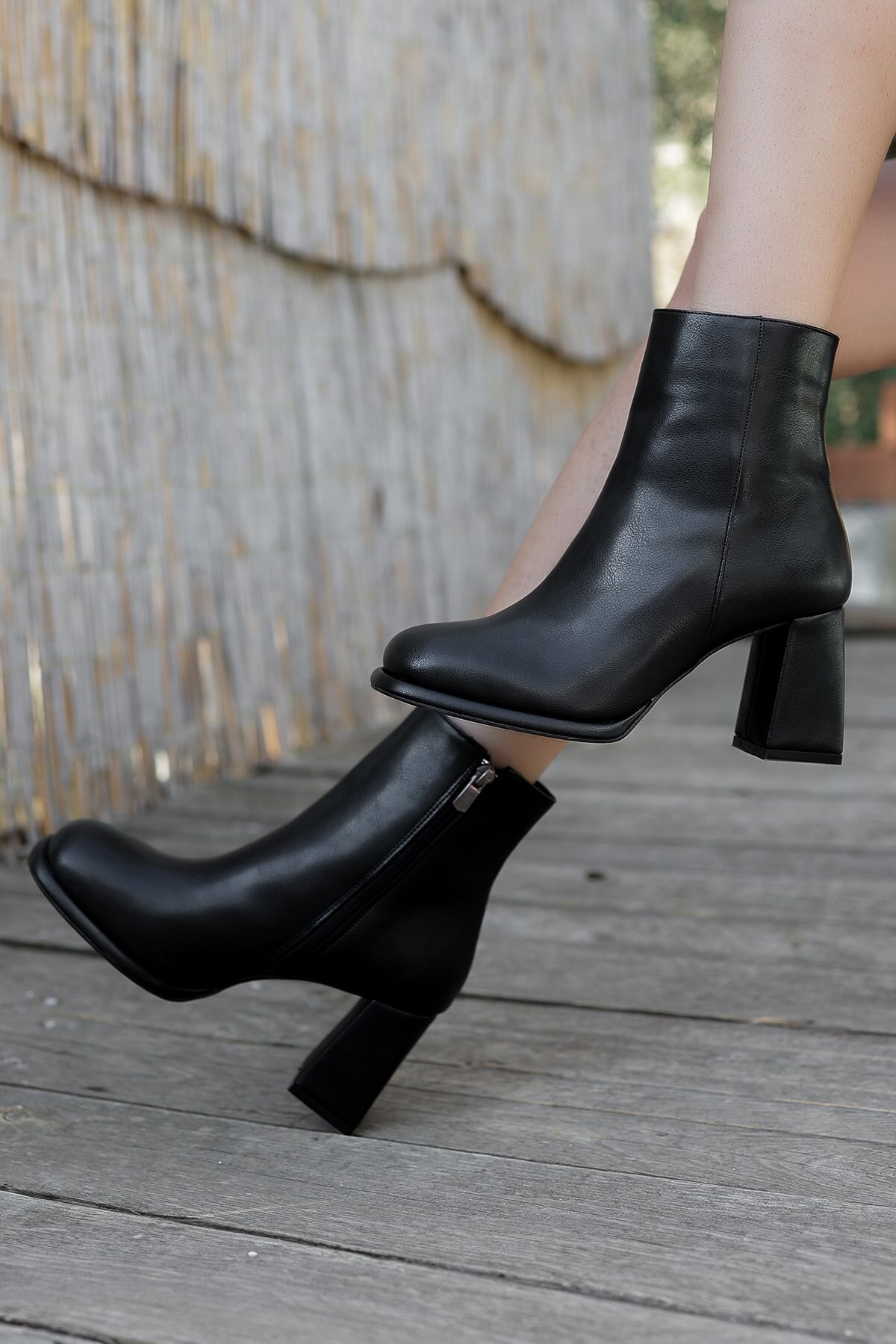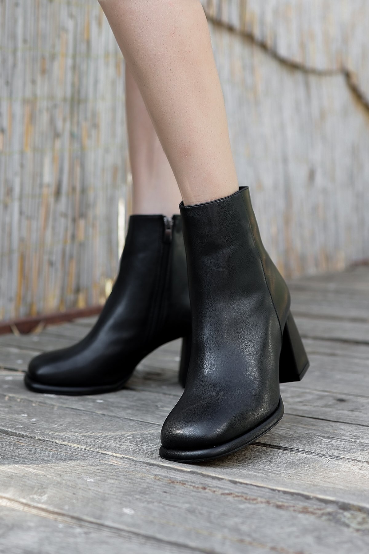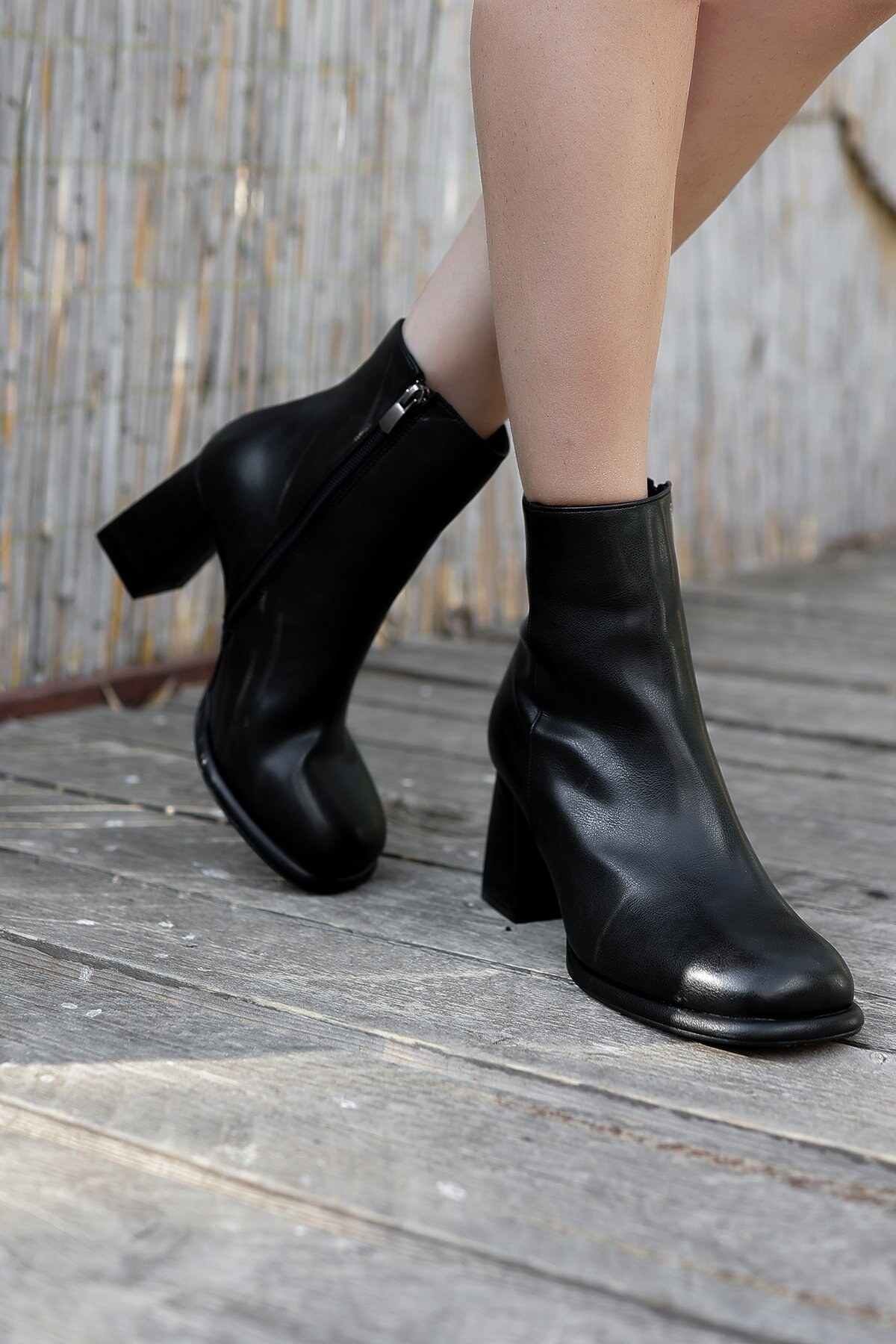 Kadın Fermuarlı Kısa Topuklu Bot Harel Siyah Cilt