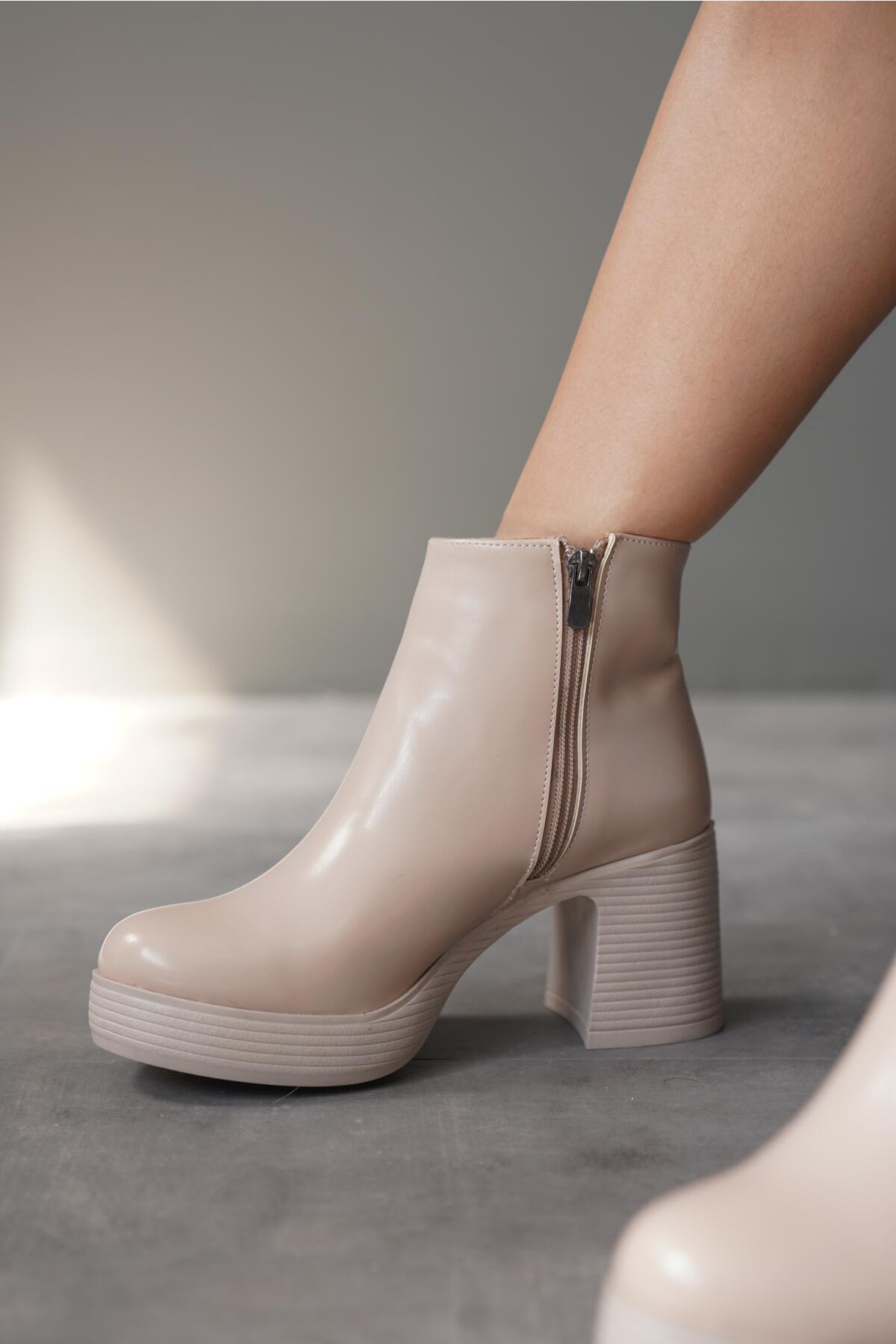 Kadın Kısa Topuklu Platform Bot Gona Bej