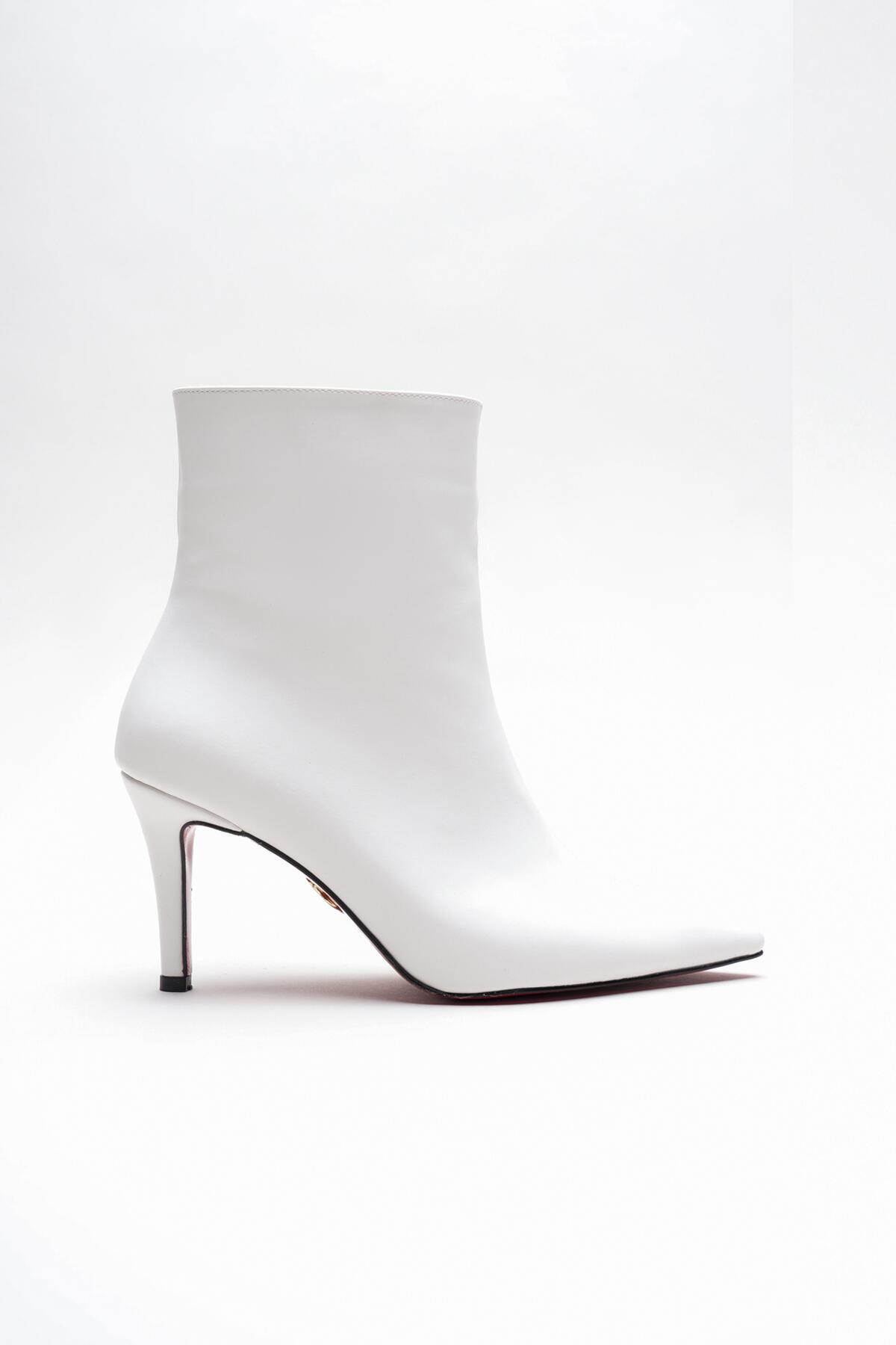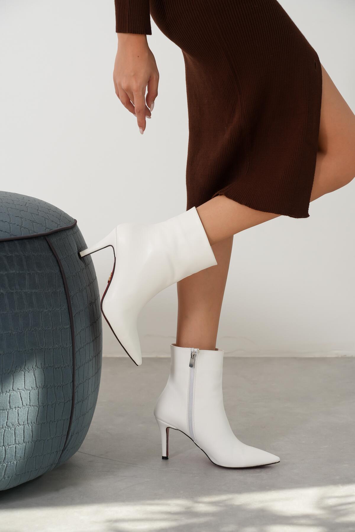 Kadın Kısa Topuklu Sivri Burun Bot Deco Beyaz Cilt