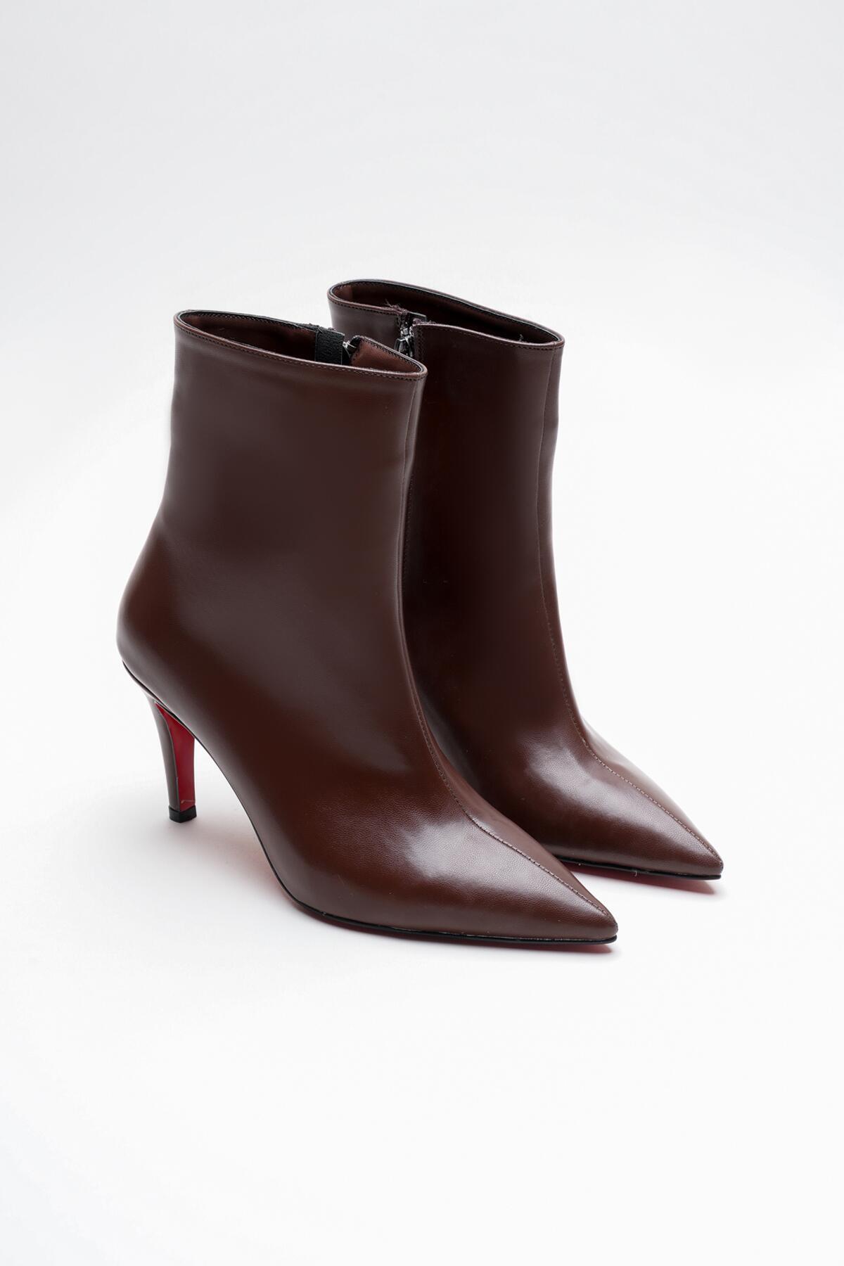 Kadın Kısa Topuklu Sivri Burun Bot Deco Kahverengi