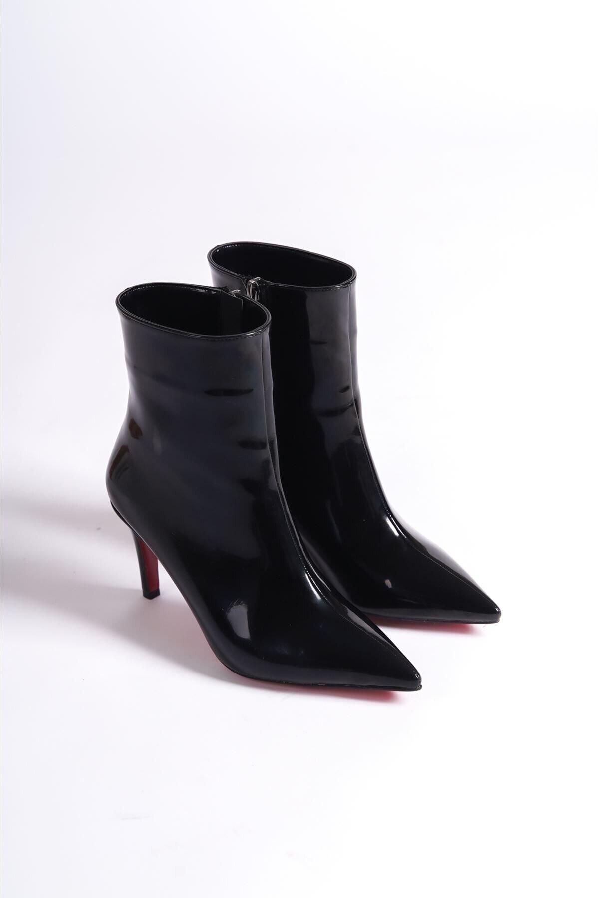 Kadın Kısa Topuklu Sivri Burun Bot Deco Siyah Rugan