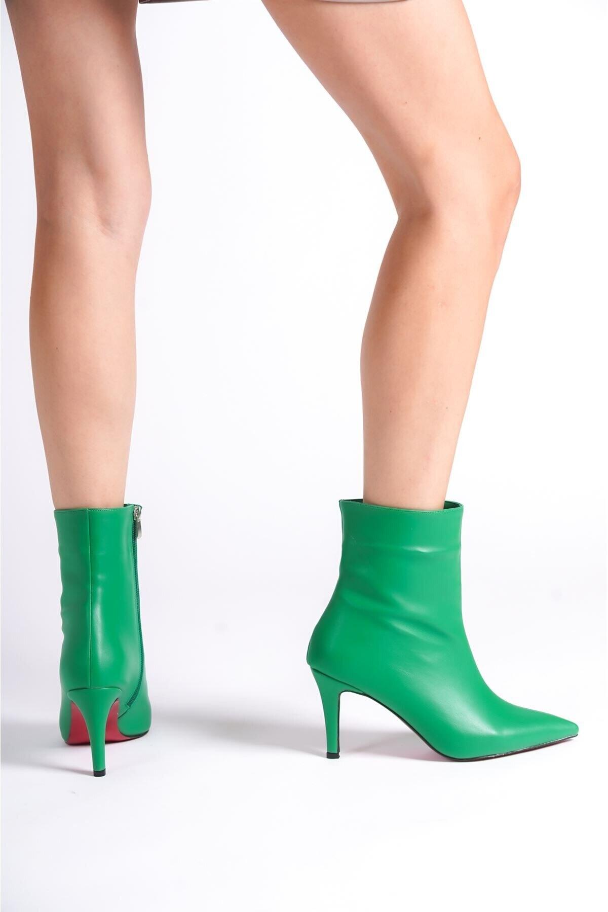 Kadın Kısa Topuklu Sivri Burun Bot Deco Yeşil