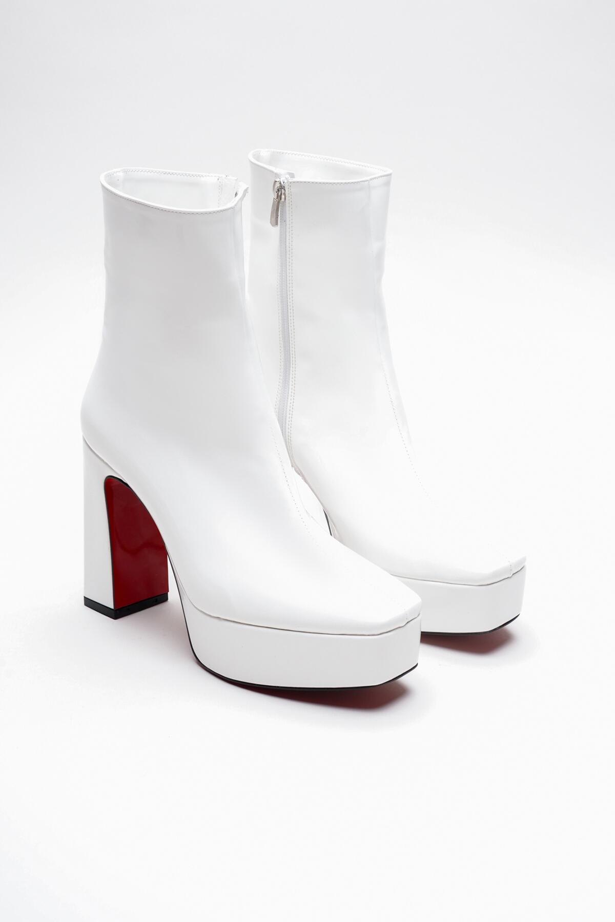 Kadın Platform Topuklu Bot Vito Beyaz Rugan