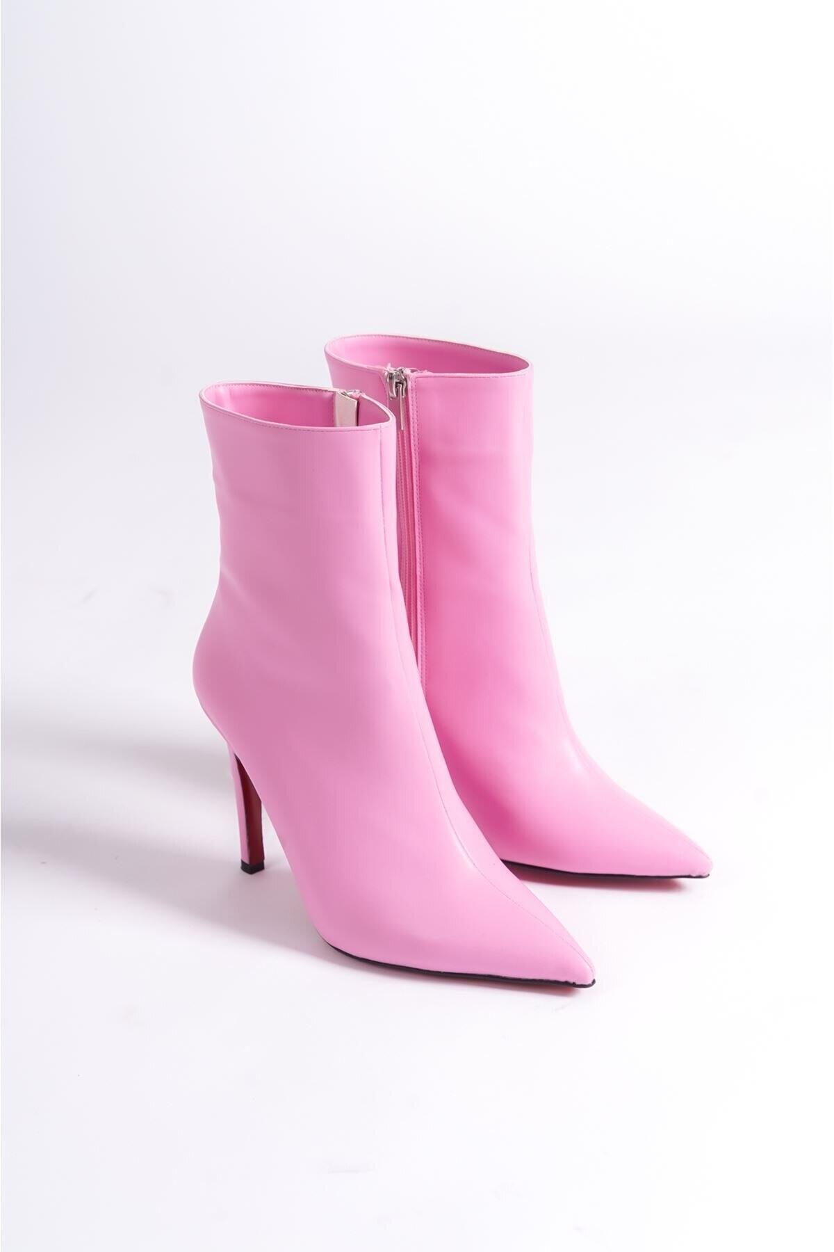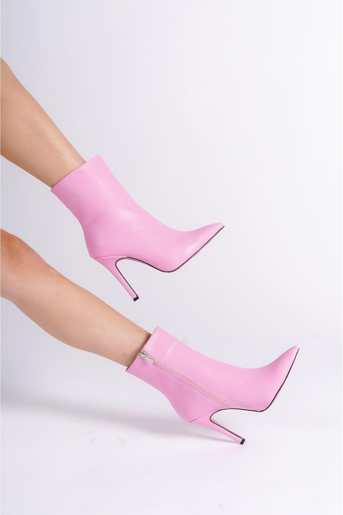Kadın Sivri Burun Topuklu Bot Togi Pembe Cilt