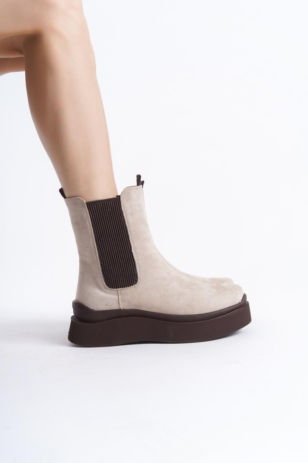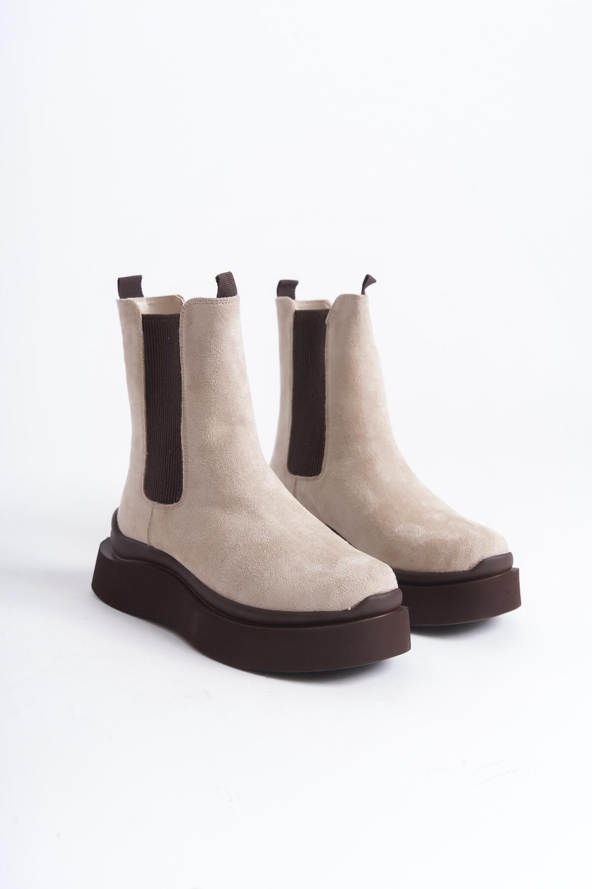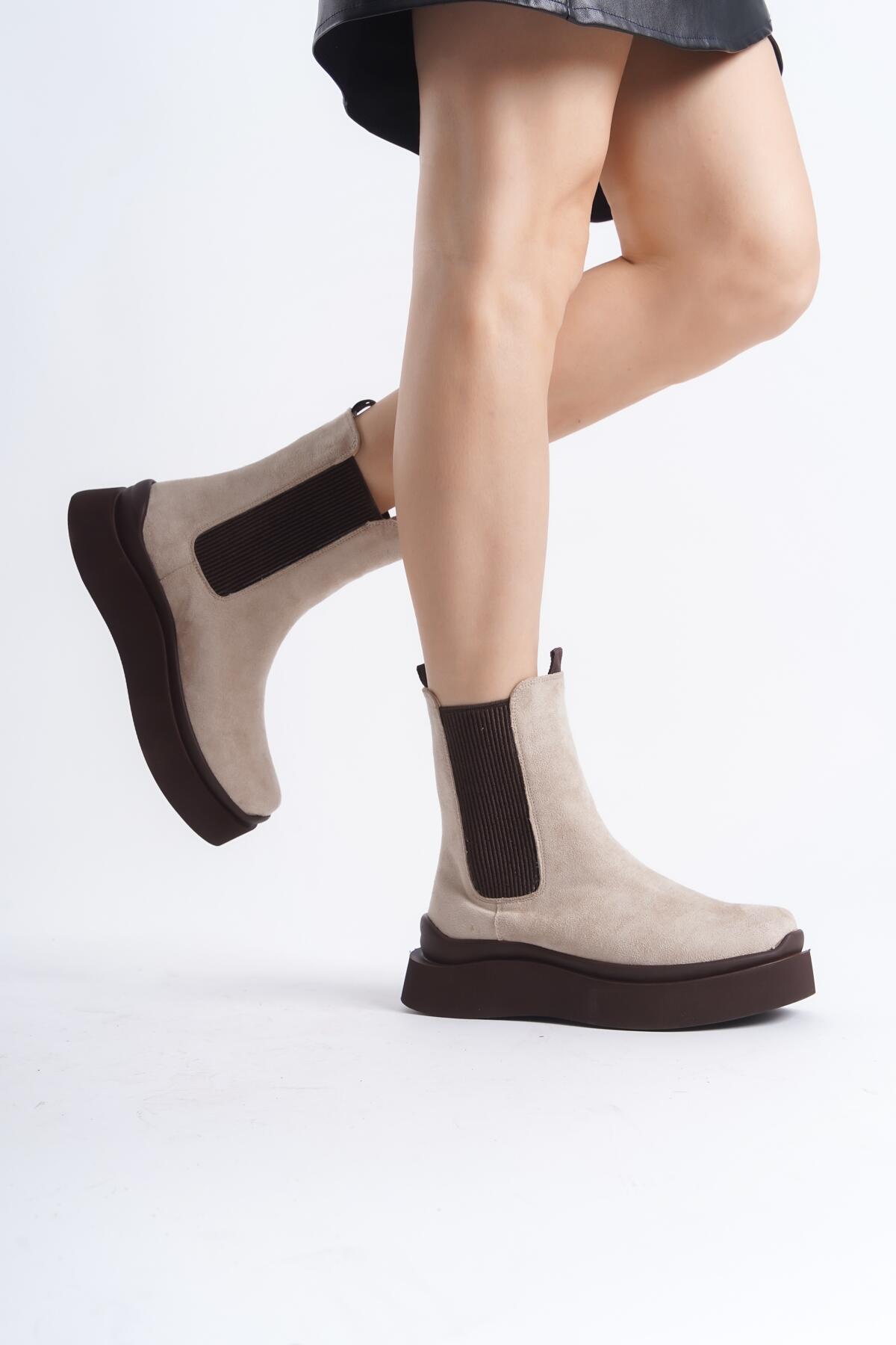 Kadın Tasarım Taban Lastikli Bot Yedra Bej
