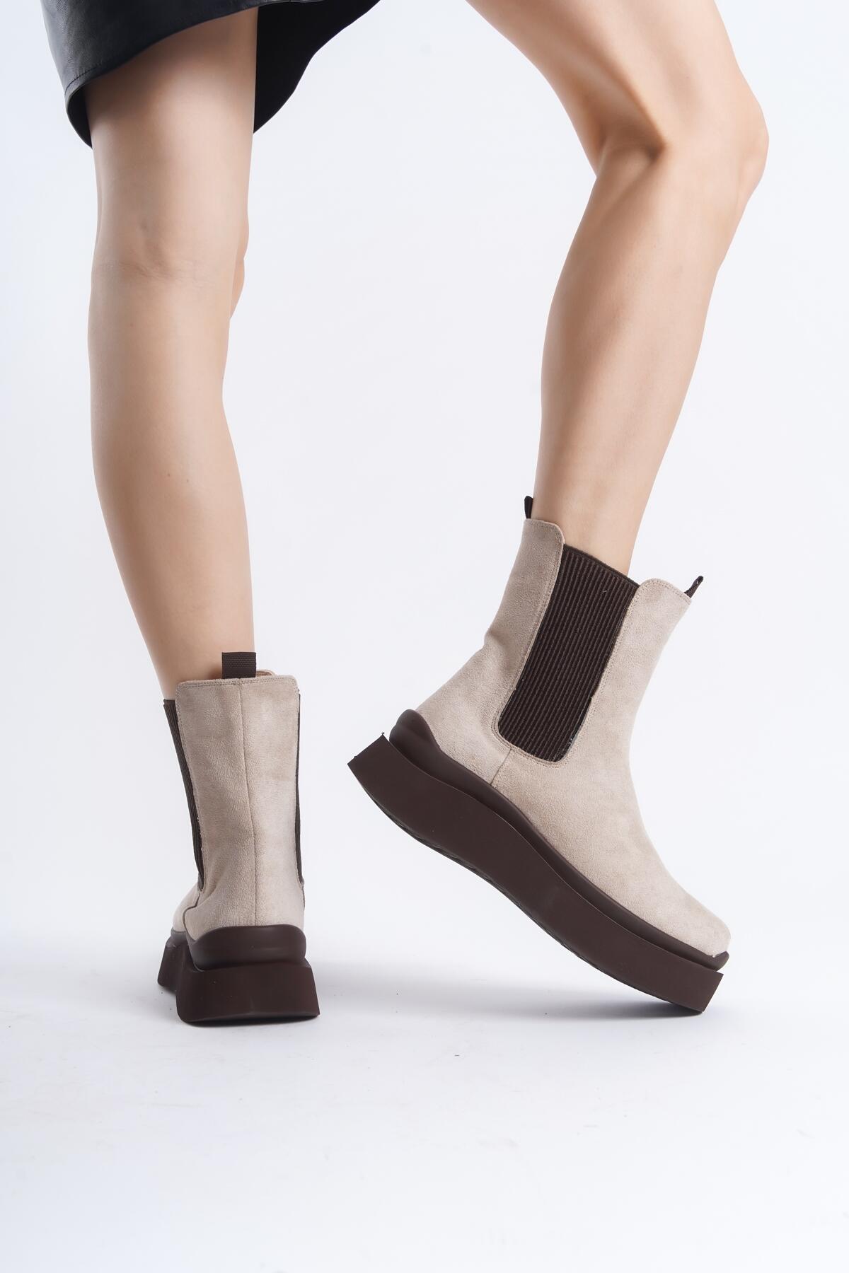 Kadın Tasarım Taban Lastikli Bot Yedra Bej