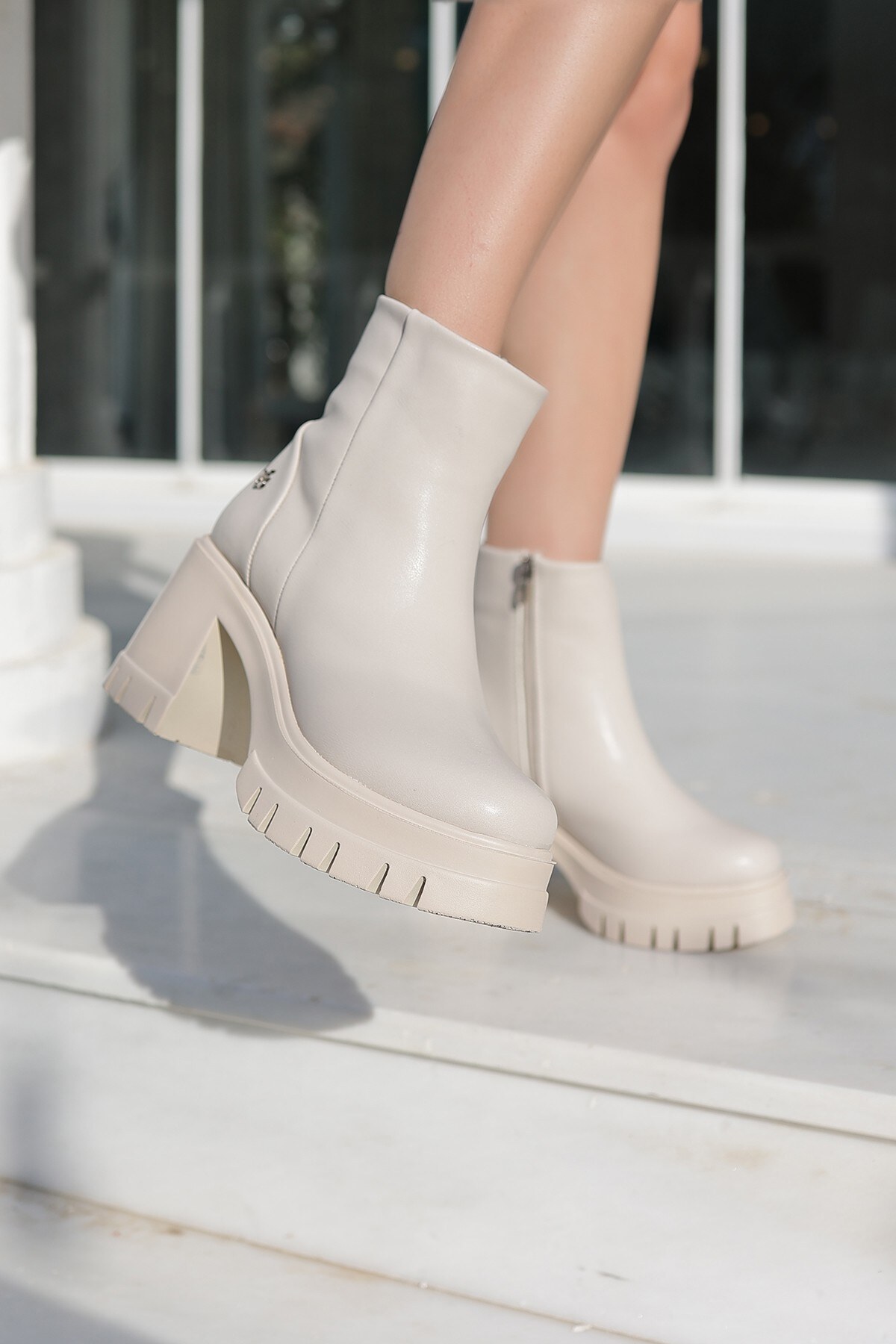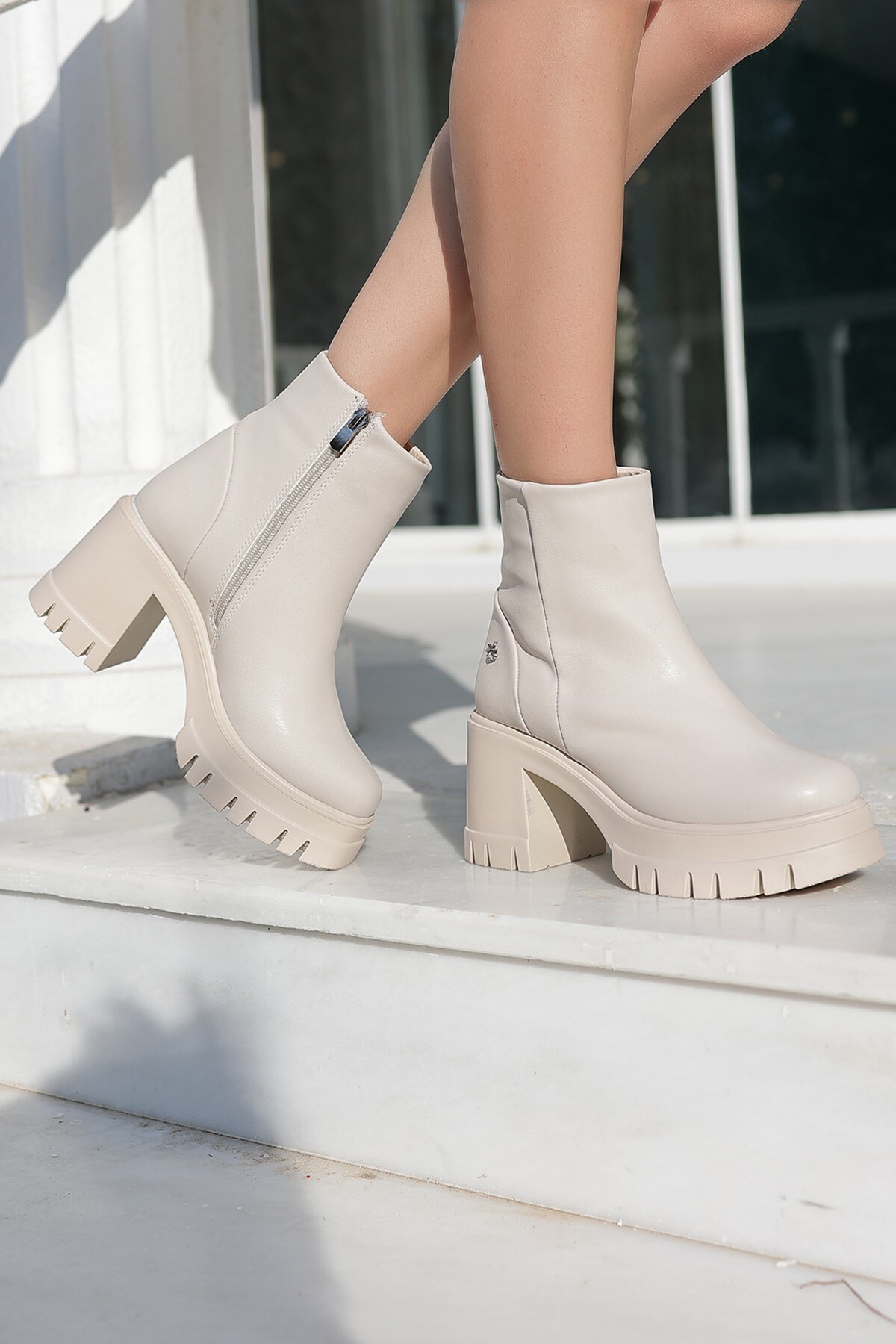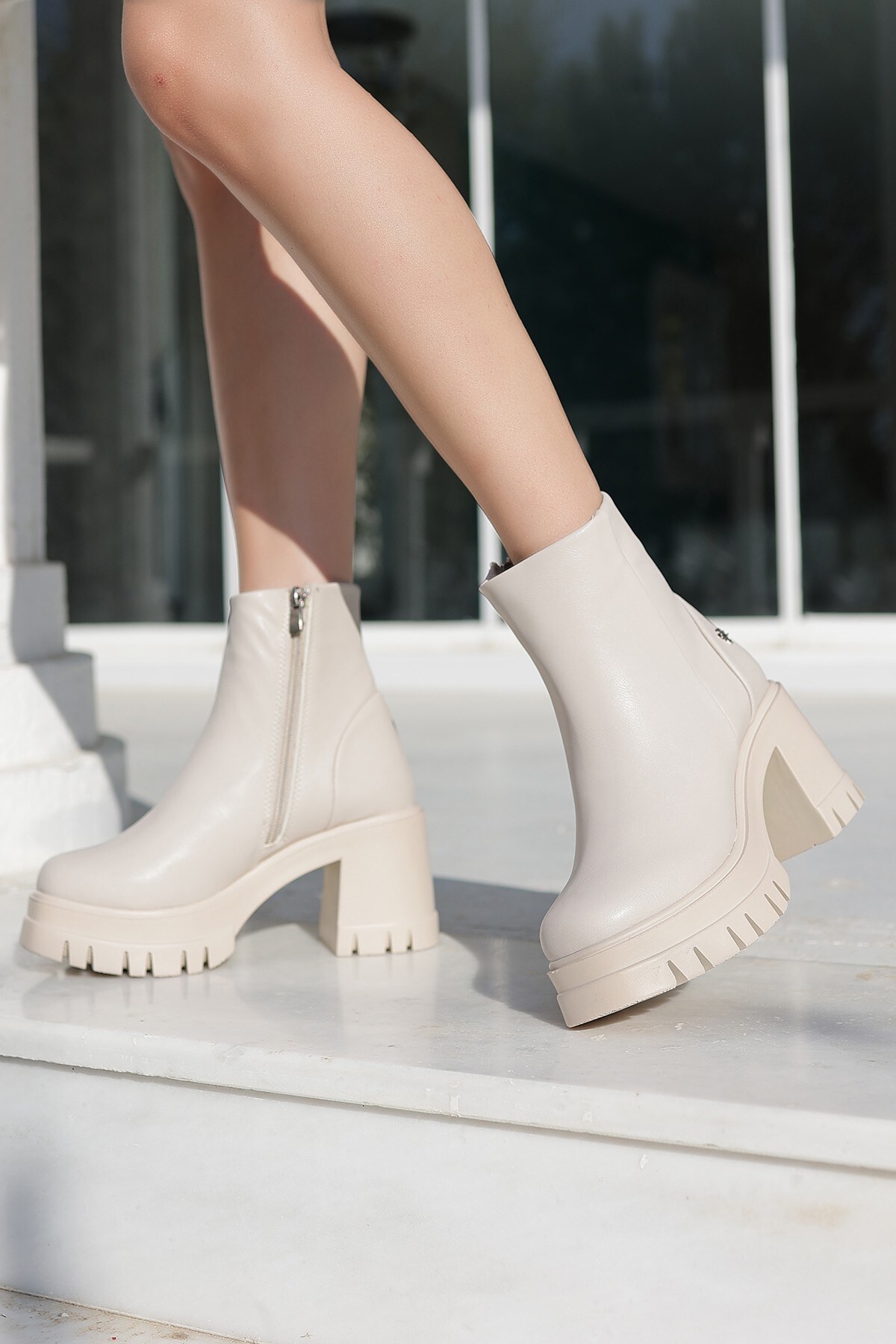 Kadın Yüksek Taban Fermuarlı Bot Klira Bej Bej
