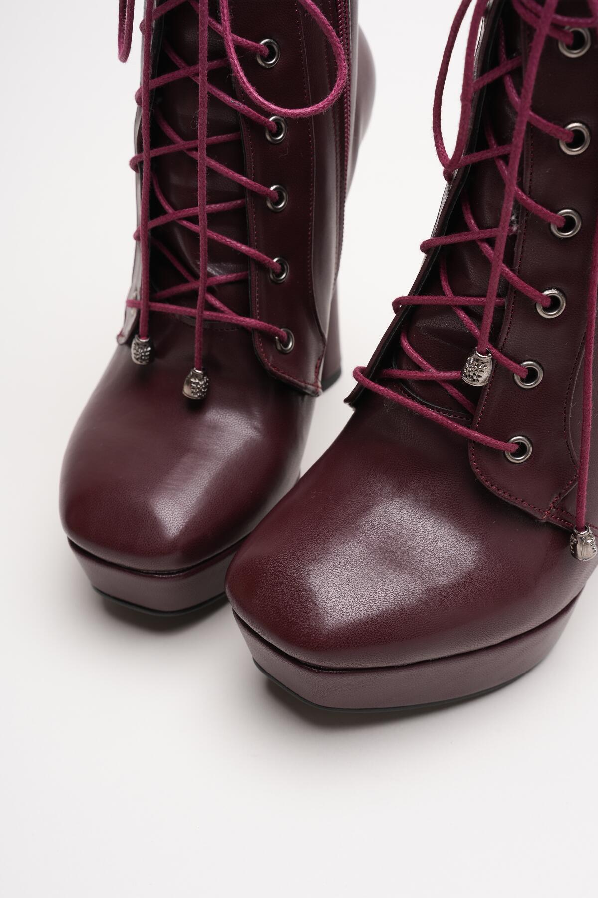 Kadın Yüksek Topuk Bağcıklı Bot Viole Bordo
