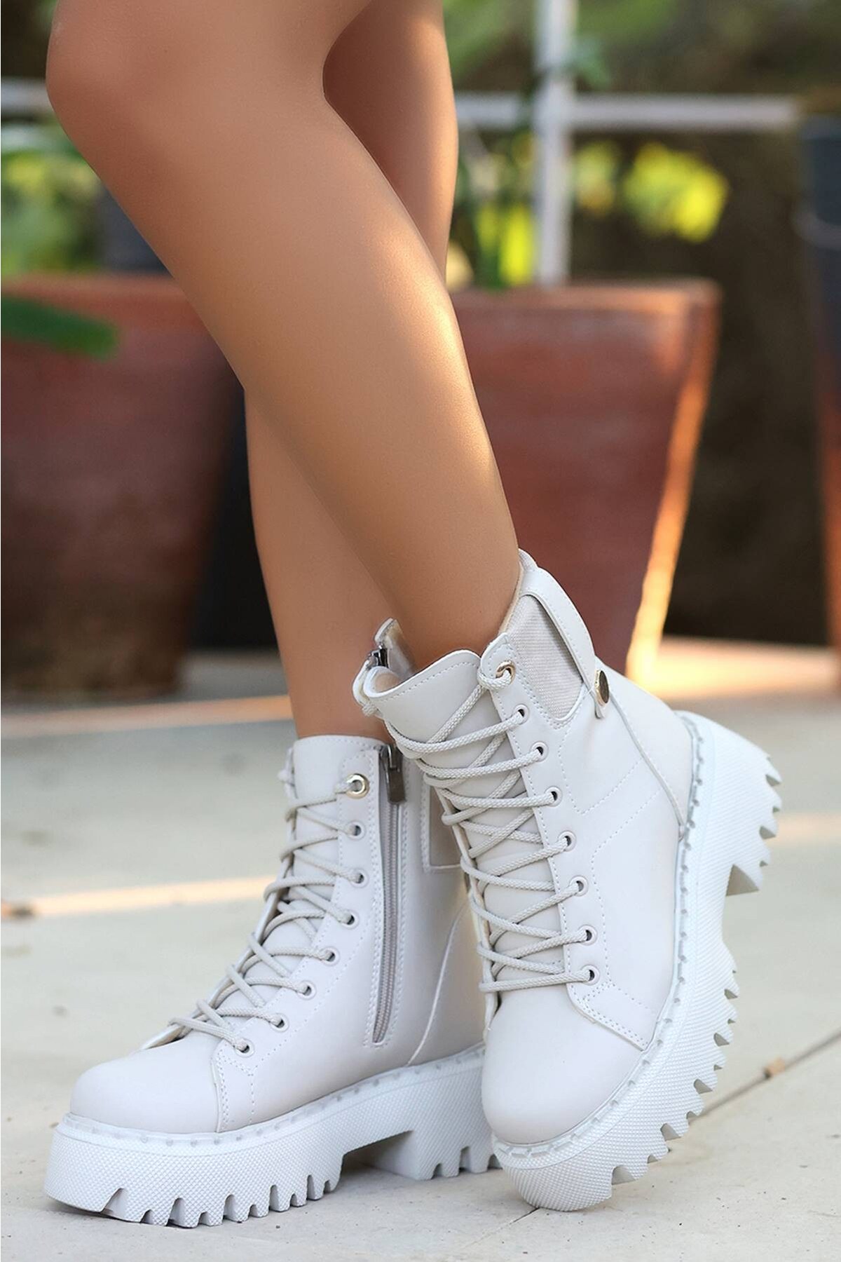Kadın Yumuşak Taban Bağcıklı Bot Heri Bej
