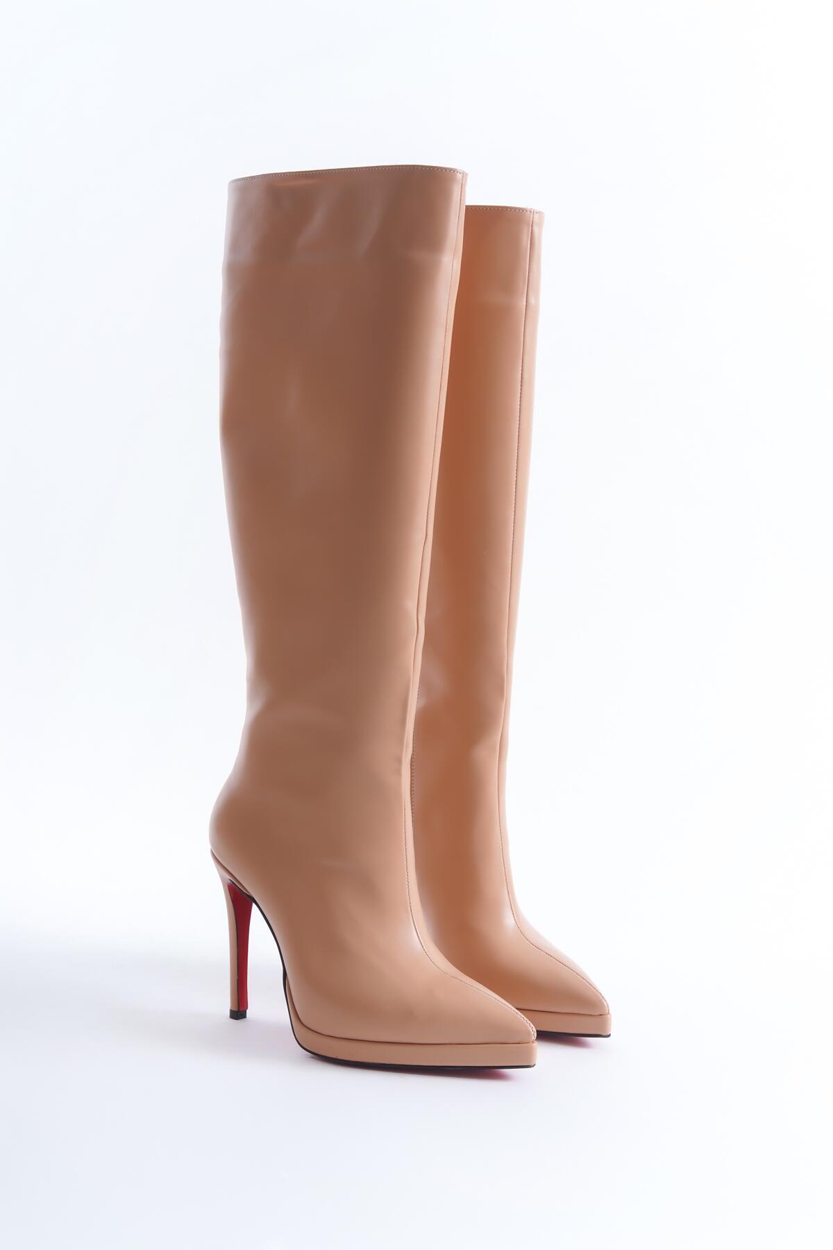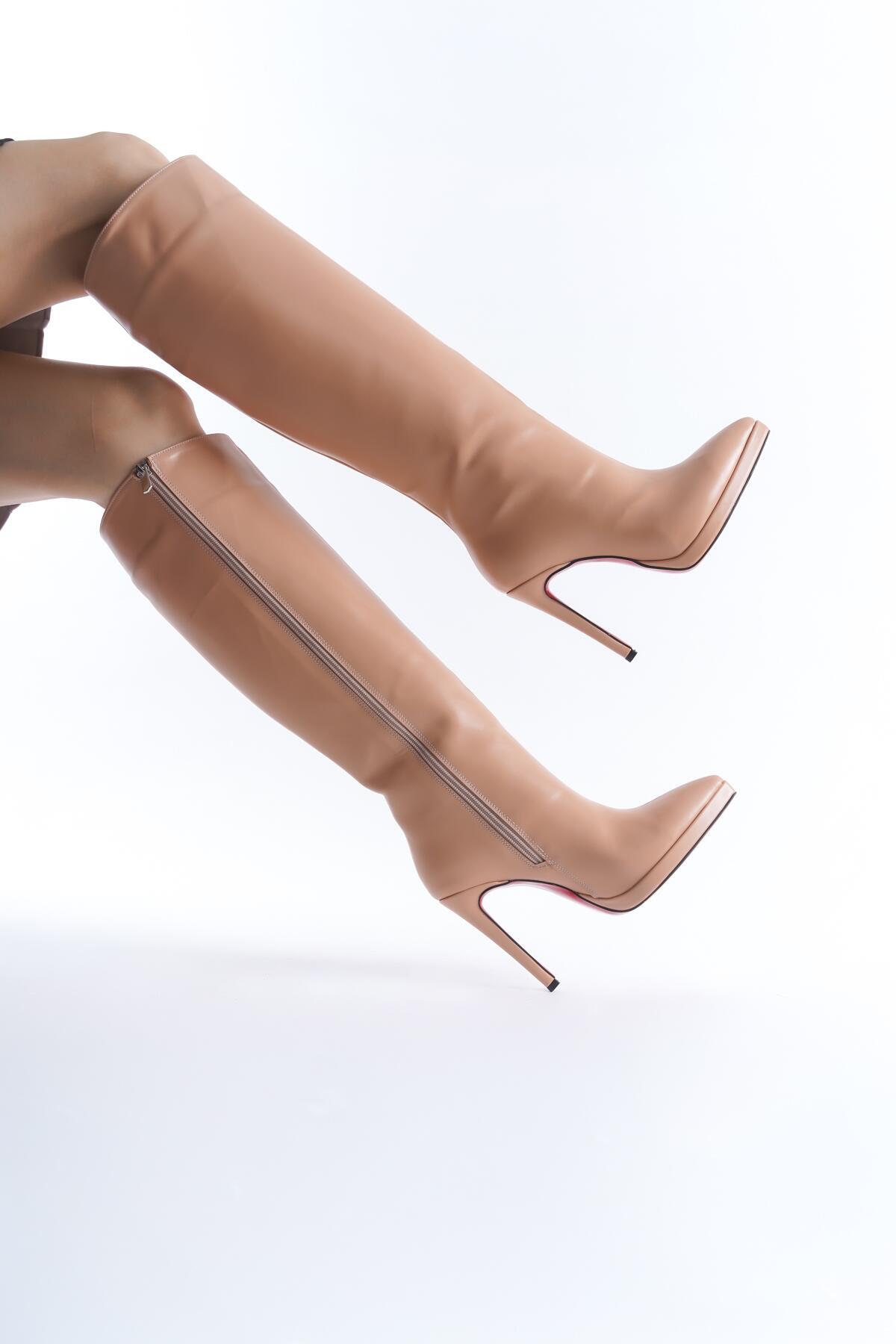 Kadın Diz Altı Kısa Platform Topuklu Çizme Amazen Nude Cilt