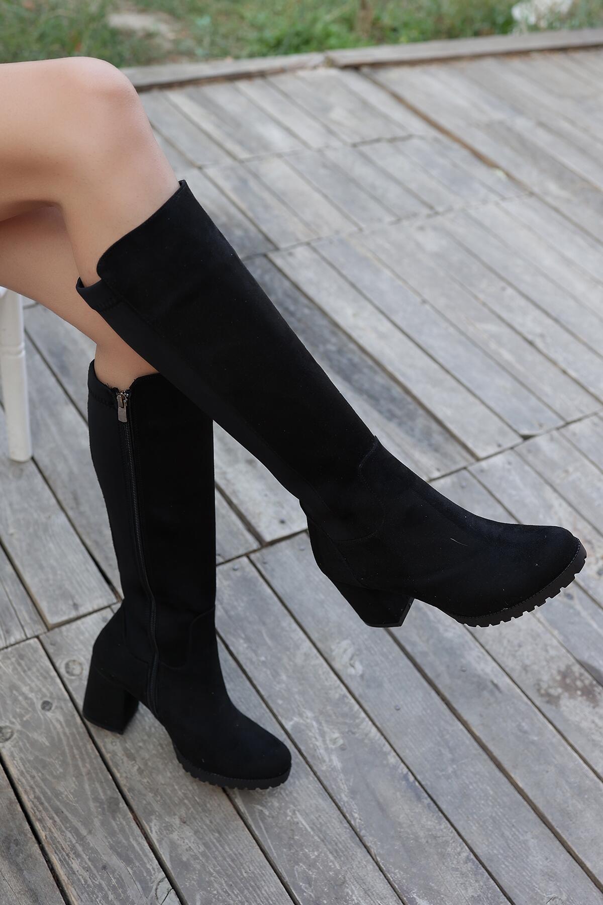 Kadın Diz Altı Topuklu Çizme Harby Siyah Süet