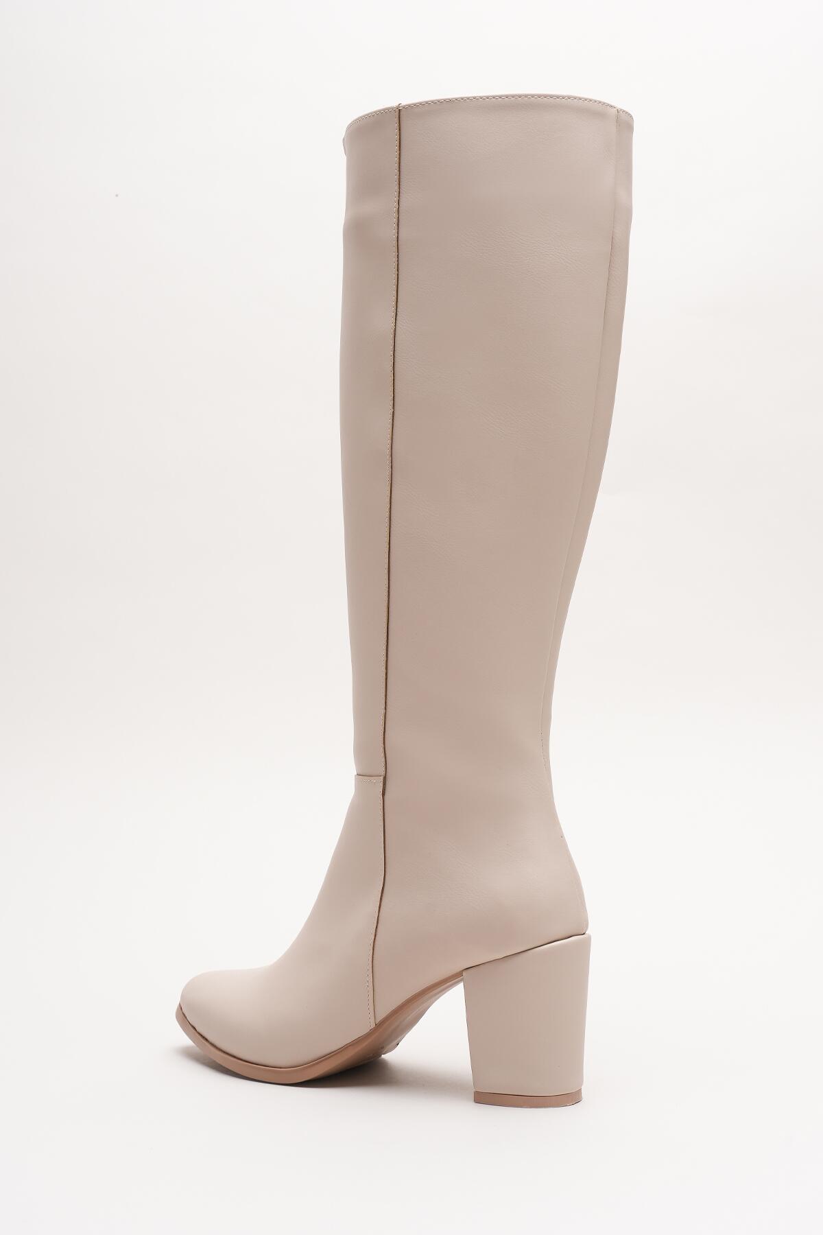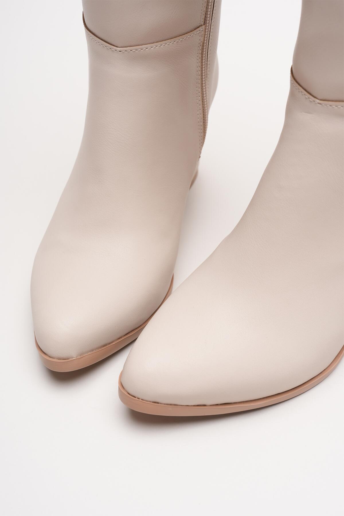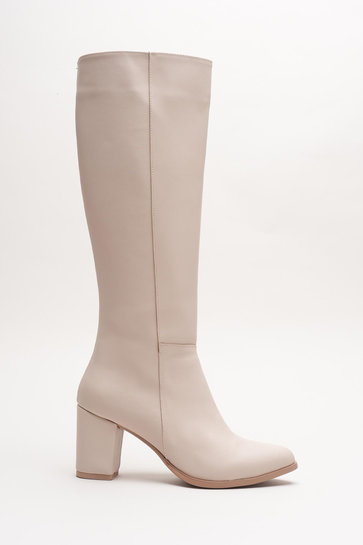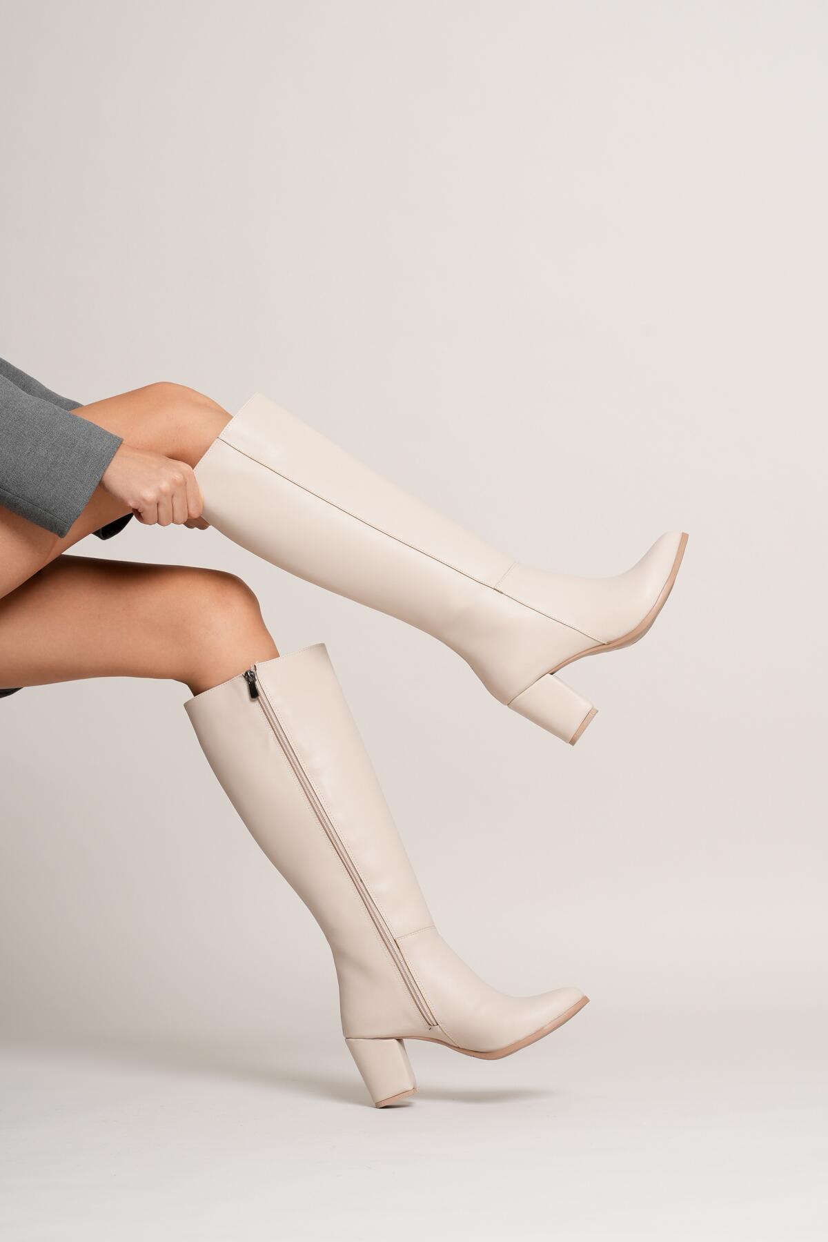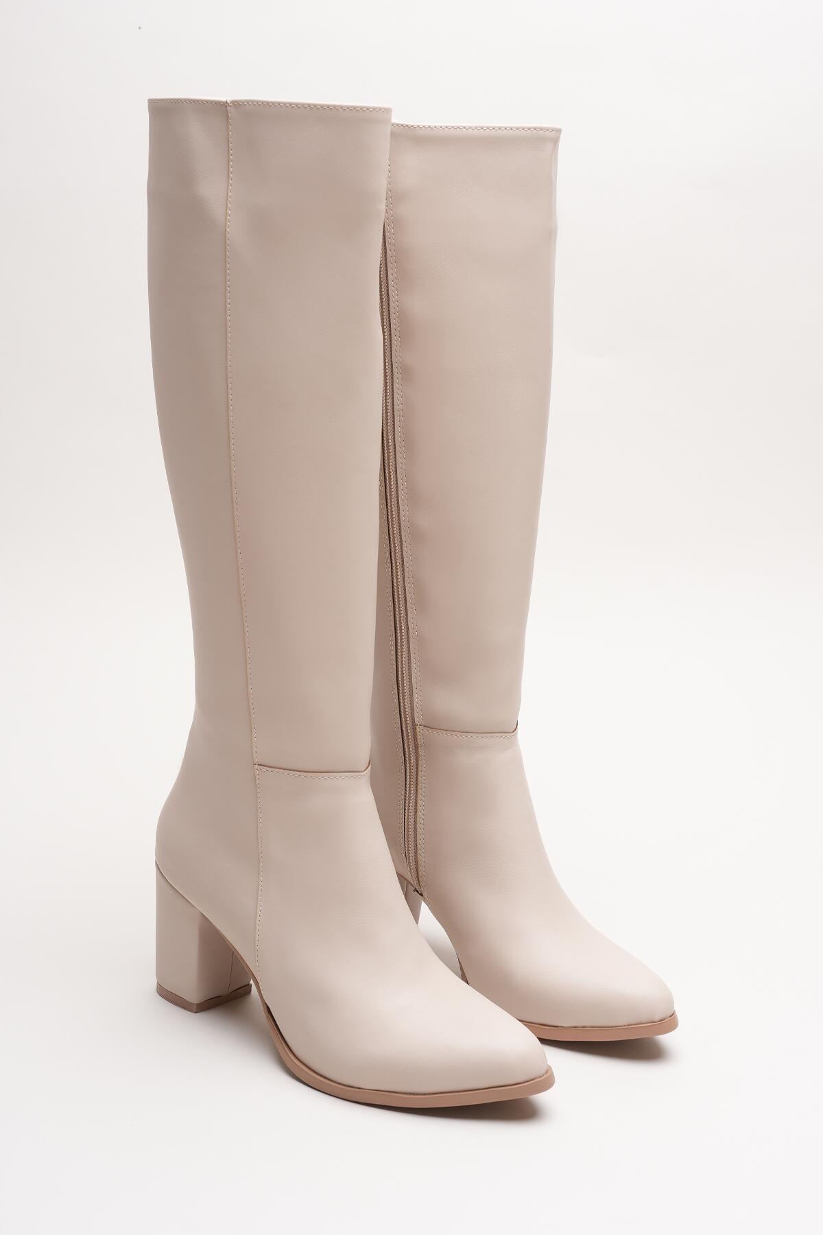 Kadın Fermuarlı Diz Altı Topuklu Çizme Allecia Bej