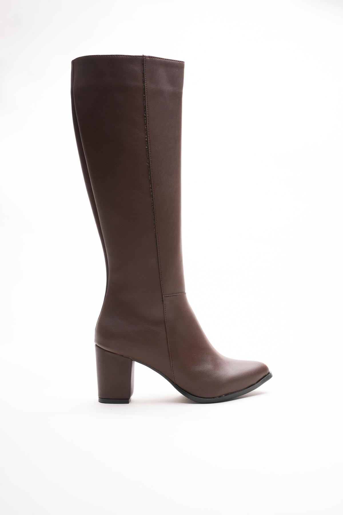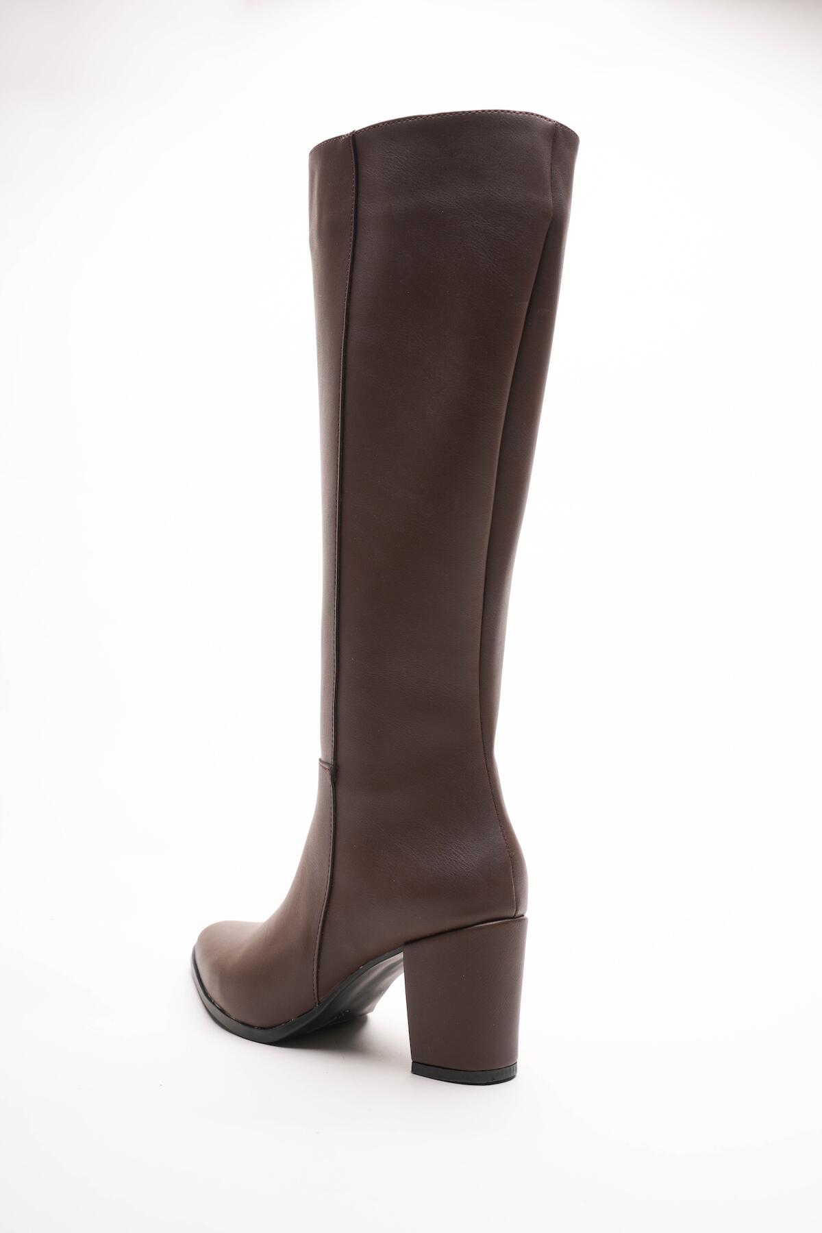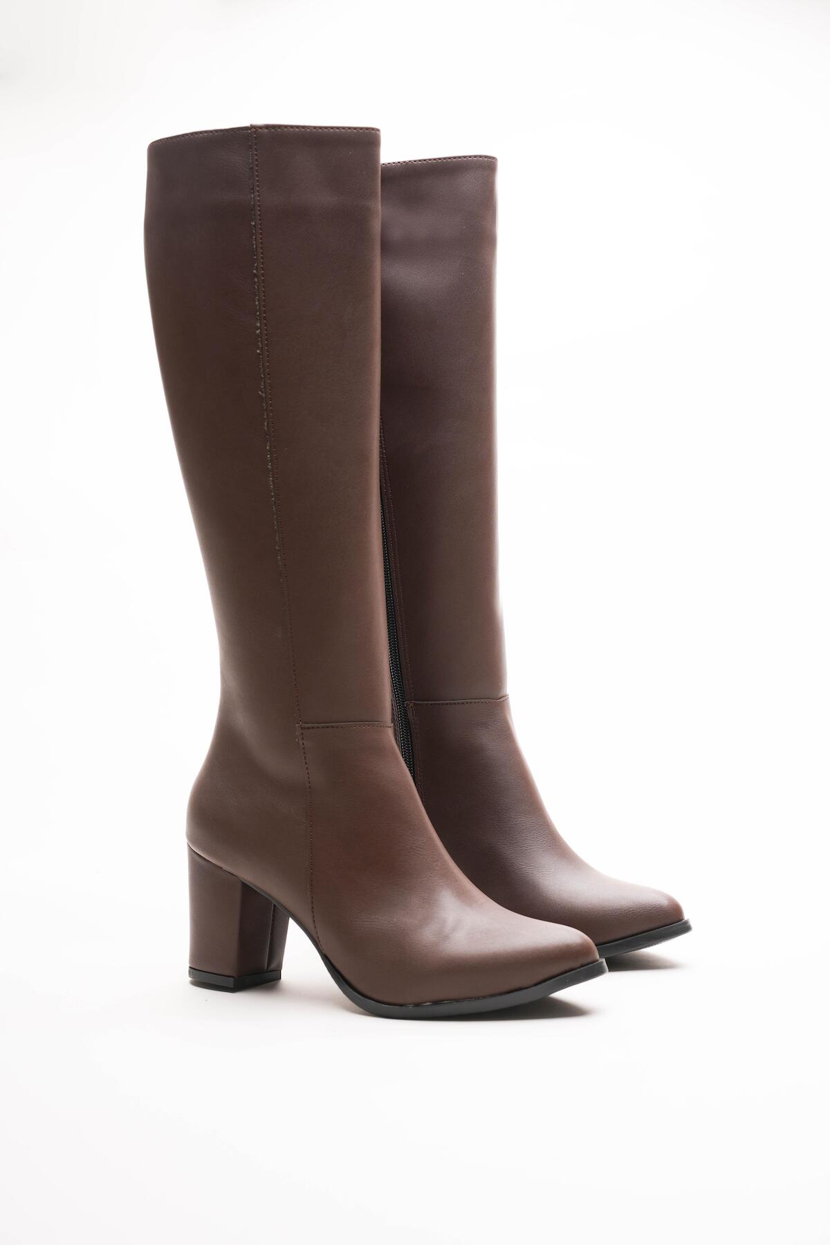 Kadın Fermuarlı Diz Altı Topuklu Çizme Allecia Kahverengi