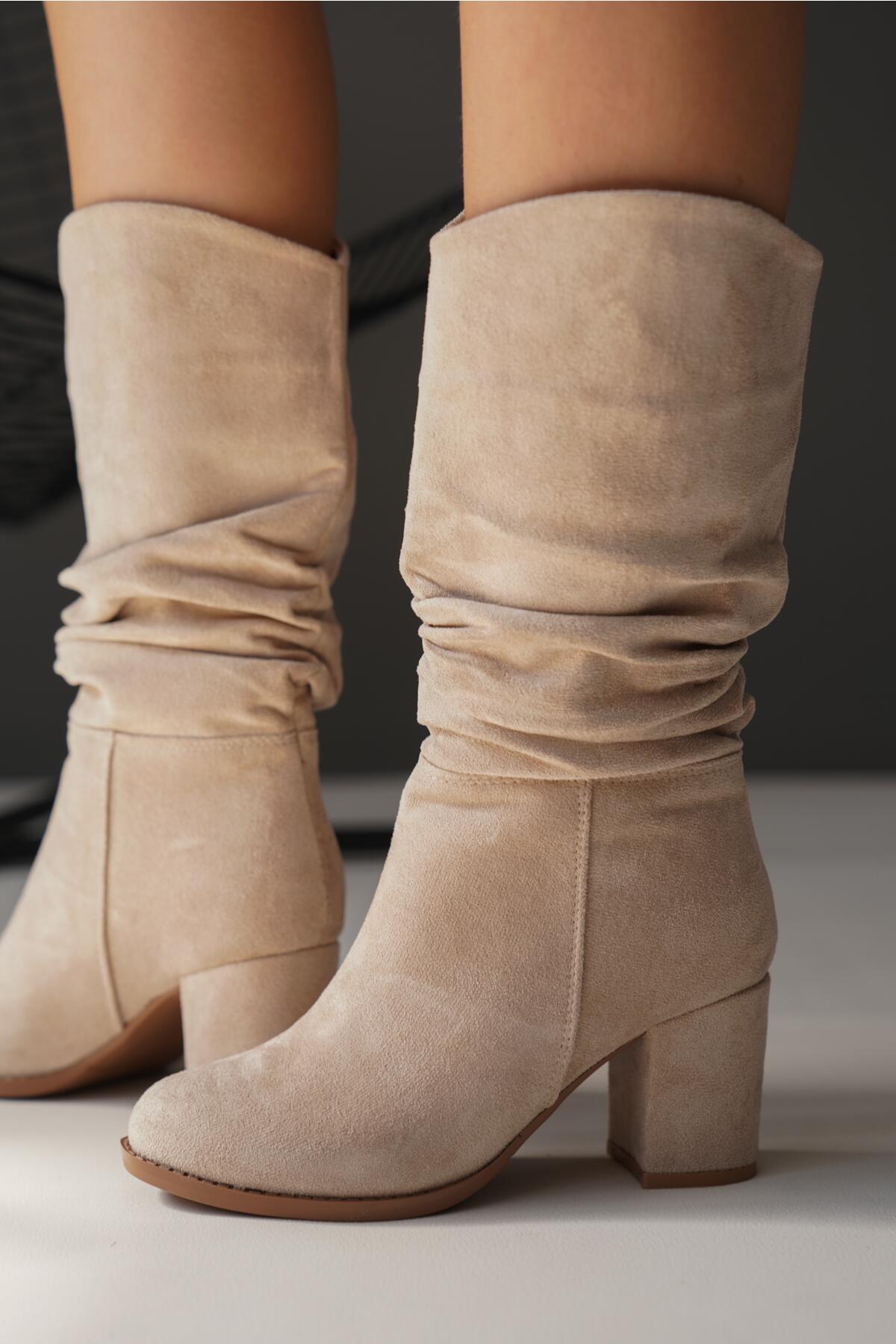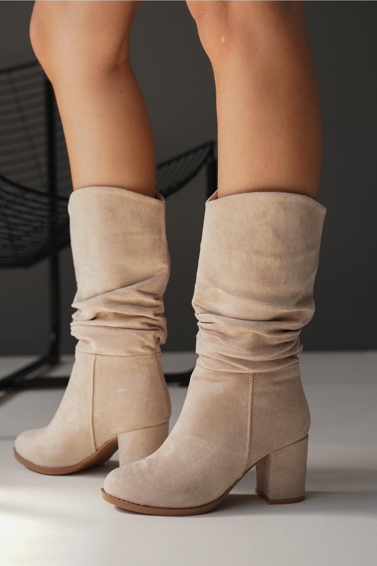 Kadın Kısa Topuklu Diz Altı Çizme Enedy