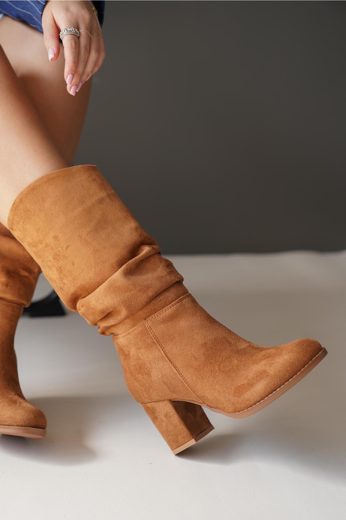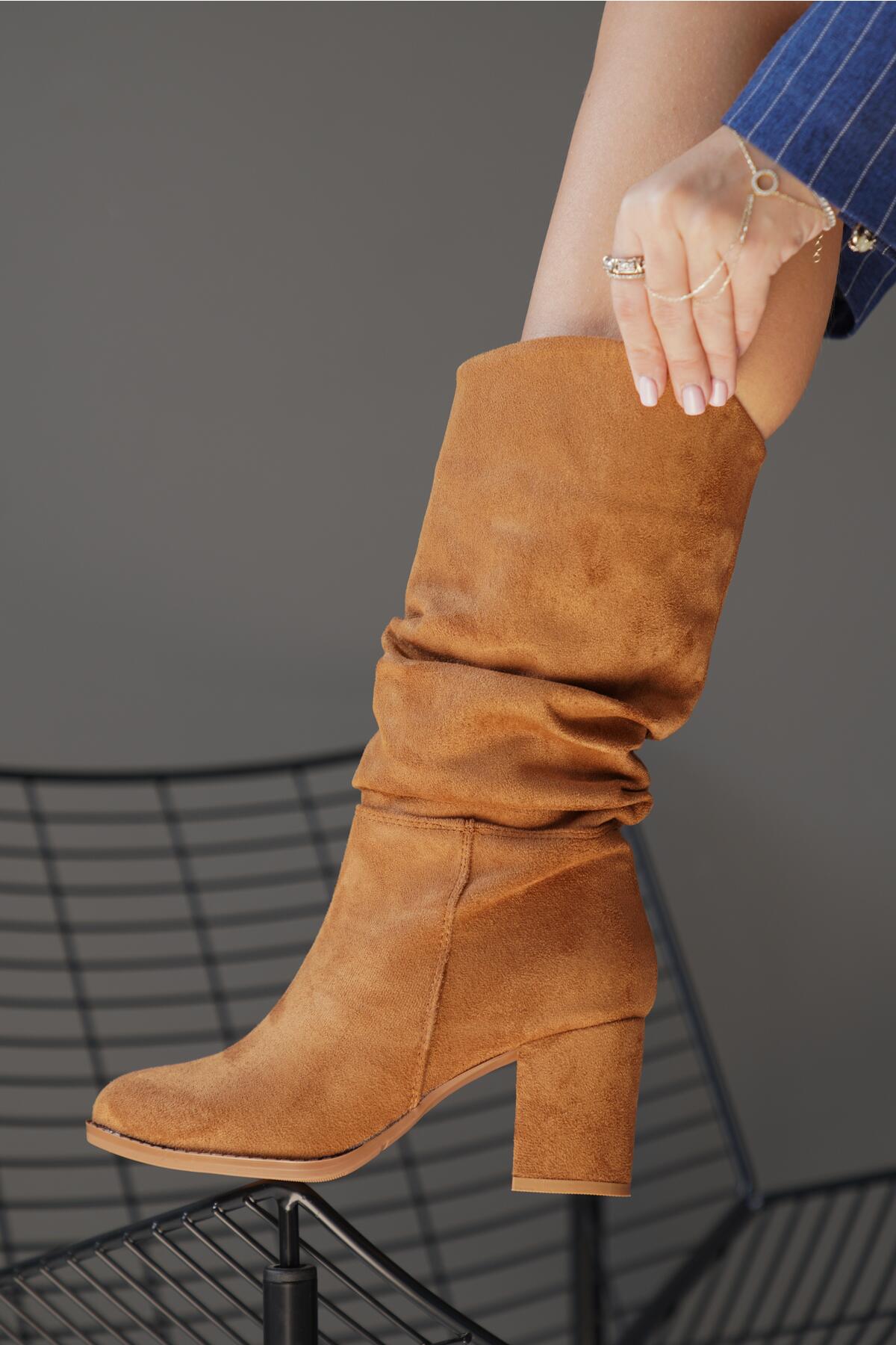 Kadın Kısa Topuklu Diz Altı Çizme Enedy