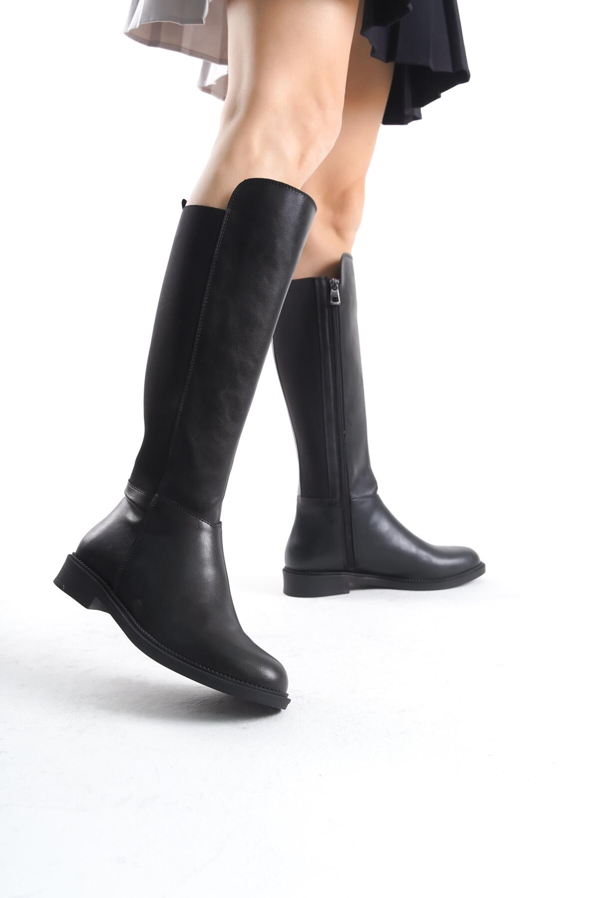 Kadın Fermuarsız Diz Altı Düz Çizme Roaley