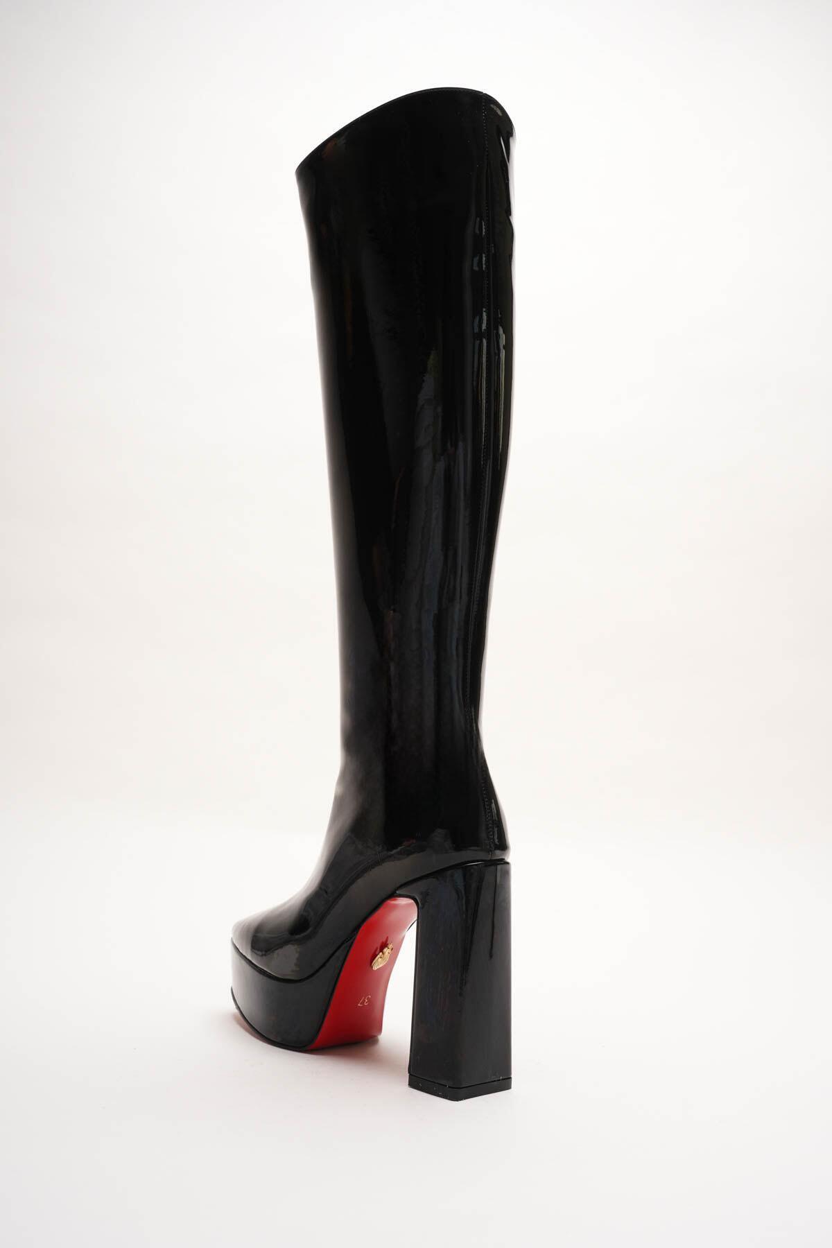 Kadın Platform Diz Altı Çizme Paman Siyah Rugan