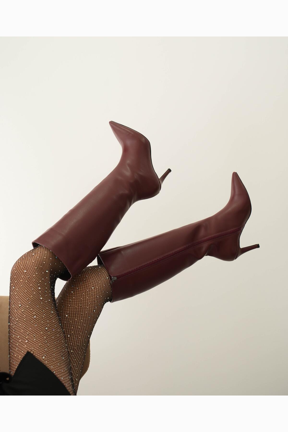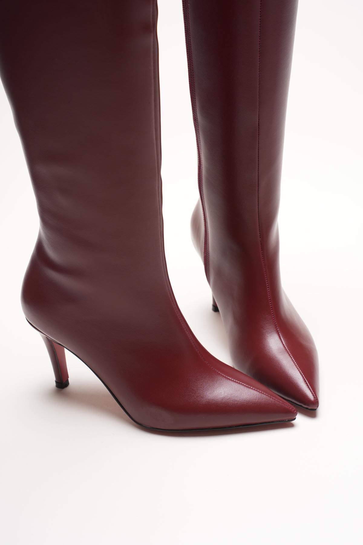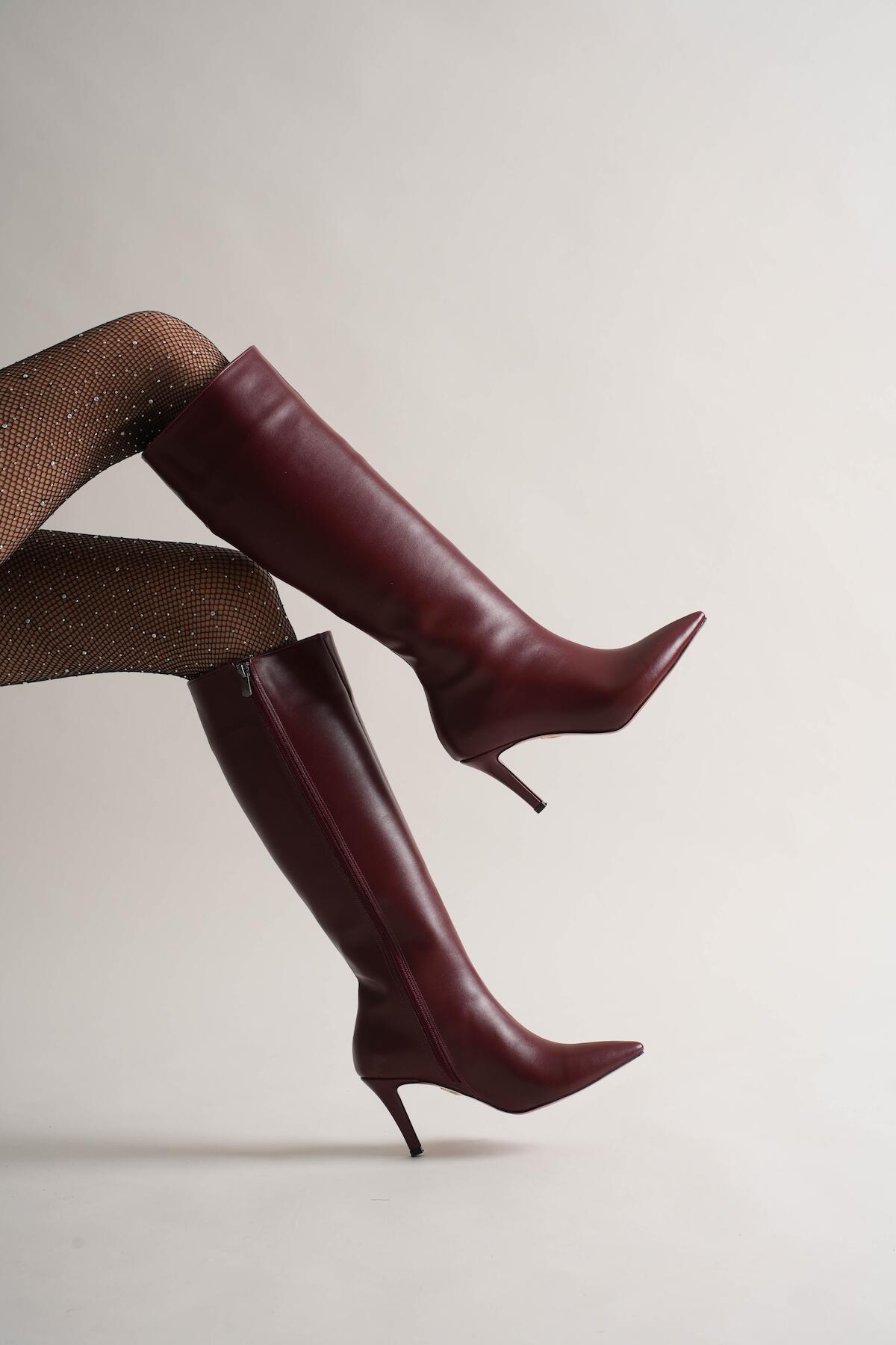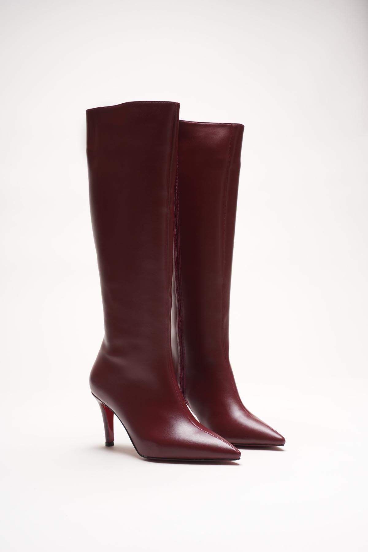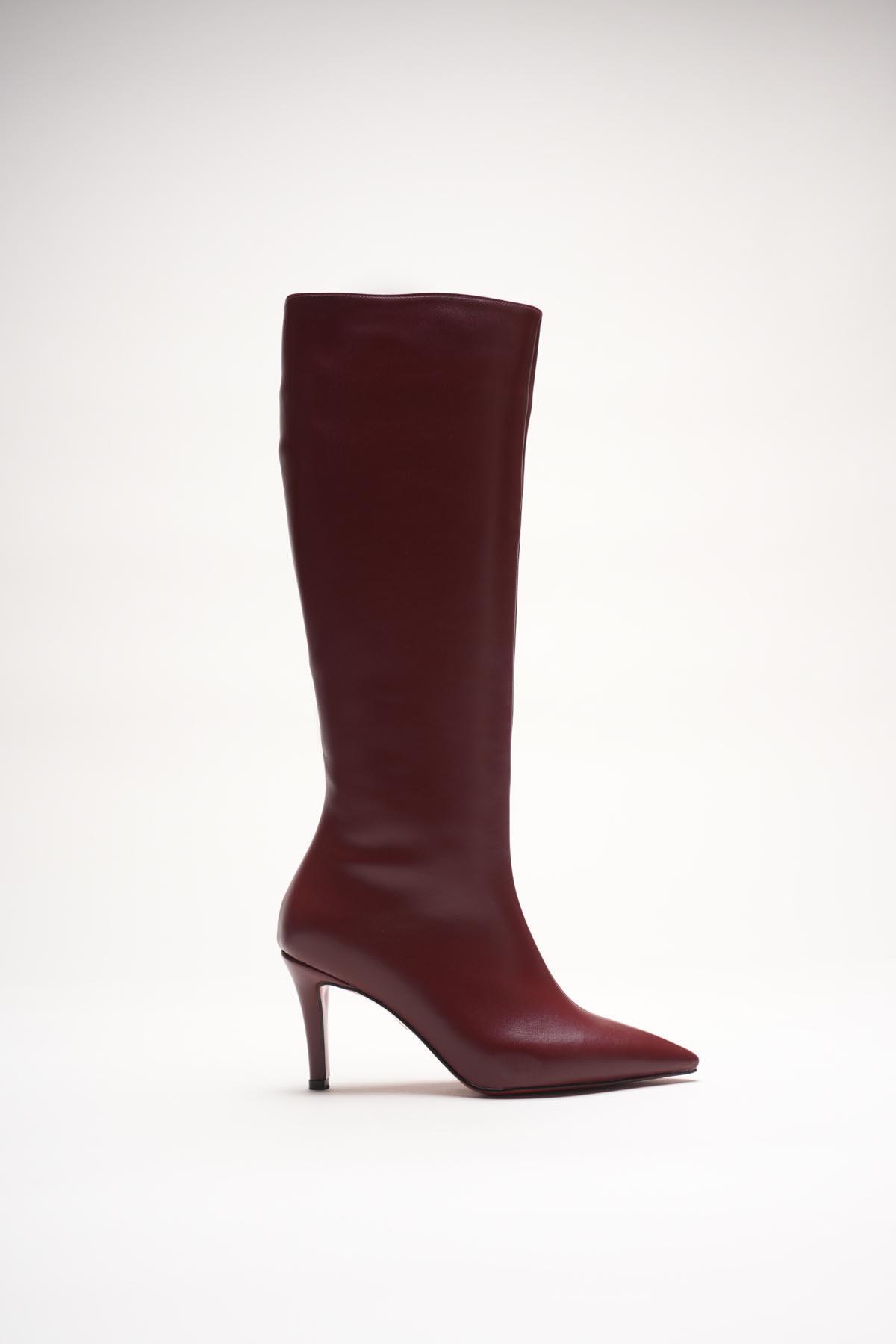 Kadın Sivri Burun Kısa Topuklu Çizme Zelda Bordo
