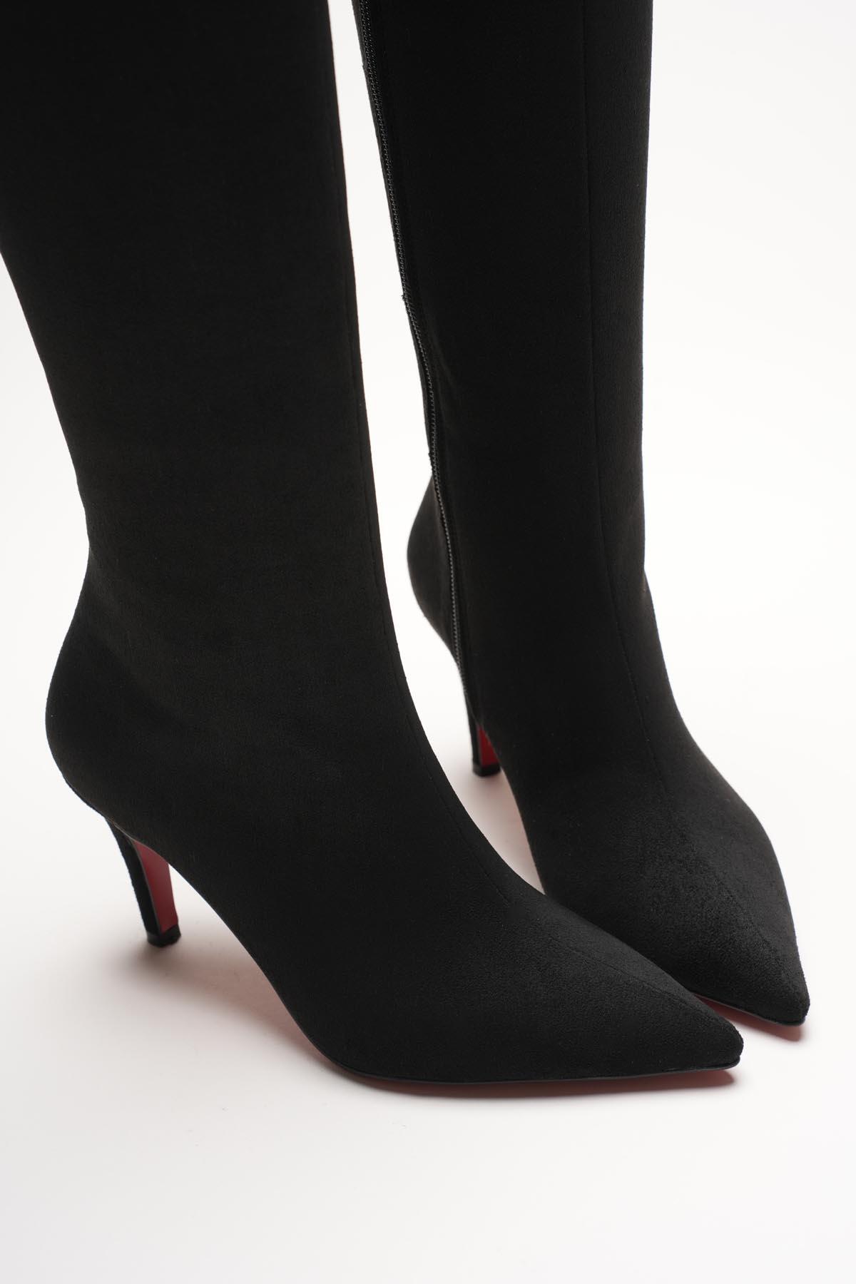 Kadın Sivri Burun Yüksek Topuklu Diz Üstü Streç Çizme Isabella