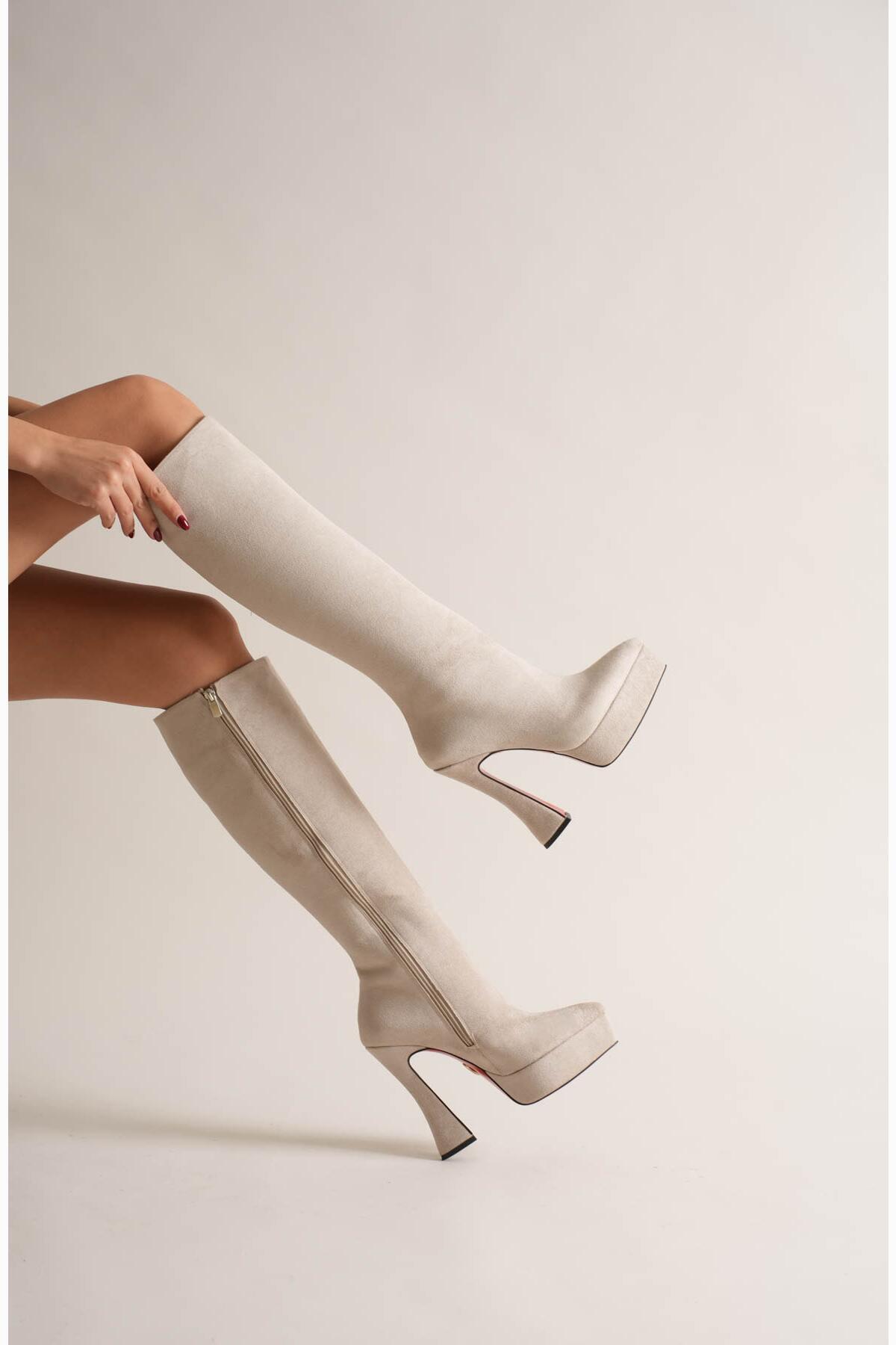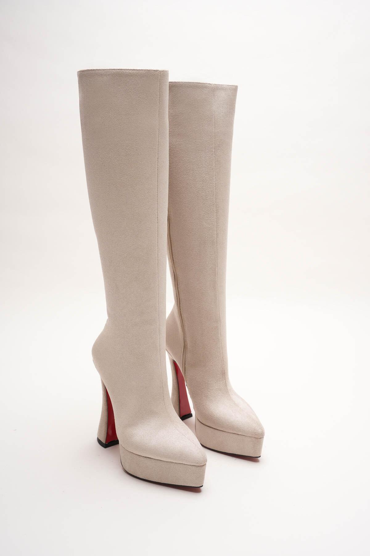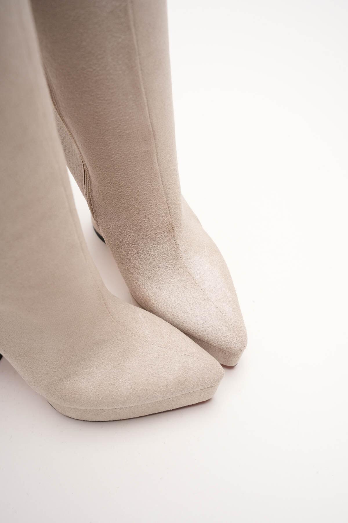 Kadın Sivri Burun Platform Çizme Violet Bej Süet