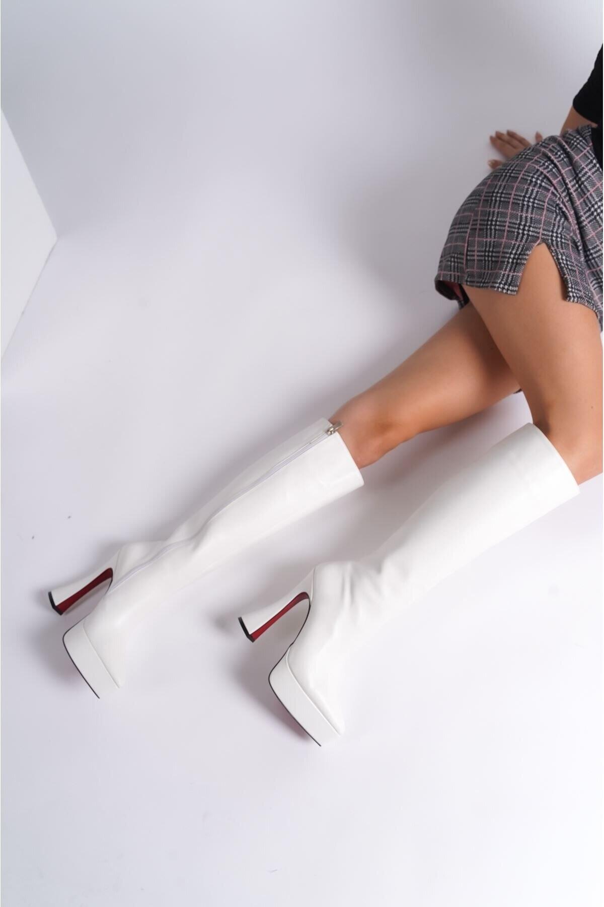 Kadın Sivri Burun Platform Çizme Violet Beyaz Cilt