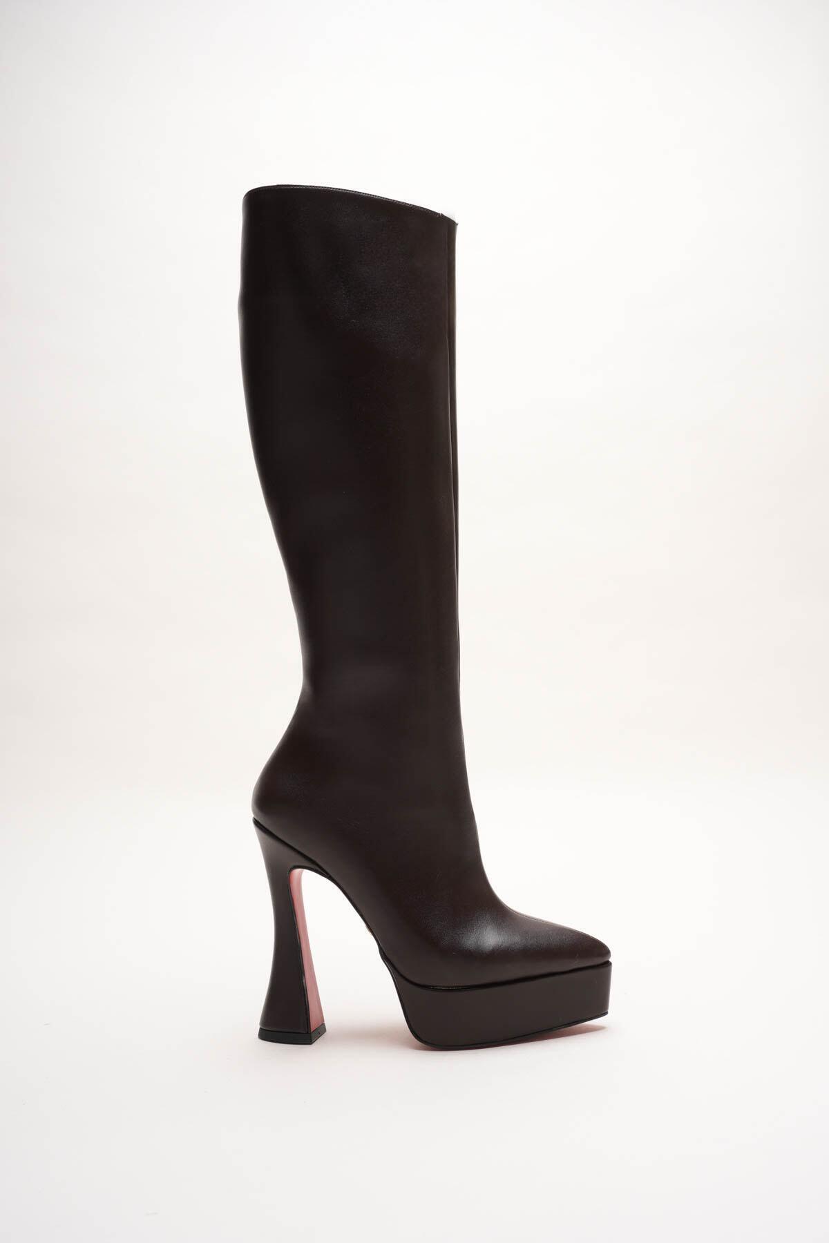 Kadın Sivri Burun Platform Çizme Violet Kahverengi