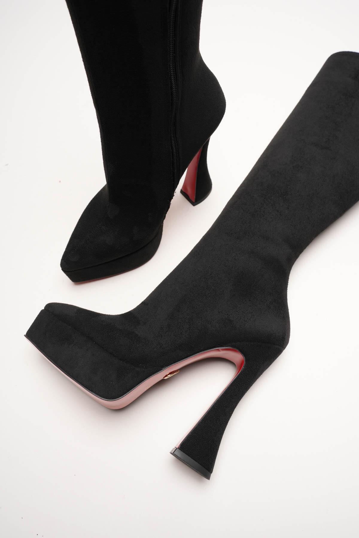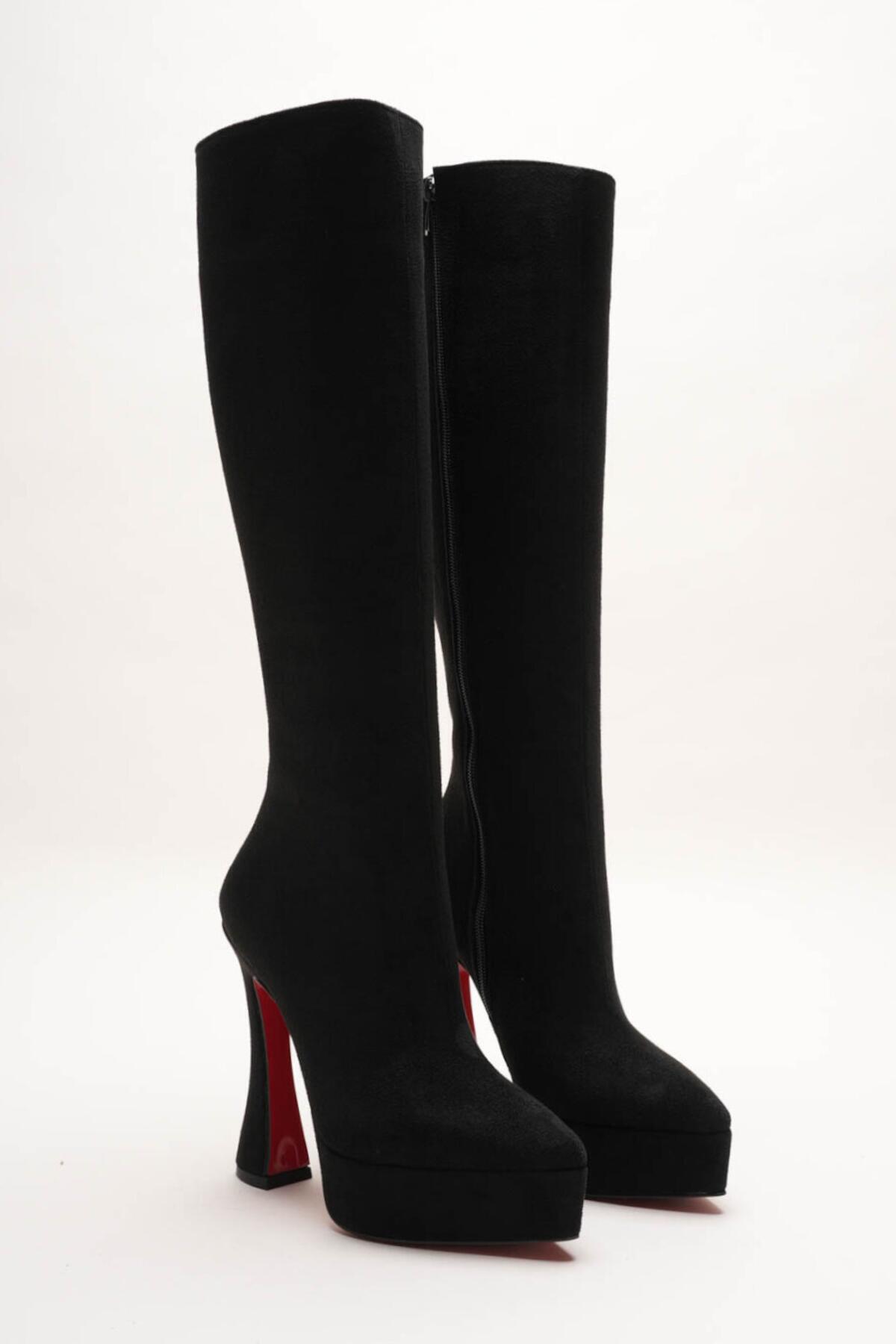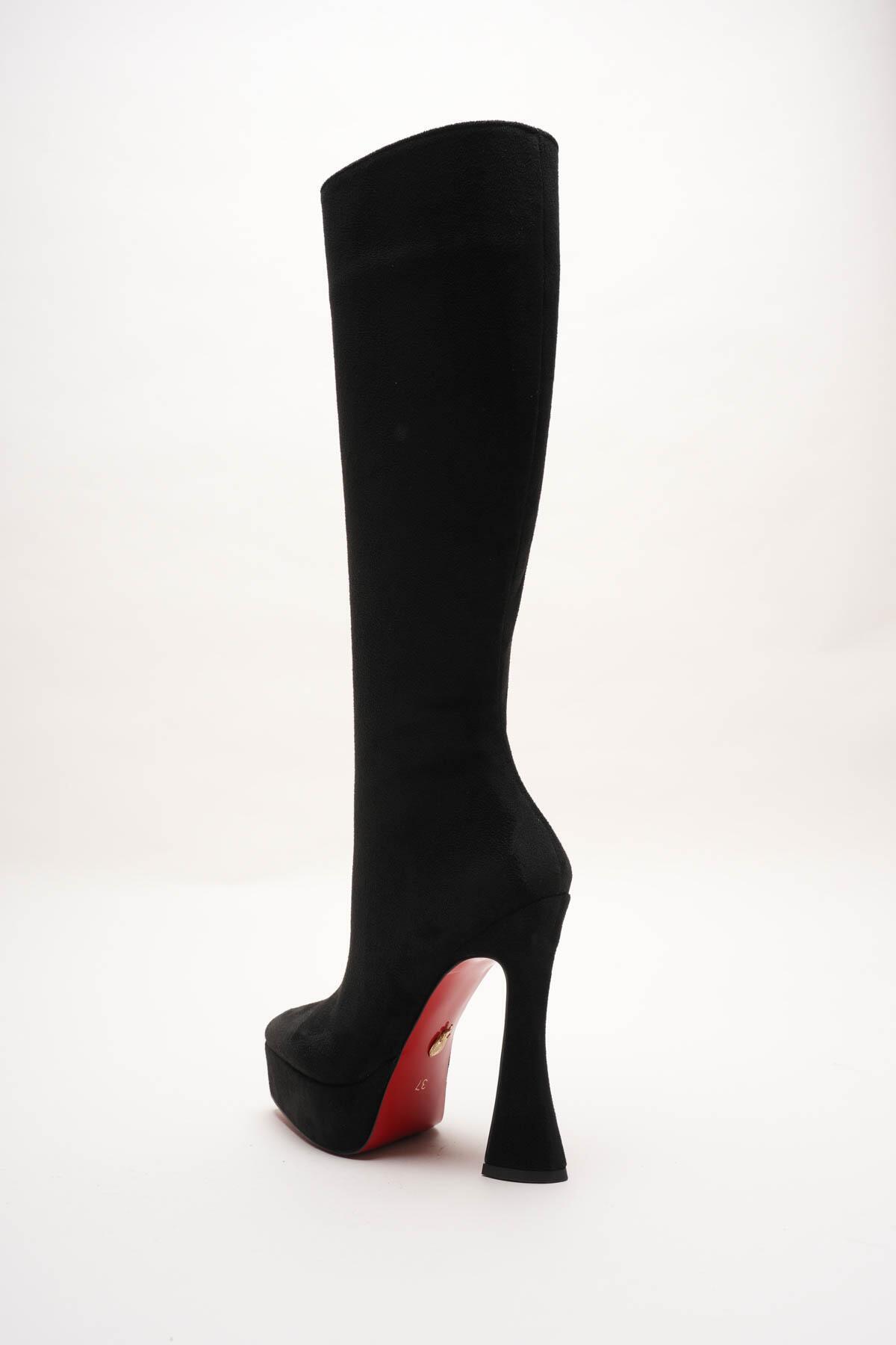 Kadın Sivri Burun Platform Çizme Violet Siyah Süet
