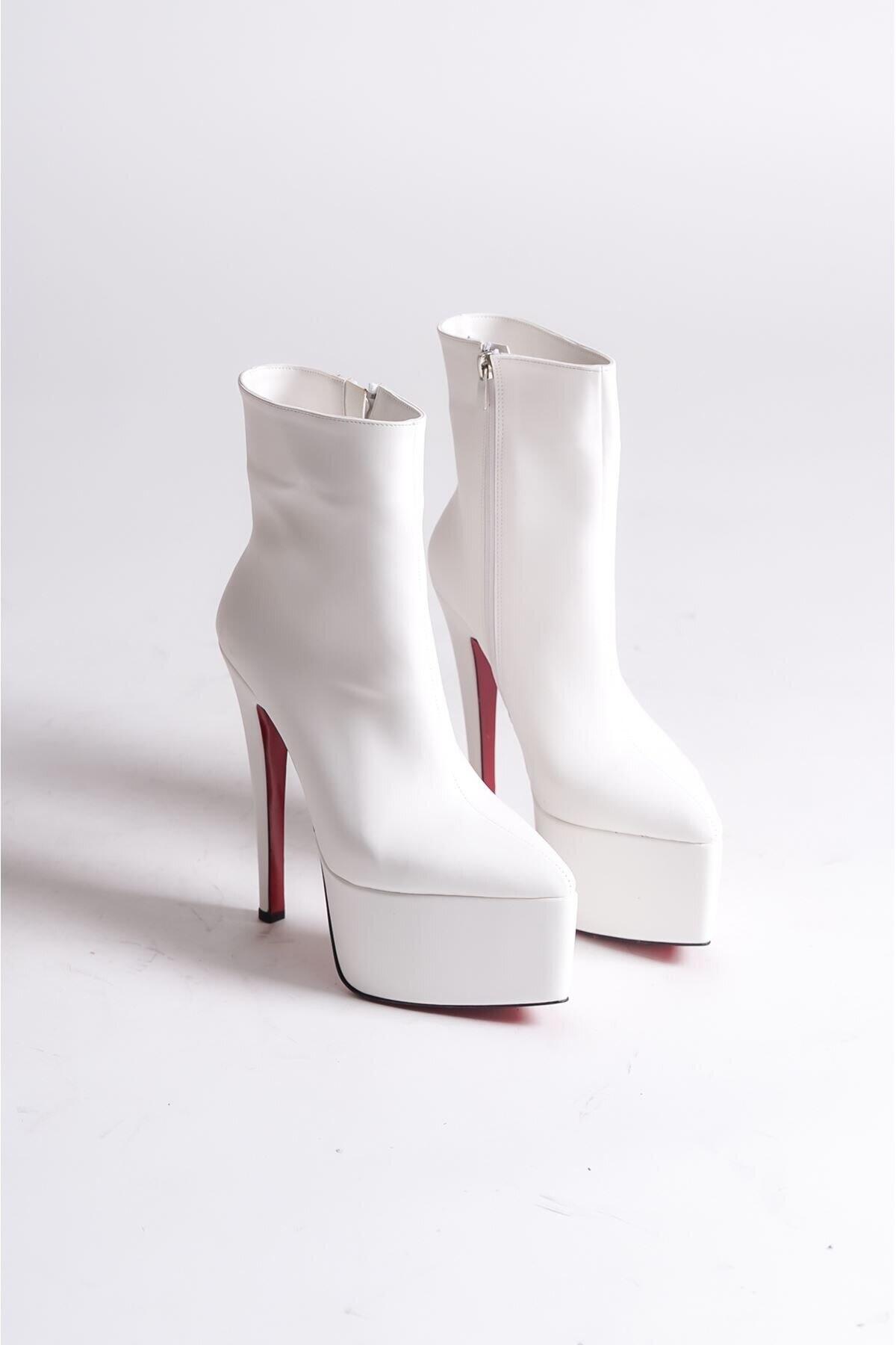 Kadın Sivri Burun Yüksek Topuk Bot Gift Beyaz Cilt