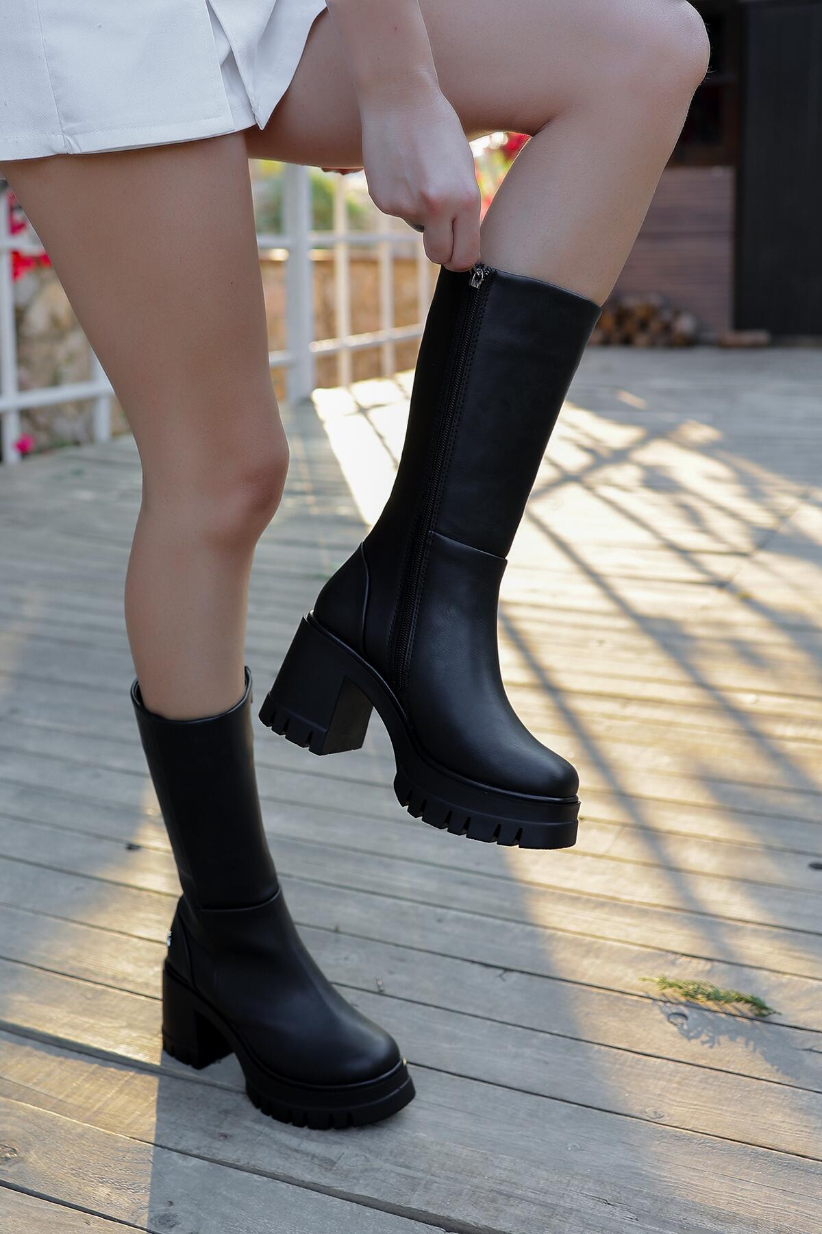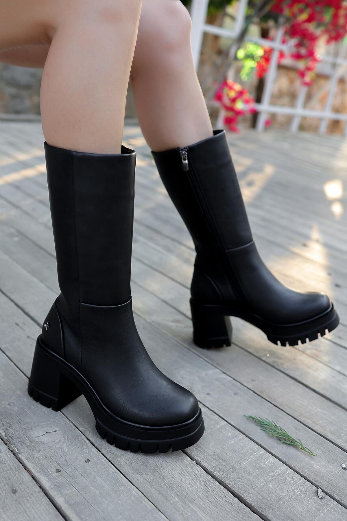 Kadın Tasarım Topuklu Kısa Çizme Fericia Siyah Cilt