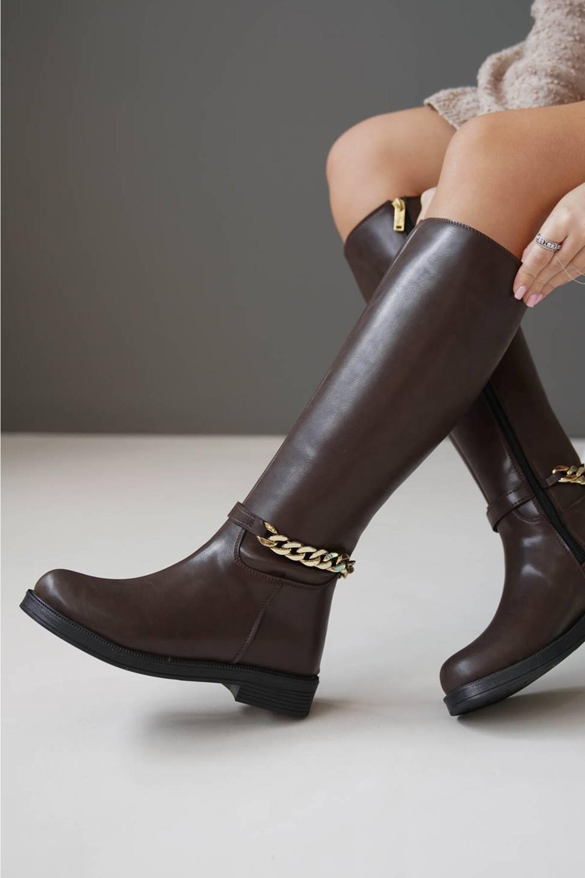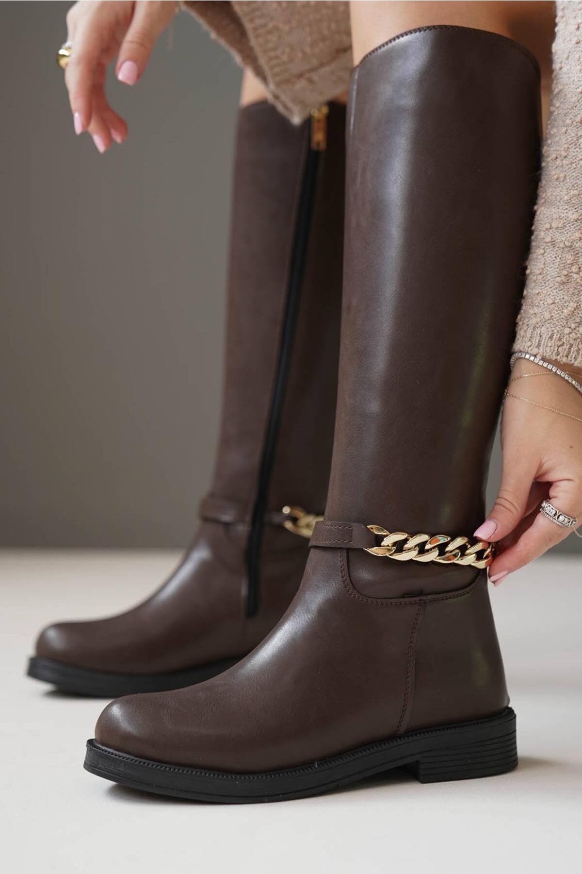 Kadın Zincir Tokalı Düz Çizme Kloria Kahverengi